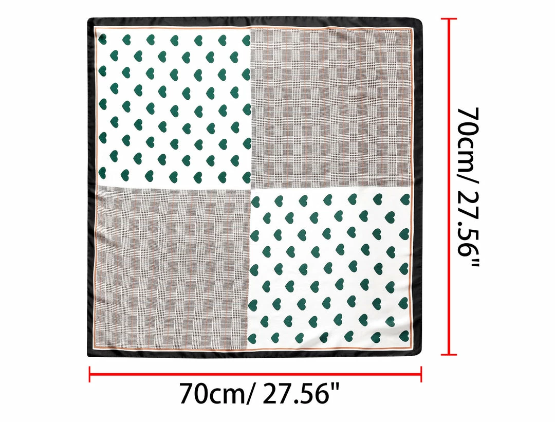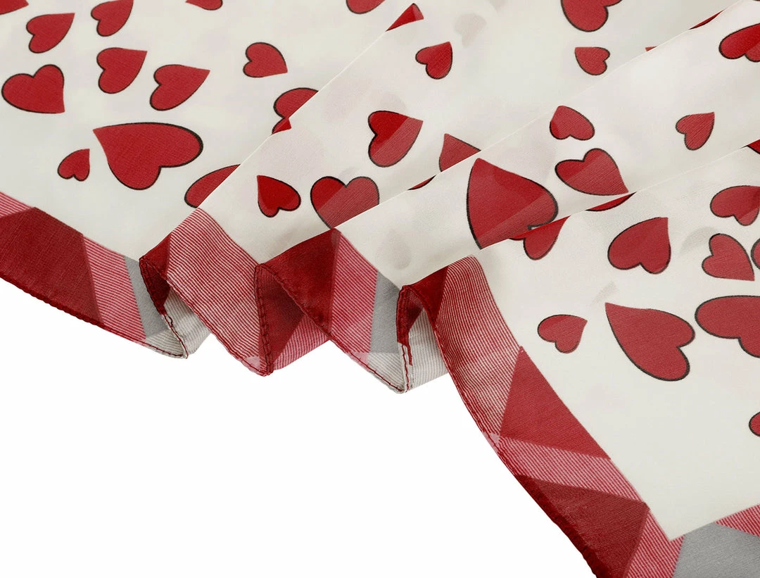 - When you go to party or travel, take this square neck scarf will be a good choice. This scarf can be tied around your hair or your neck. They have fashion love heart printed, pair with it will increase your glamour and attraction.