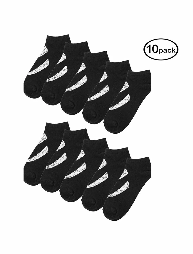 Allegra K 10-pack Striped Black Cotton Athleticsocks