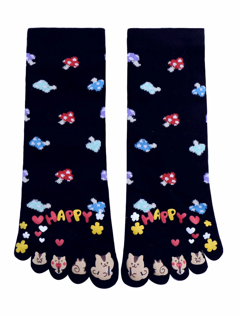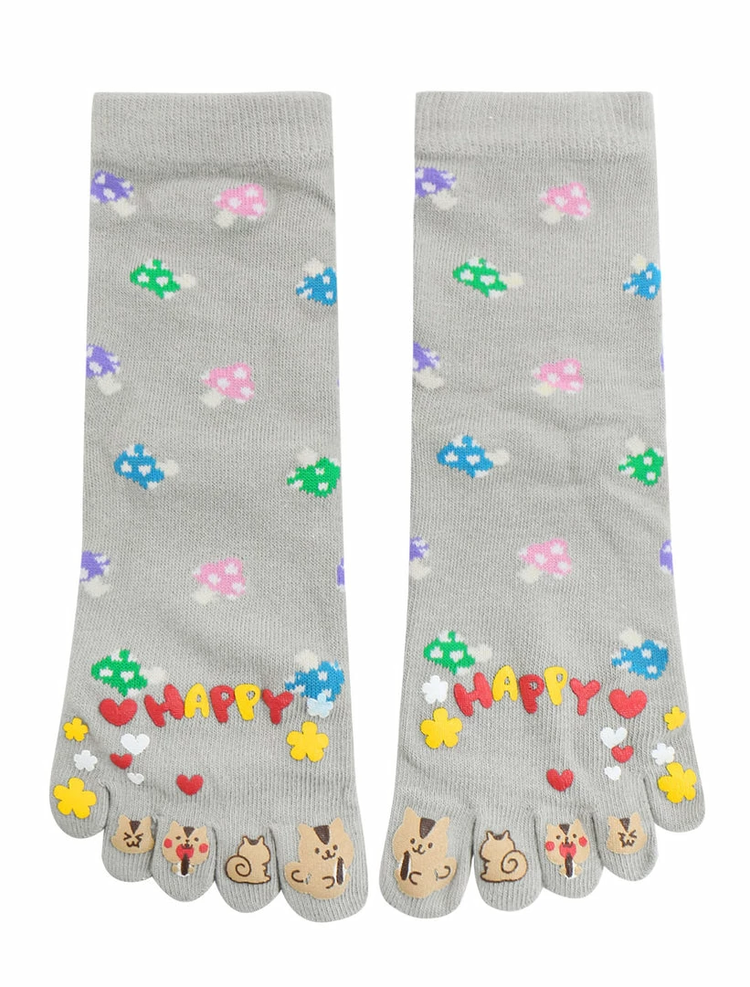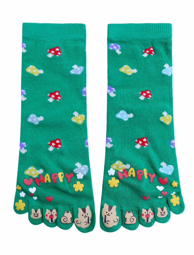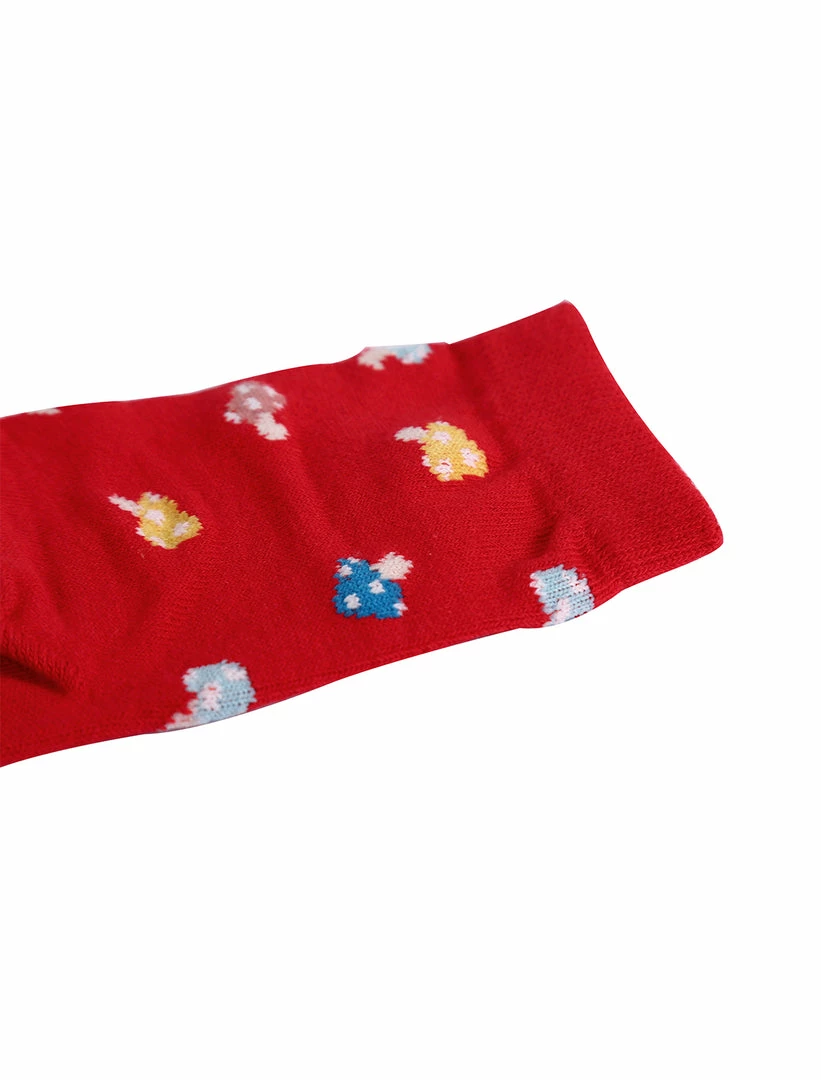 Elastic Cuffs, Ankle Length, Strecthy, Mushrooms Pattern, Letters Hearts Flowers Cats Print, Toe Socks