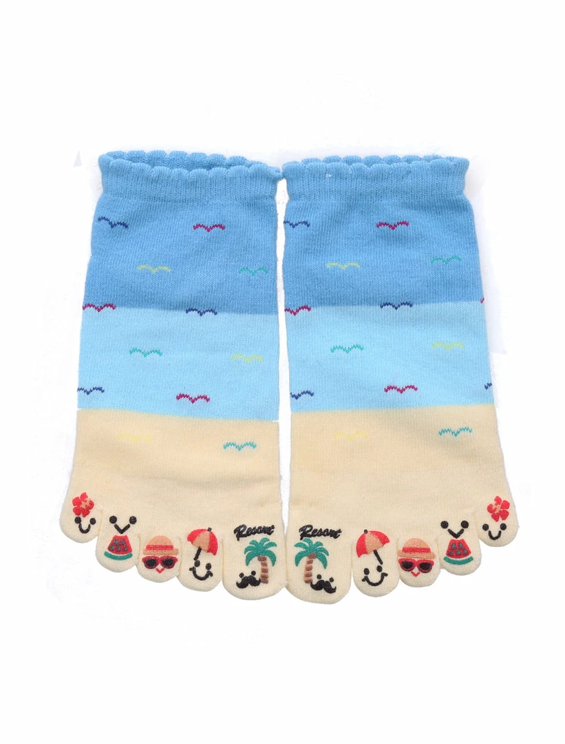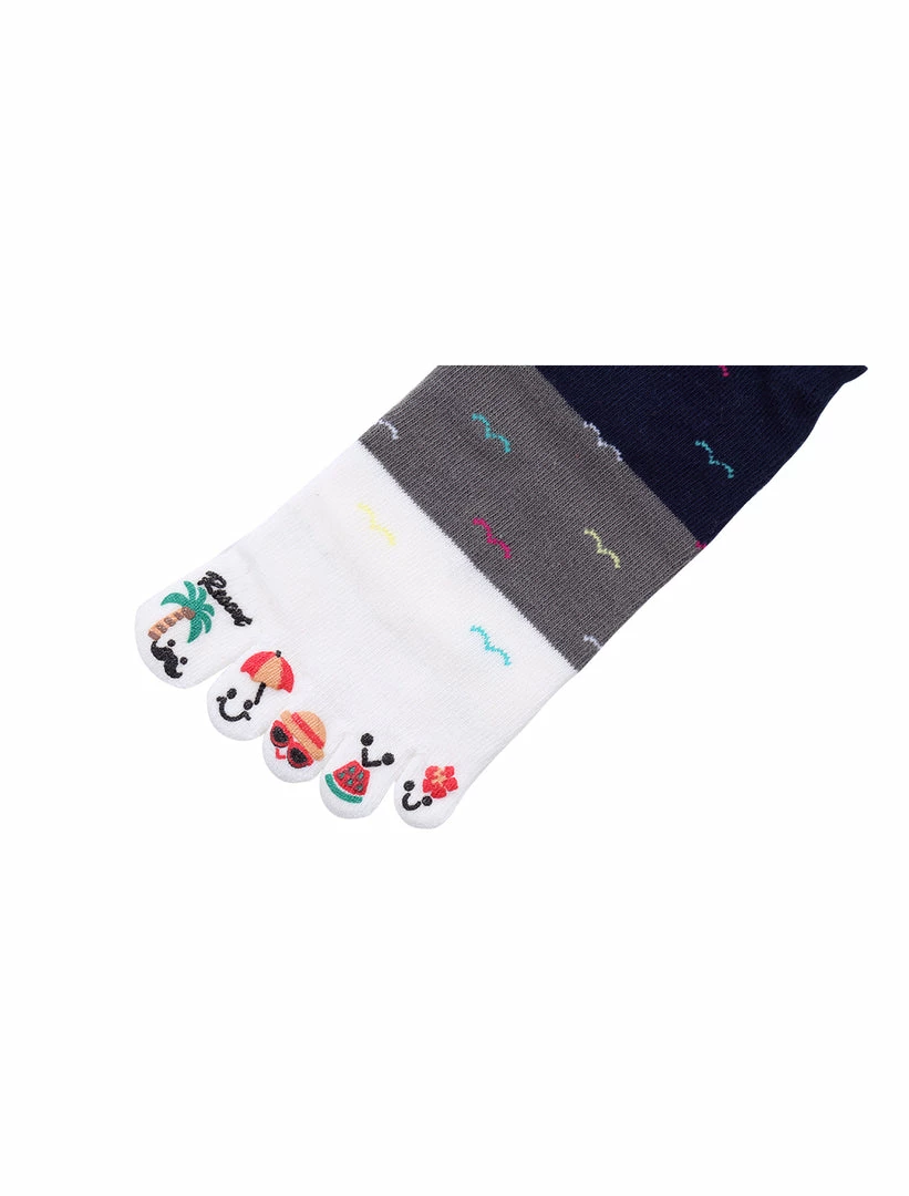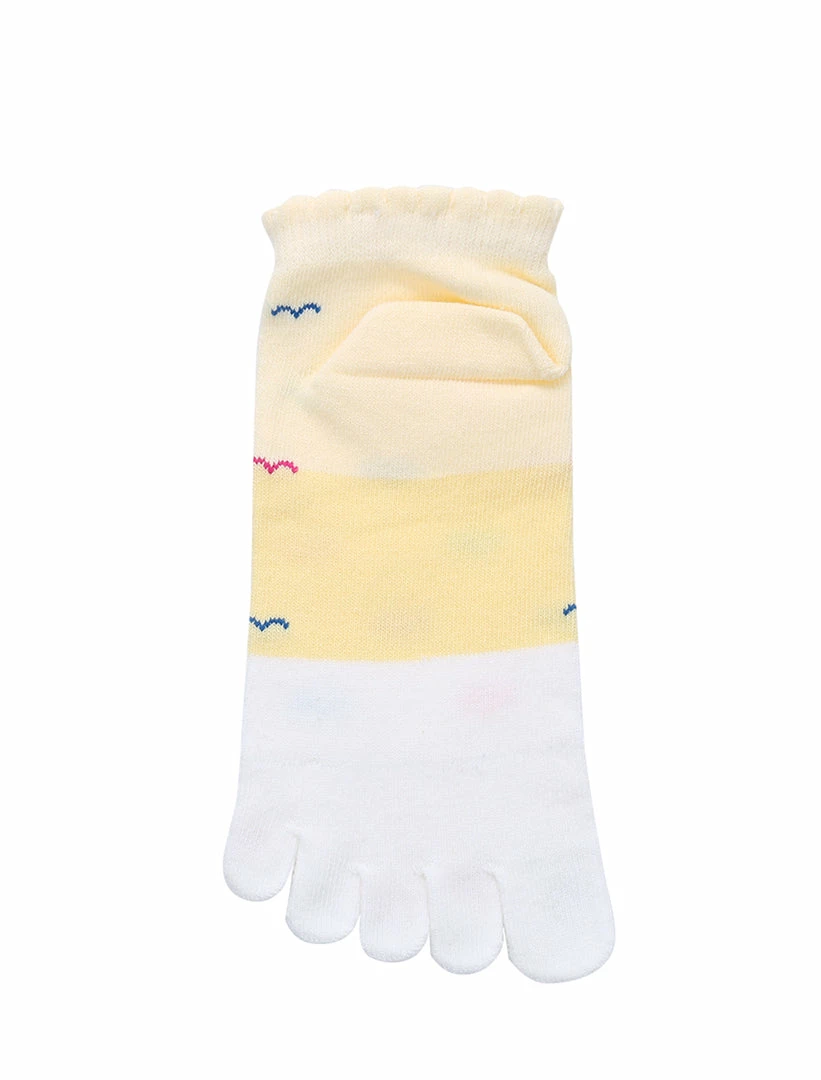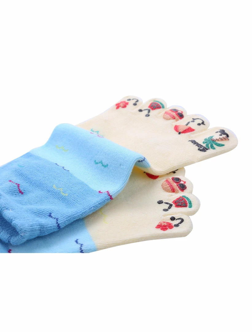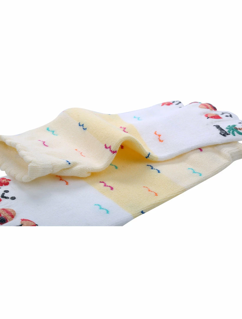 Stretchy, Lightweight, Seamless, Color Block, Cartoon Prints, Stripes Pattern, No Show, Toe Socks