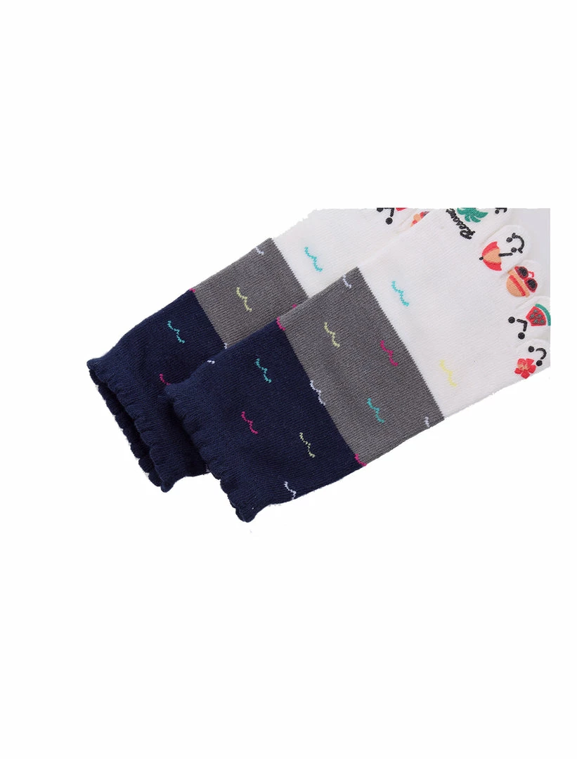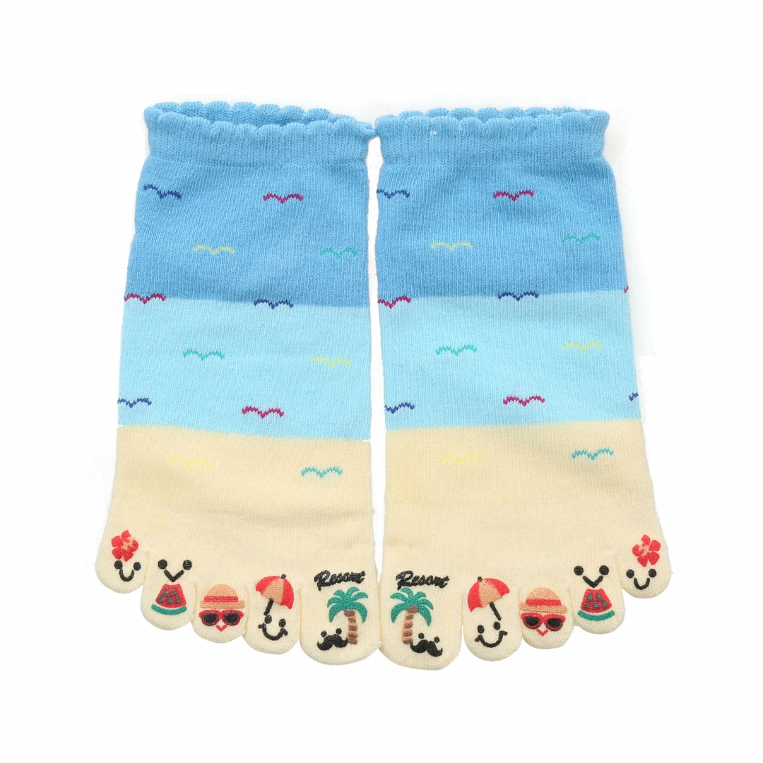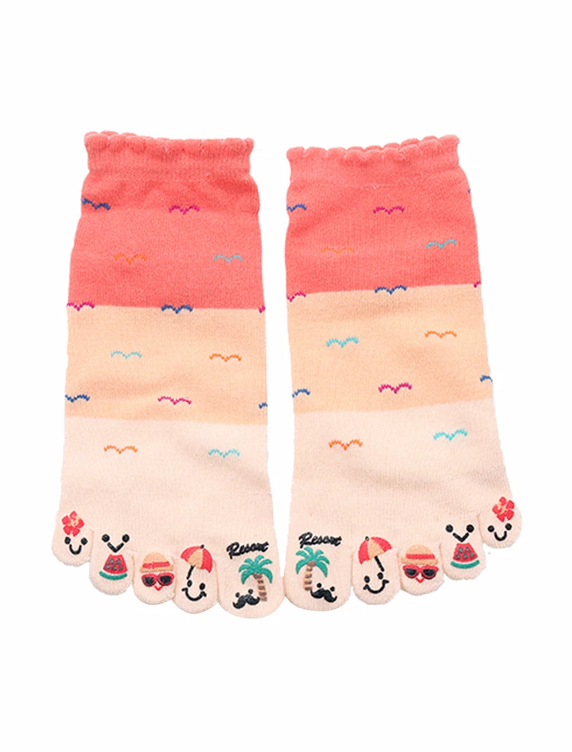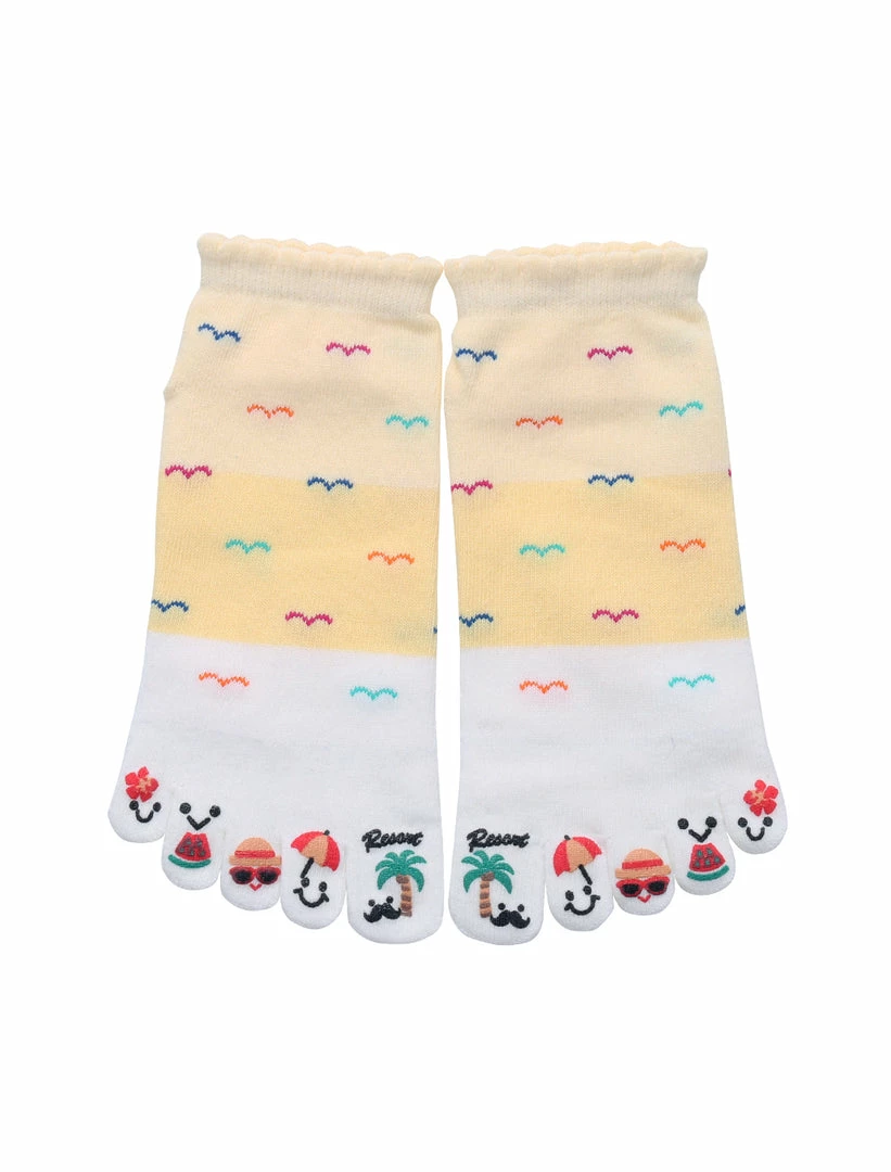Stretchy, Lightweight, Seamless, Color Block, Cartoon Prints, Stripes Pattern, No Show, Toe Socks