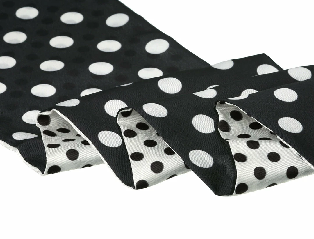 - Feature: Classic large polka dots and small polka dots double-sided printed, simple and all-match, give you a vintage look. Suitable for any uniform, like Stewardess, Hotel, Bank and Flight attendant, etc. Note: Each scarf has a small hole. Regarding the special sewing of skinny scarf, such phenomenon is normal. If you mind, pls buy with cautious. Thanks.