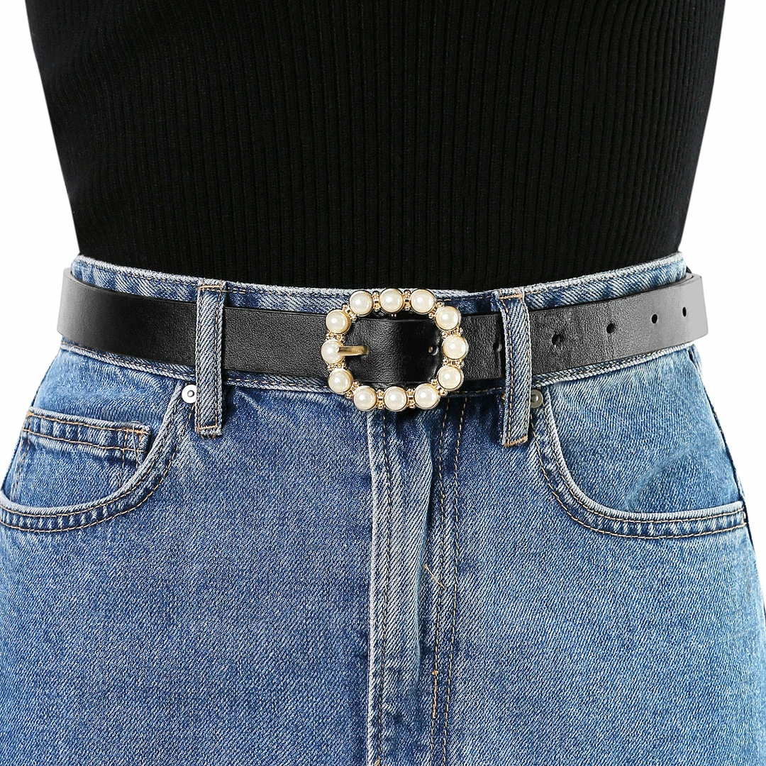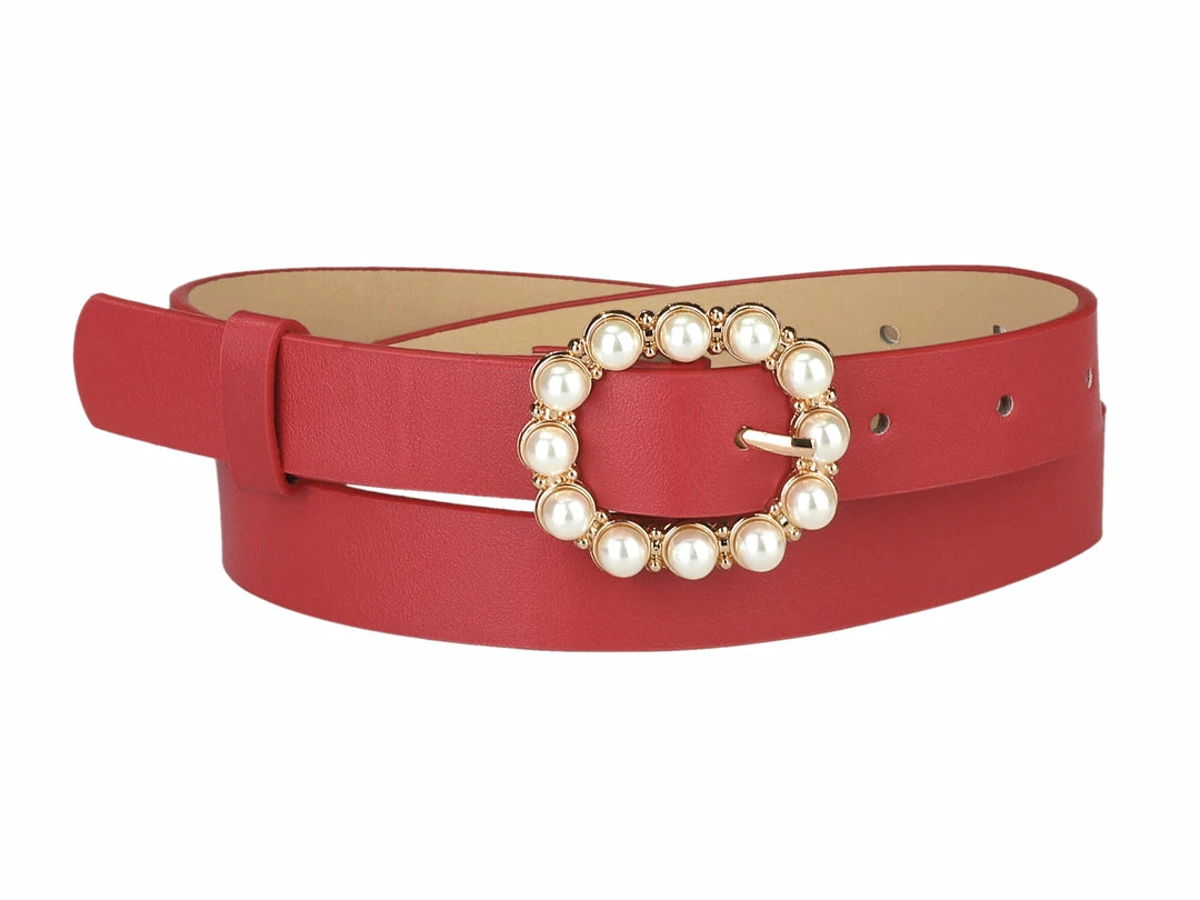 - The classic womens pearl pin buckle belt have a pin buckle and match keeper.