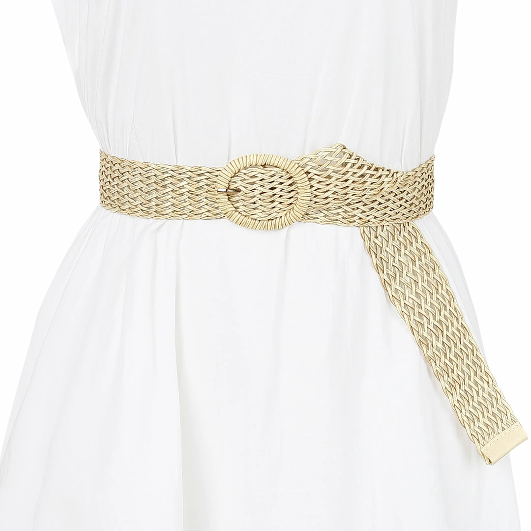 1.Material:No stretchy straw woven,metal buckle.Stylish Design.