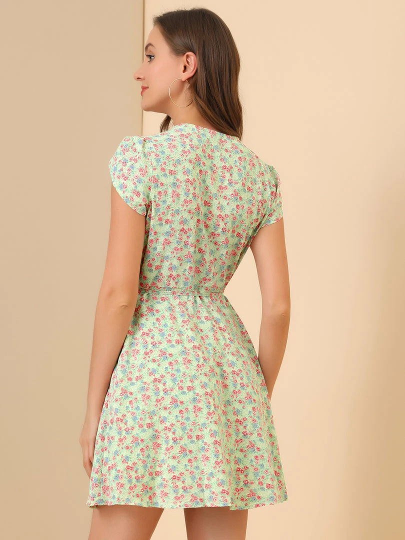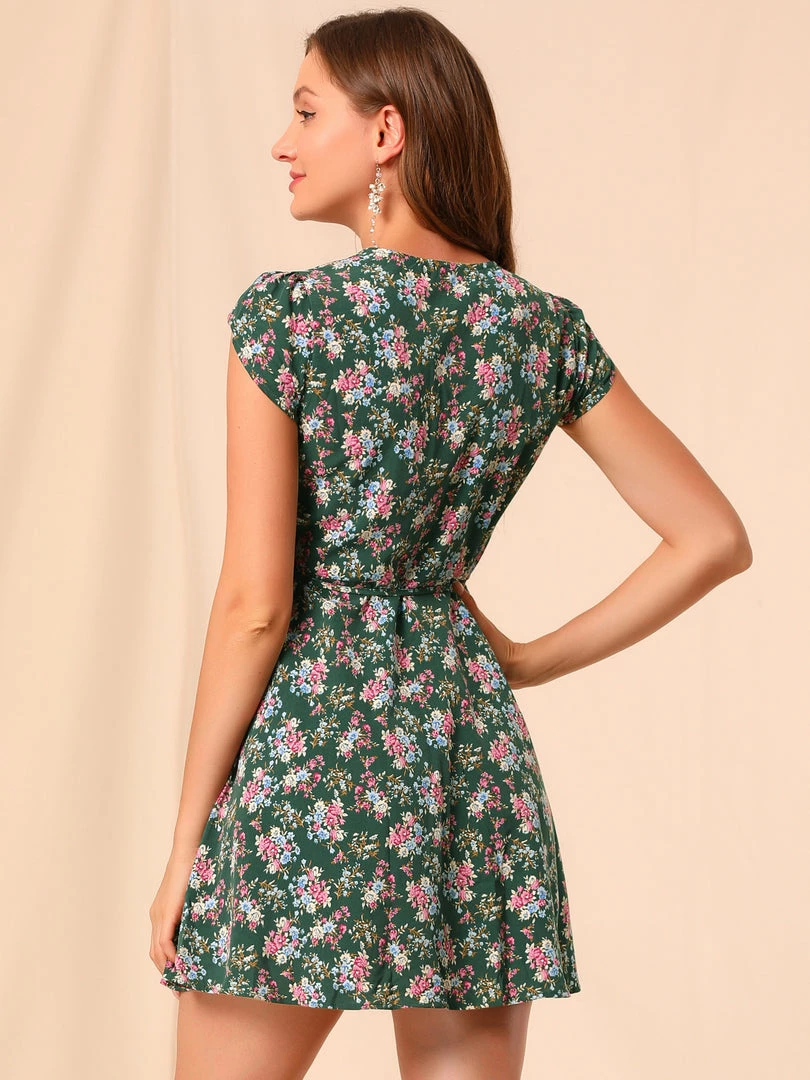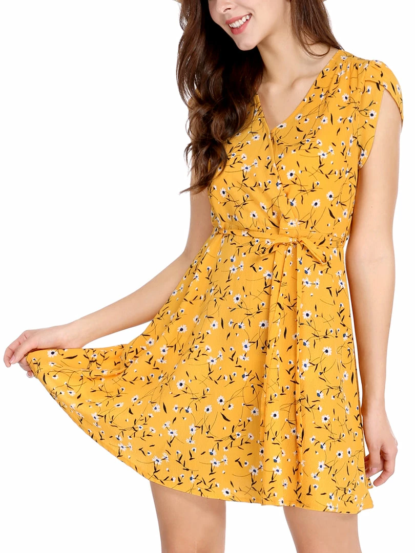 • Fashioned into a flowy style, completed with a crossover v neckline, and printed with flowers in bright color for summer