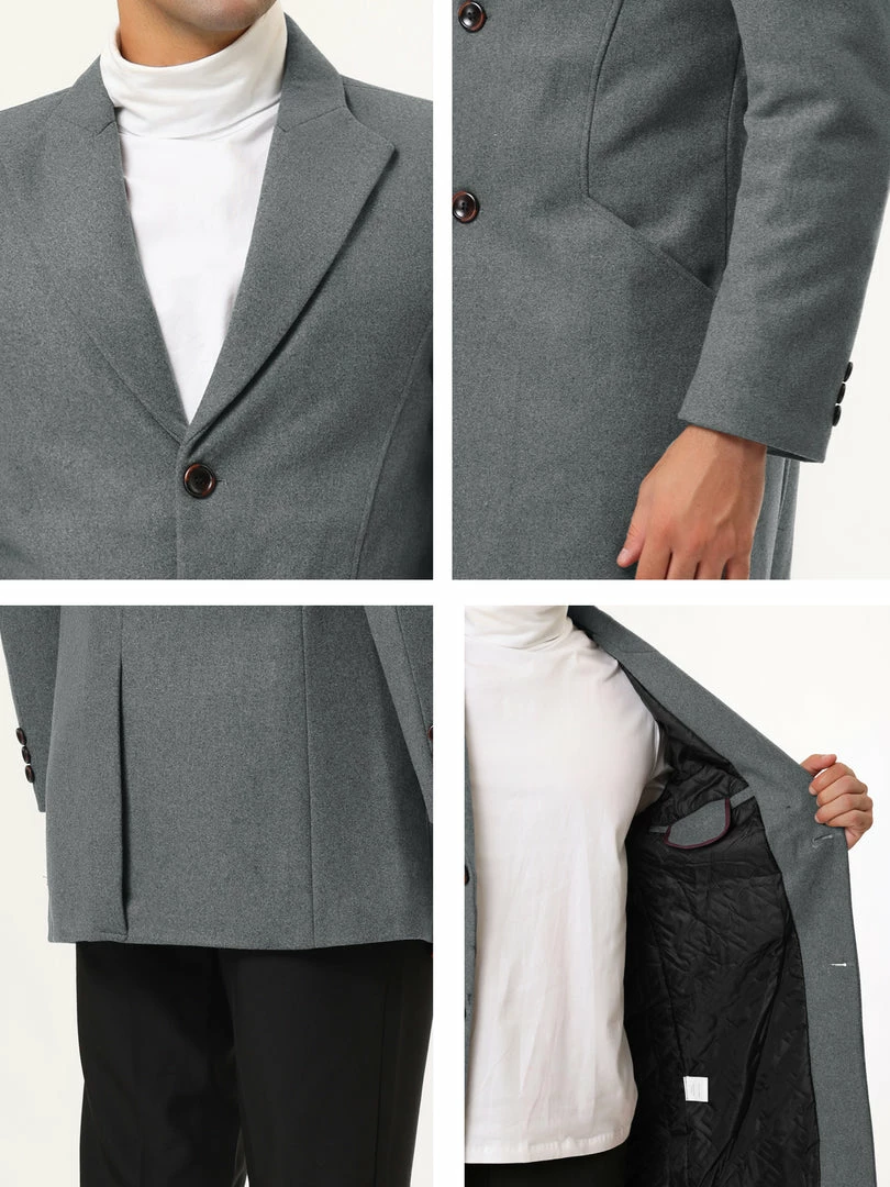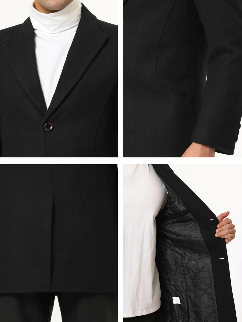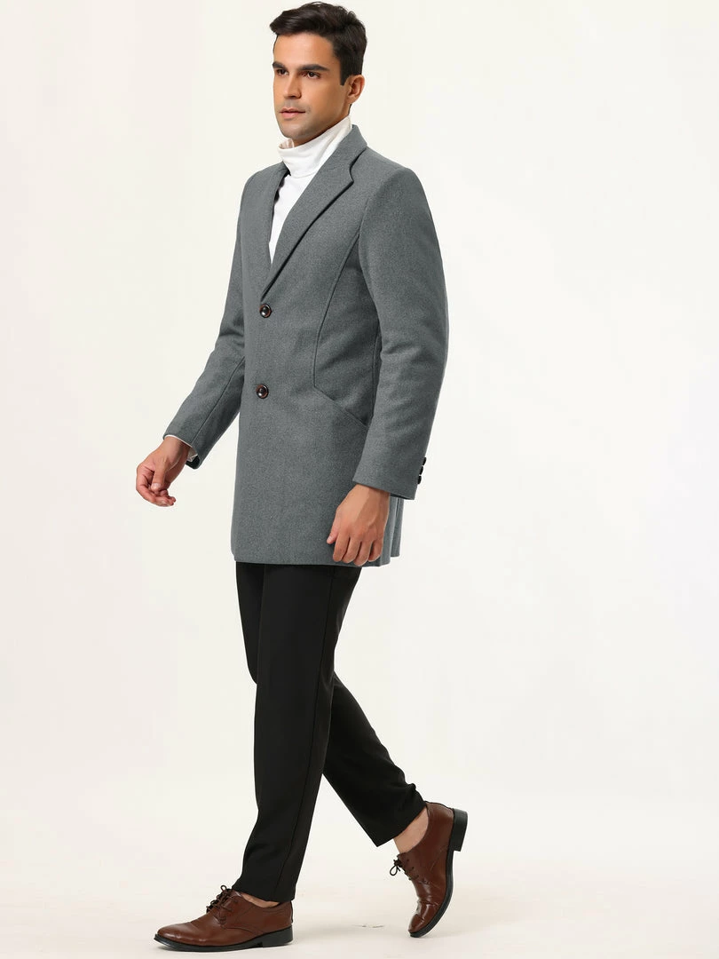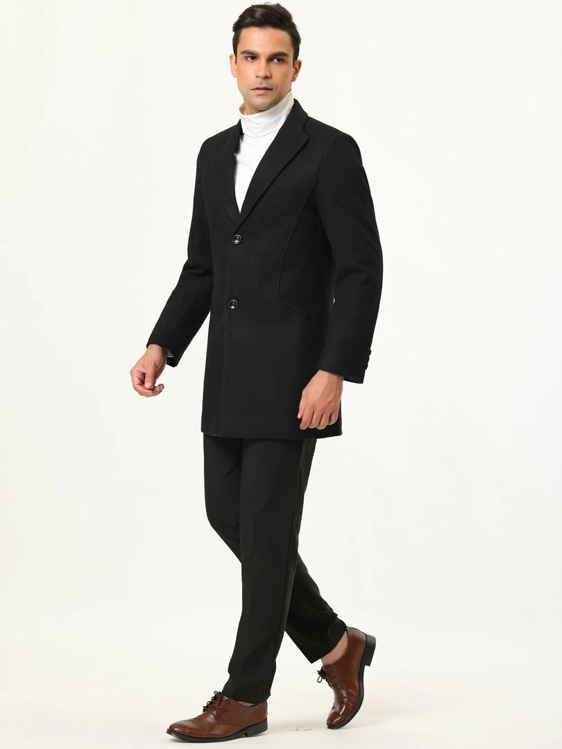 Allegra K Coats & Outerwear Men’s Winter Coat Notch Lapel Single Breasted Two Button Long Outwear Jacket Overcoat