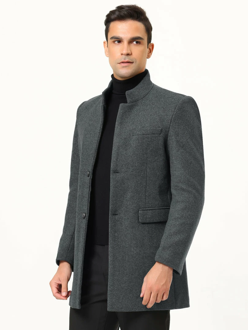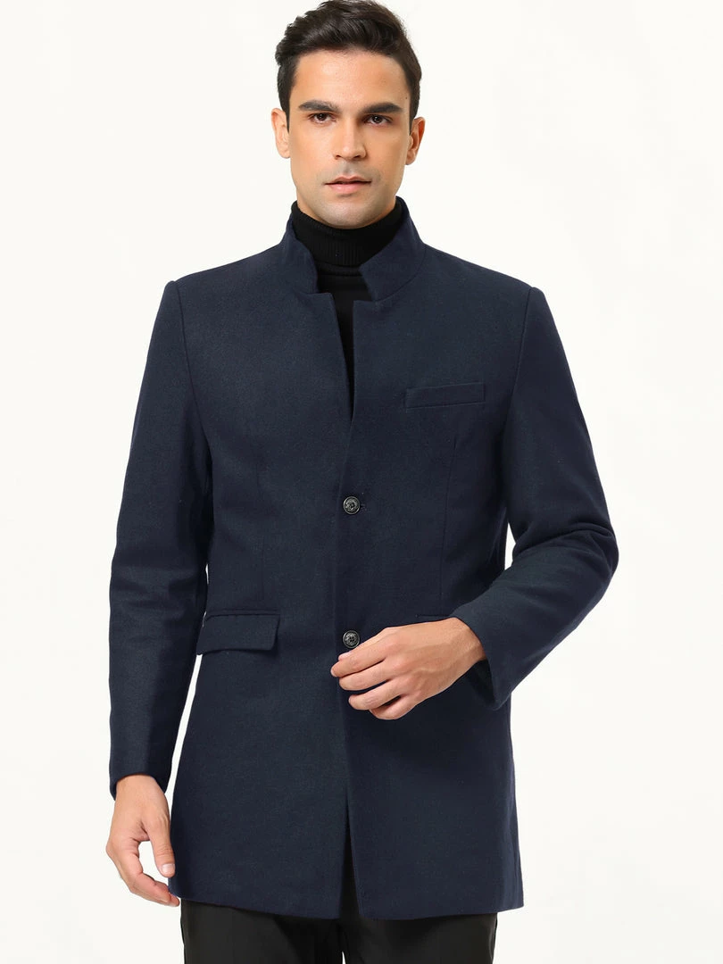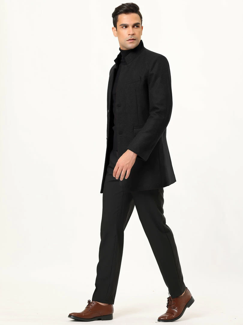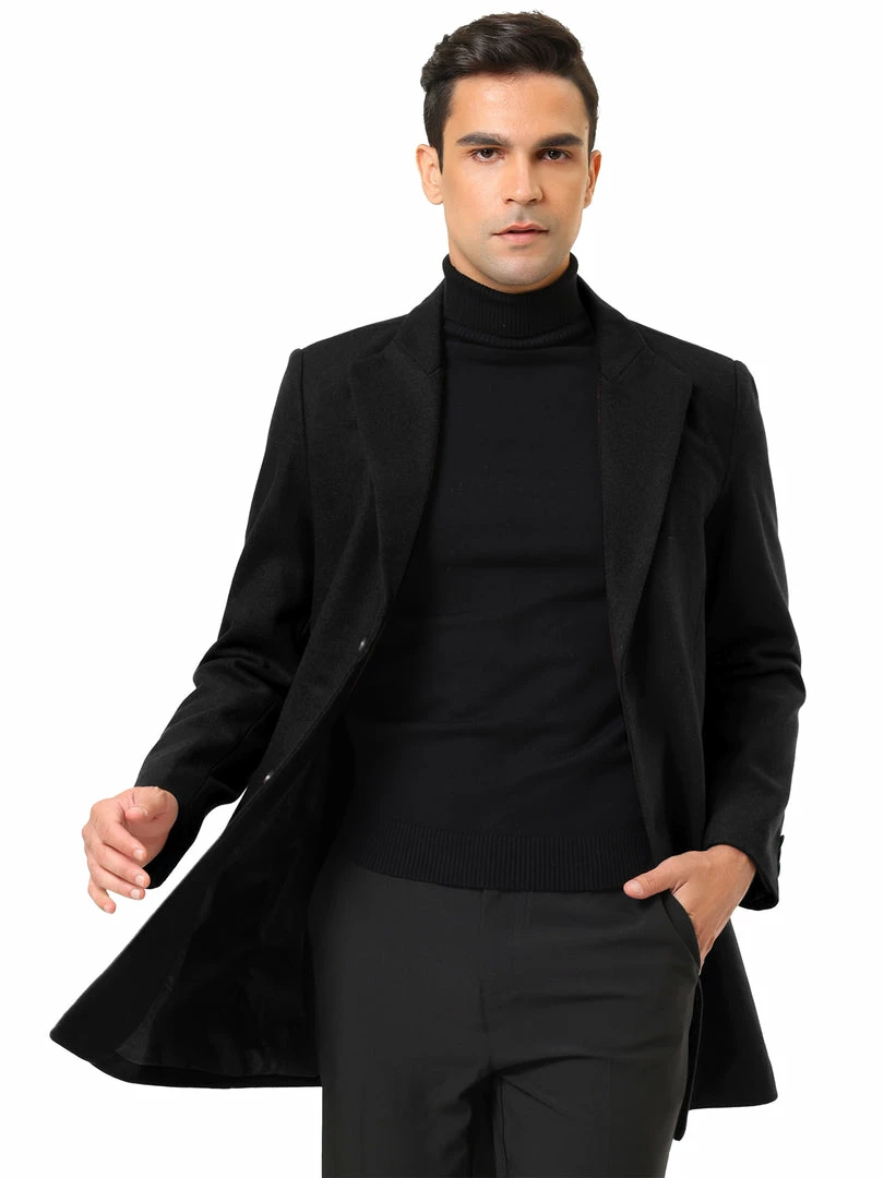 Allegra K Coats & Outerwear Men’s Winter Coat Notch Lapel Single Breasted Two Button Long Outwear Jacket Overcoat