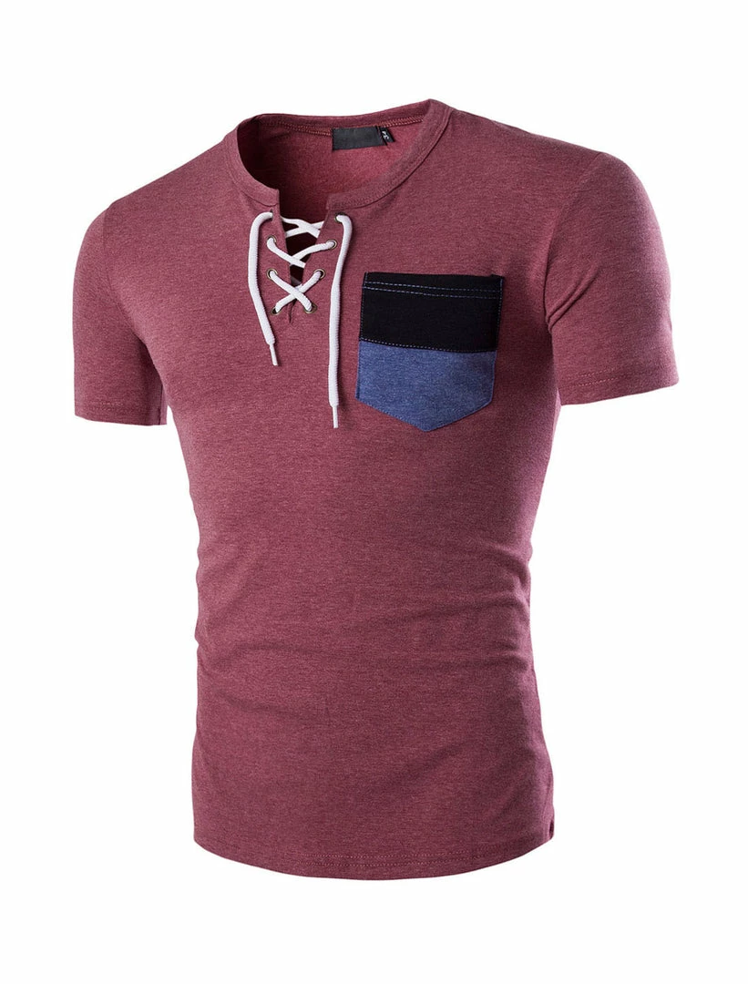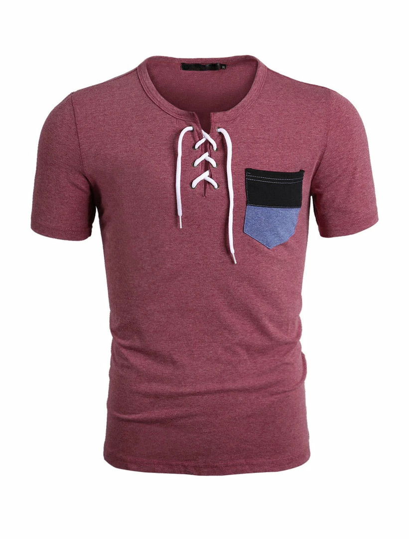 This easy-to-throw-on tee is a lazy-day essential that will become a mainstay in your closet. With a round neckline, contrast patch pocket, and Lace-up front, this short-sleeved number will pair perfectly with anything front joggers to denim.