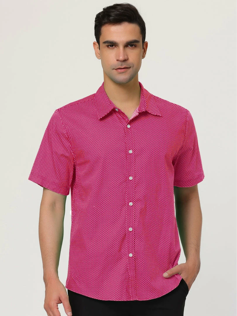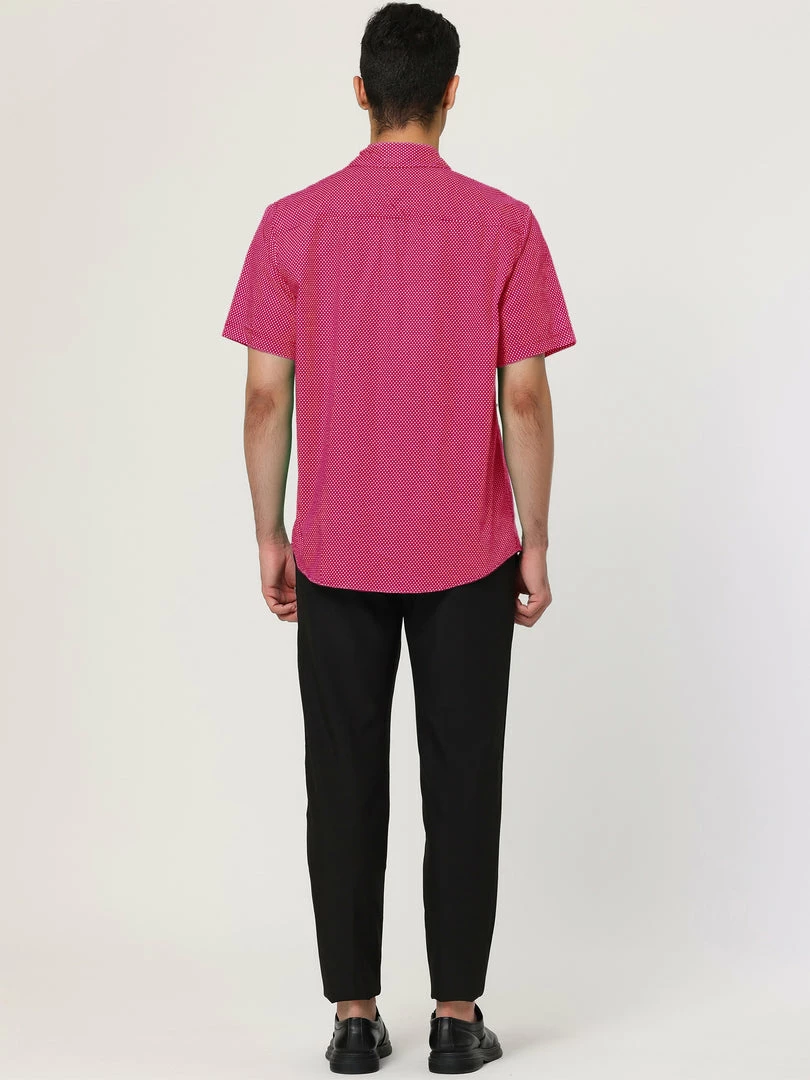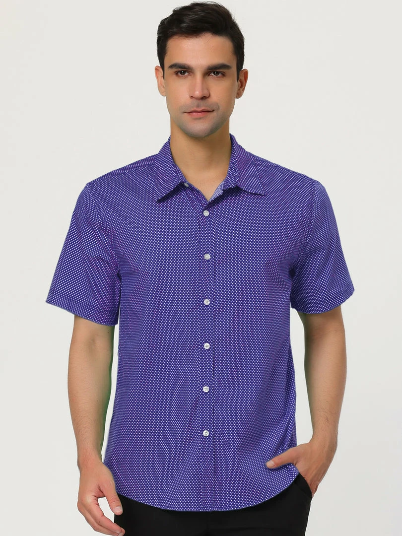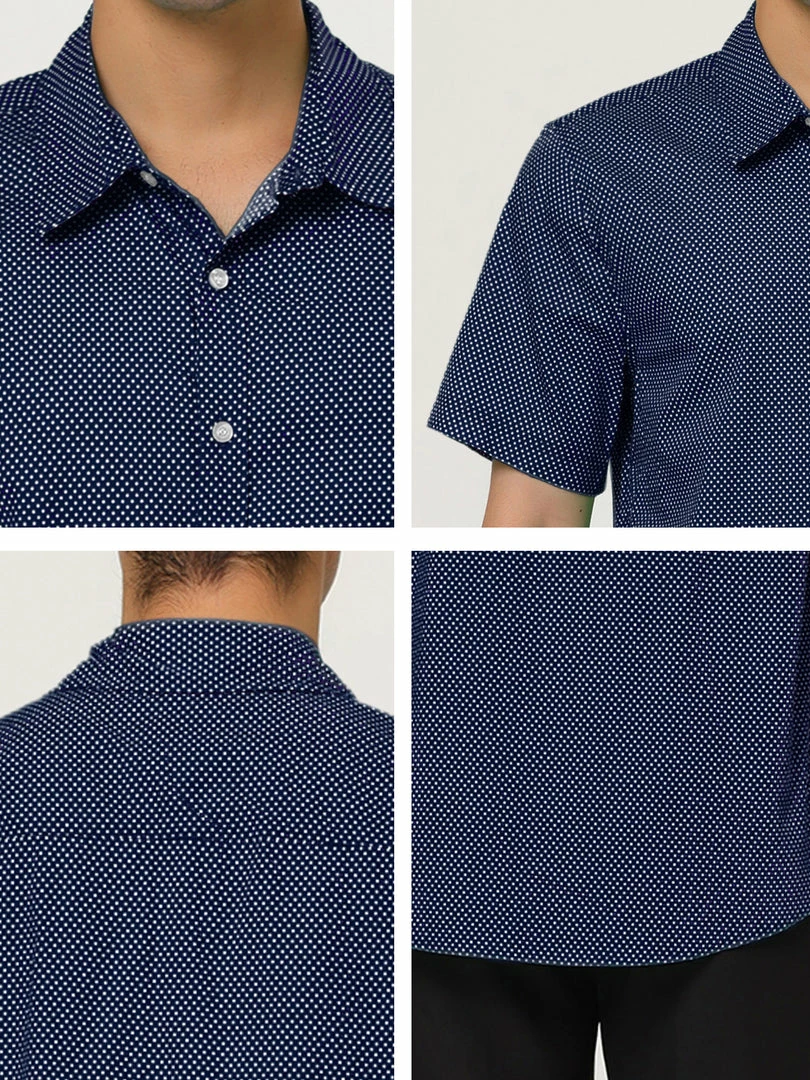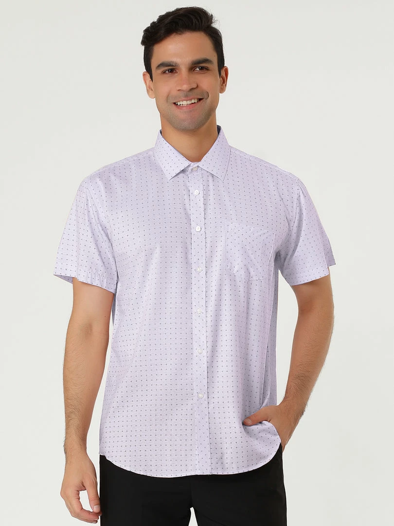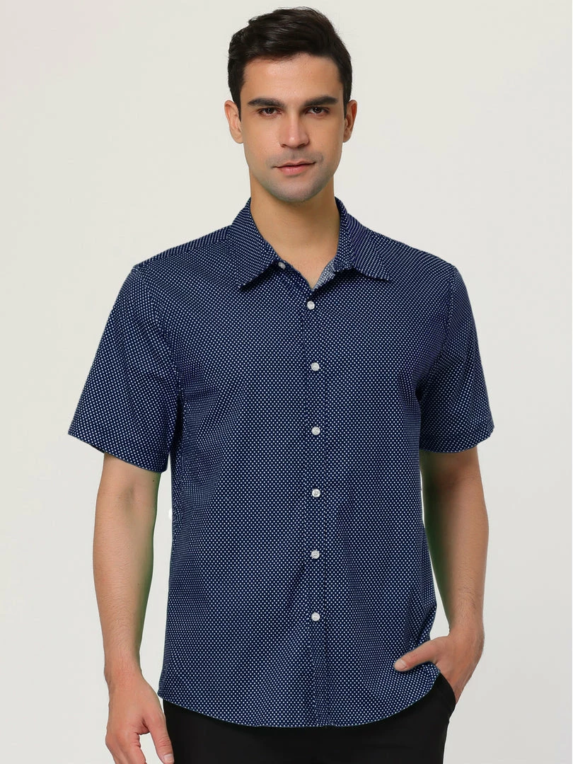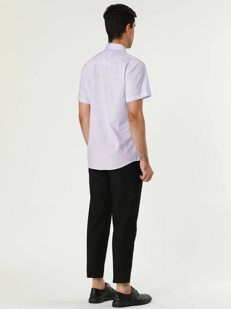 A handsome addition to any outfit let alone wardrobe, this classic fit shirt features a buttoned front and a basic collar. Its short sleeves lend it a hint of ease, but its micro dotted print rounds out its overall refined appeal.