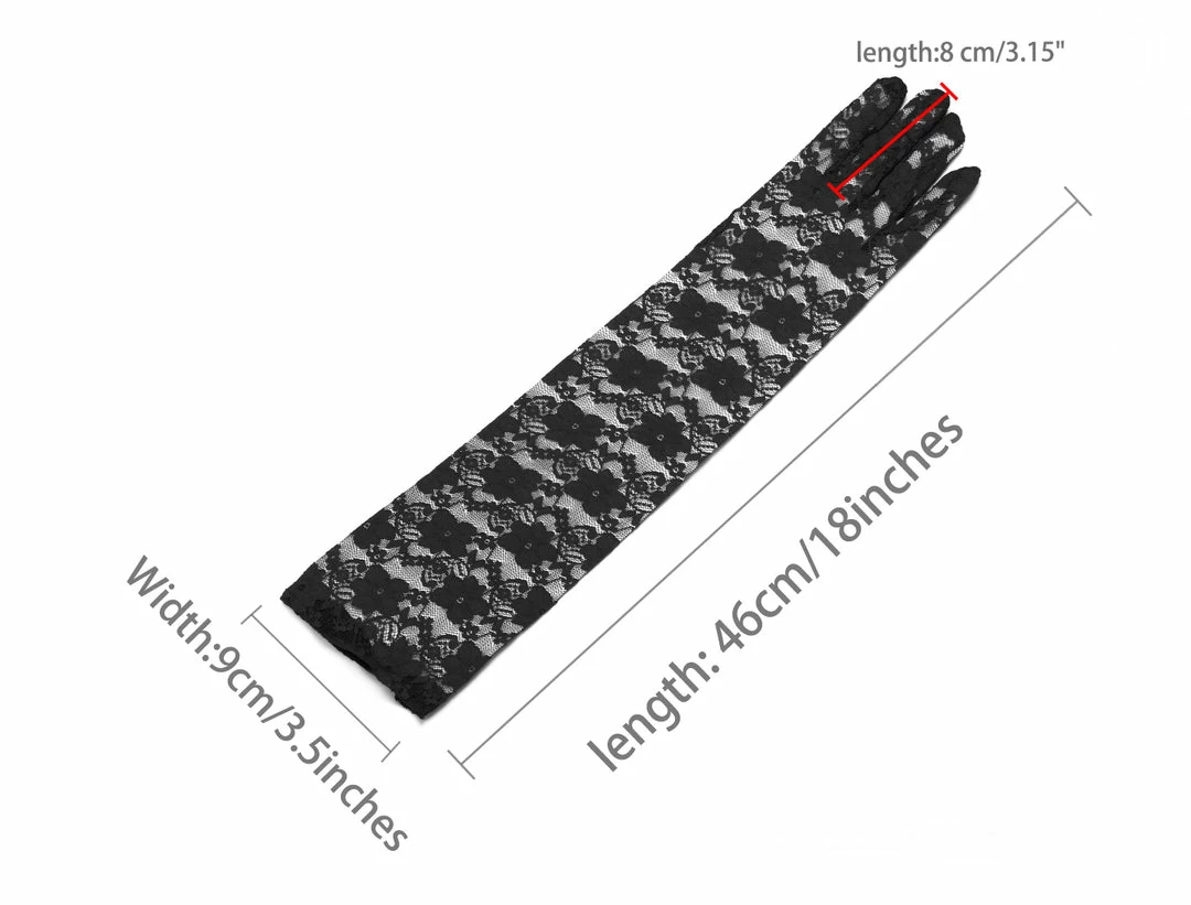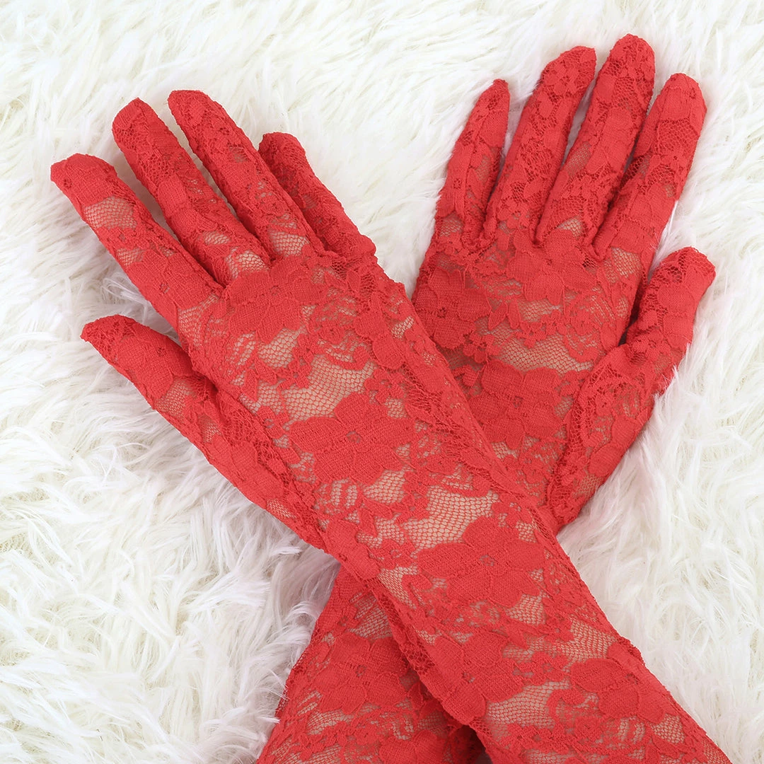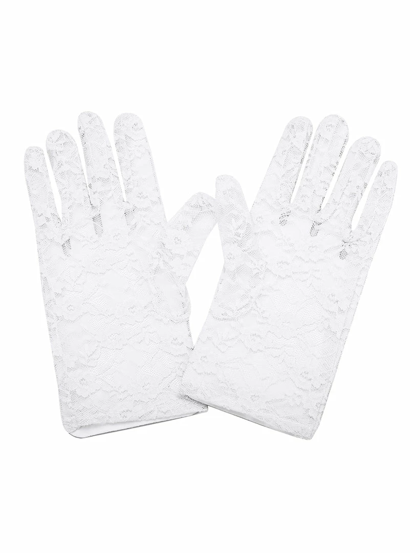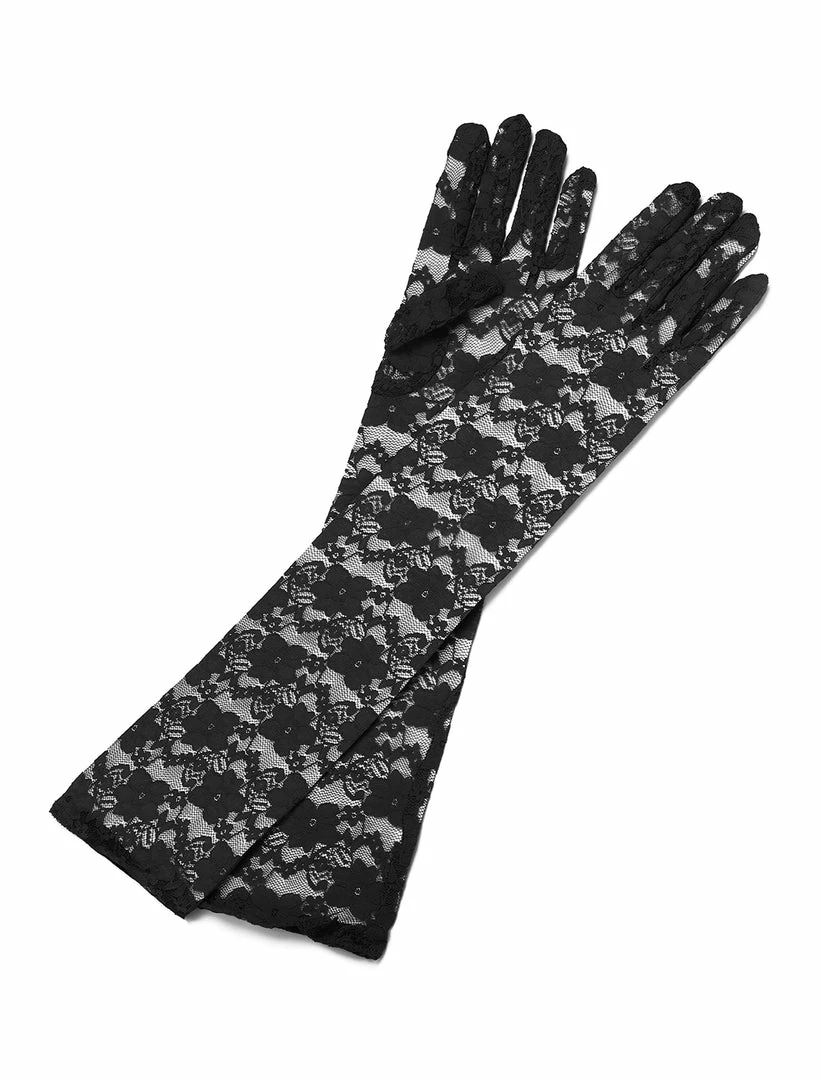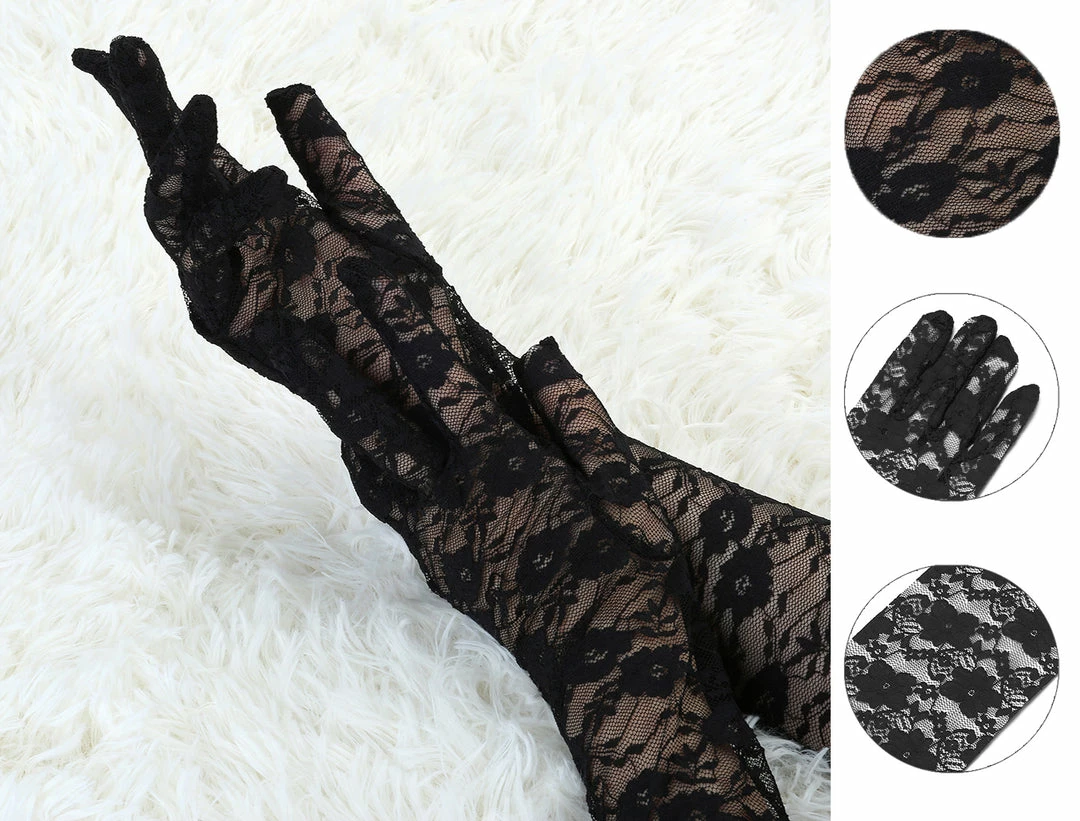 Wrist Length, See Through, Full Finger, Floral Lace, Gloves