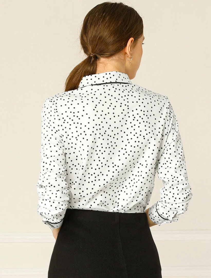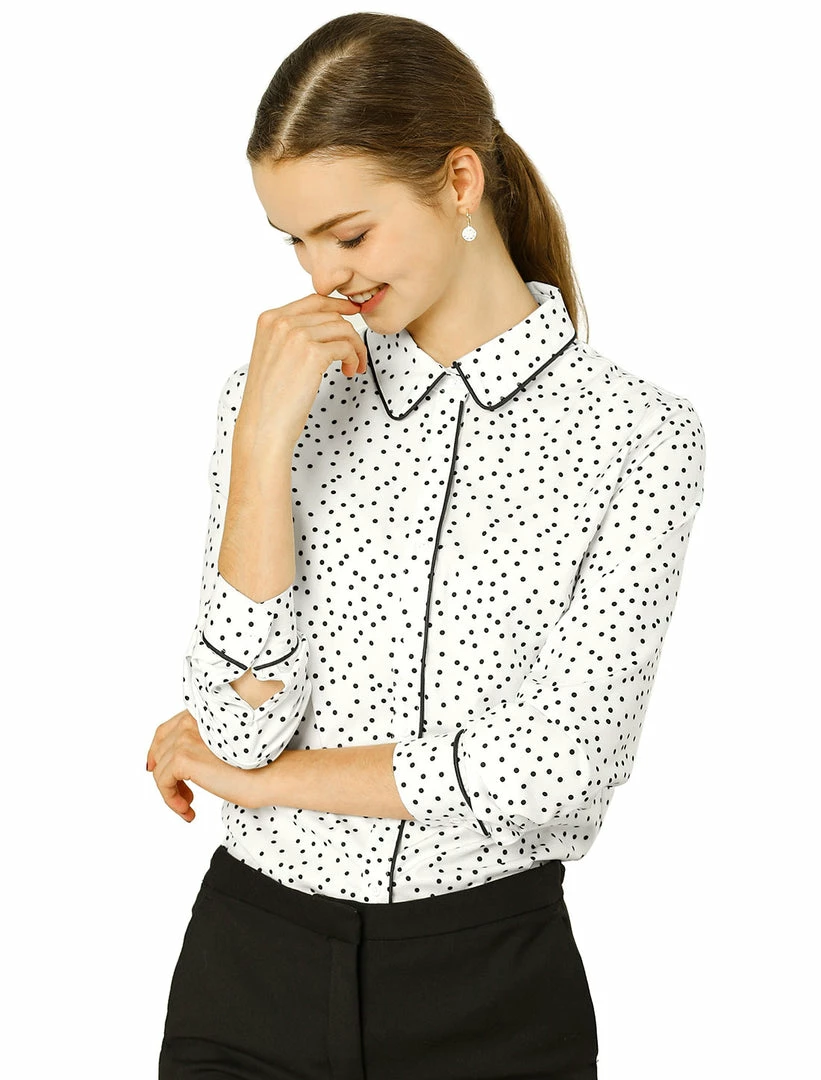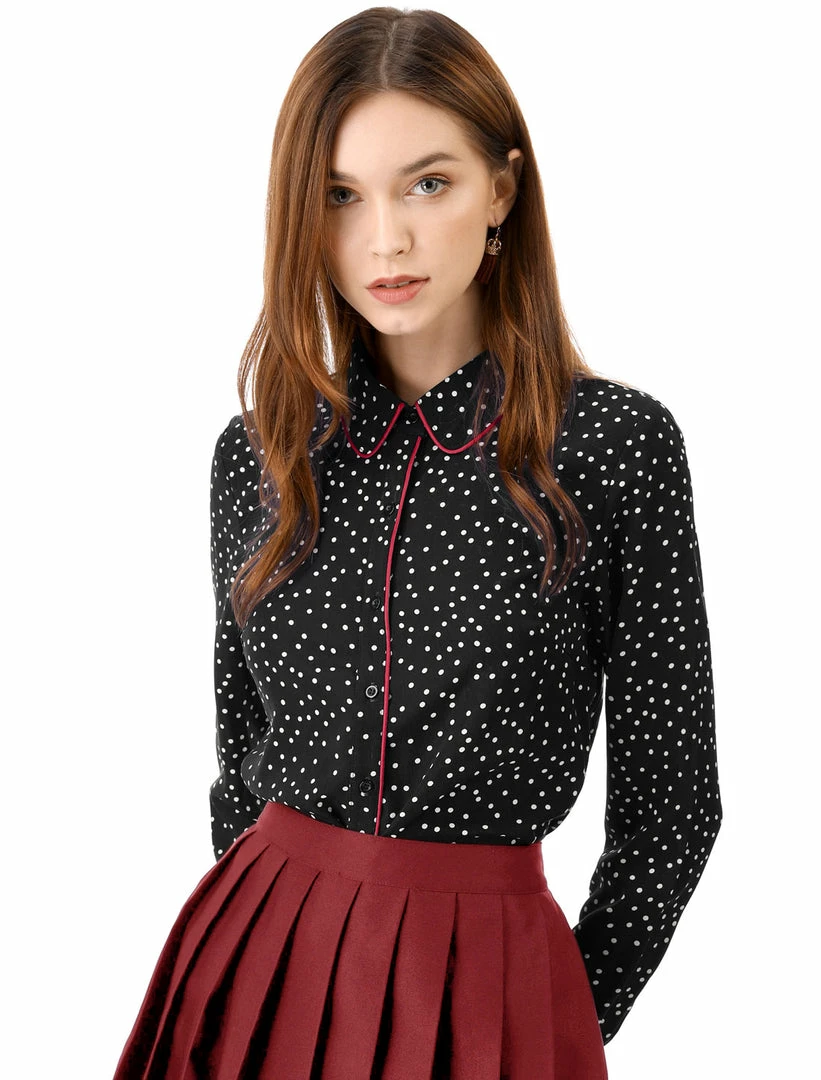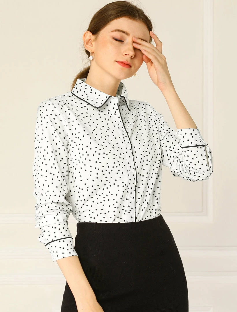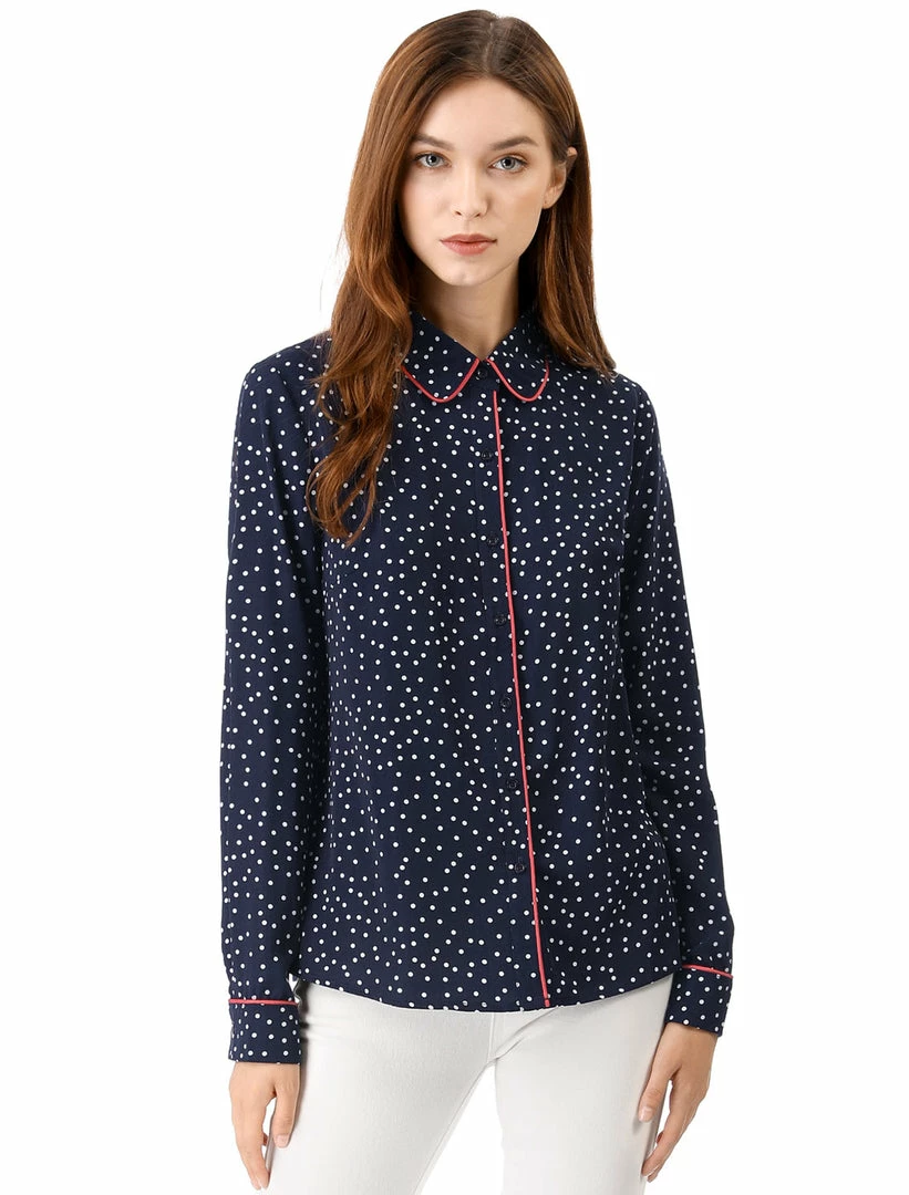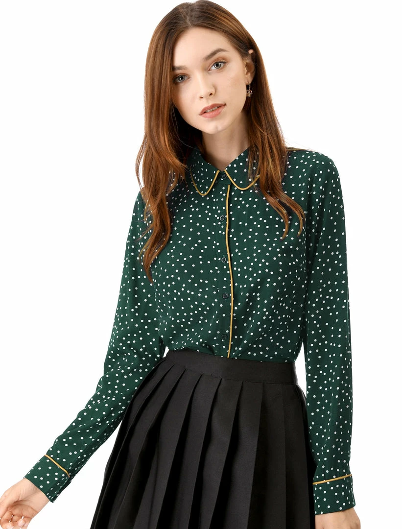 - Point Collar, Contrast Piped, Polka Dot Pattern