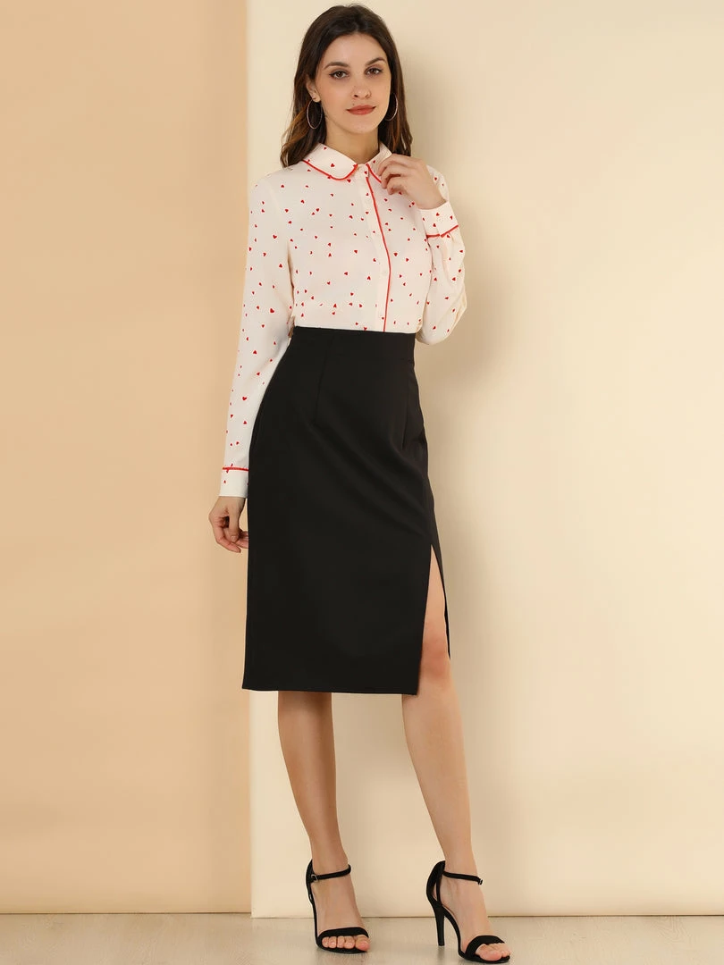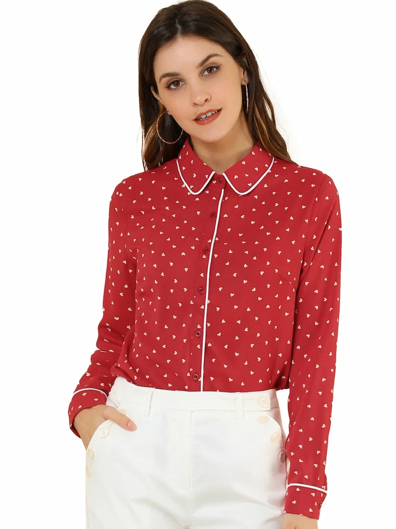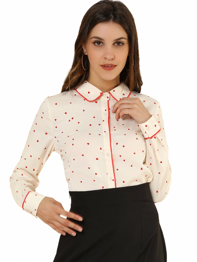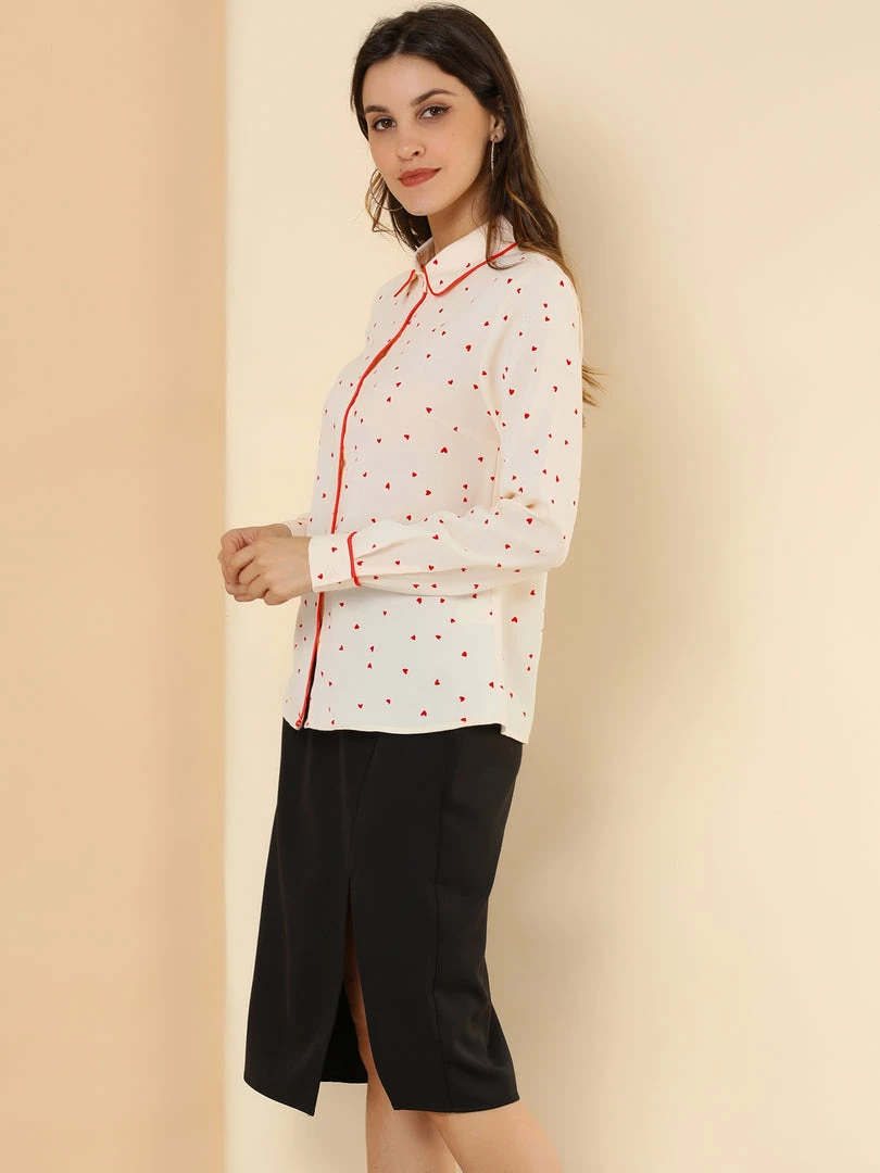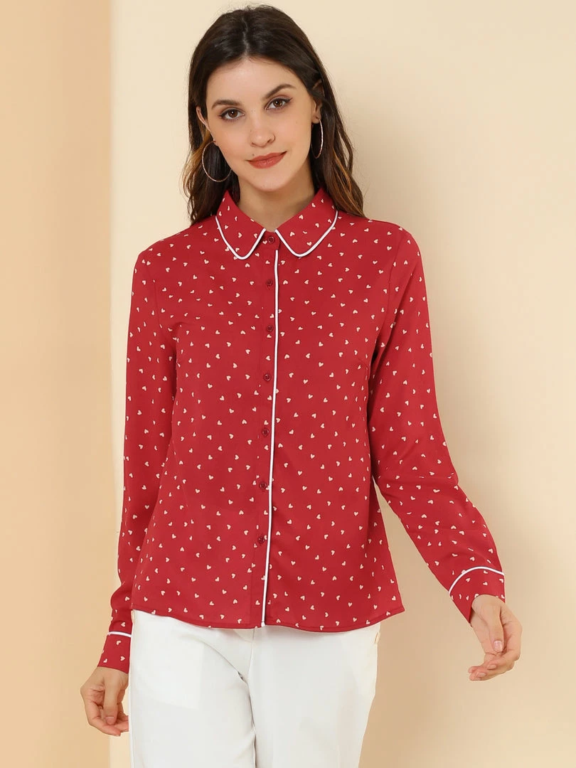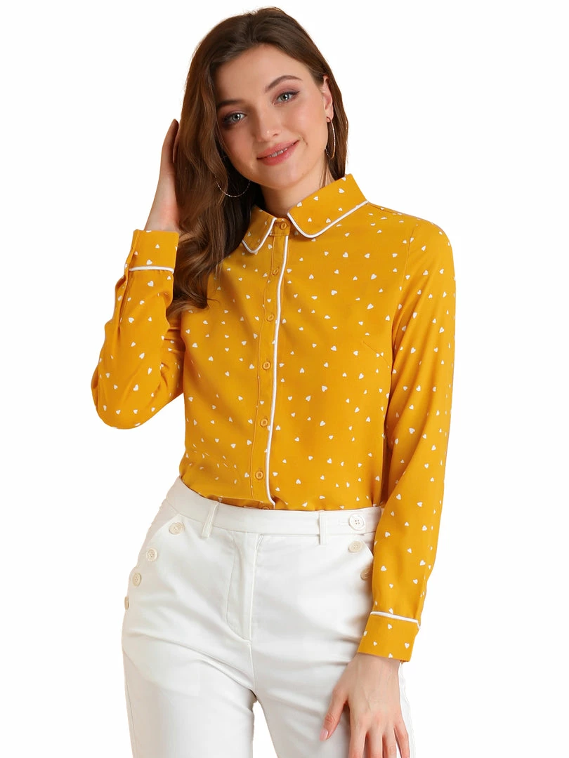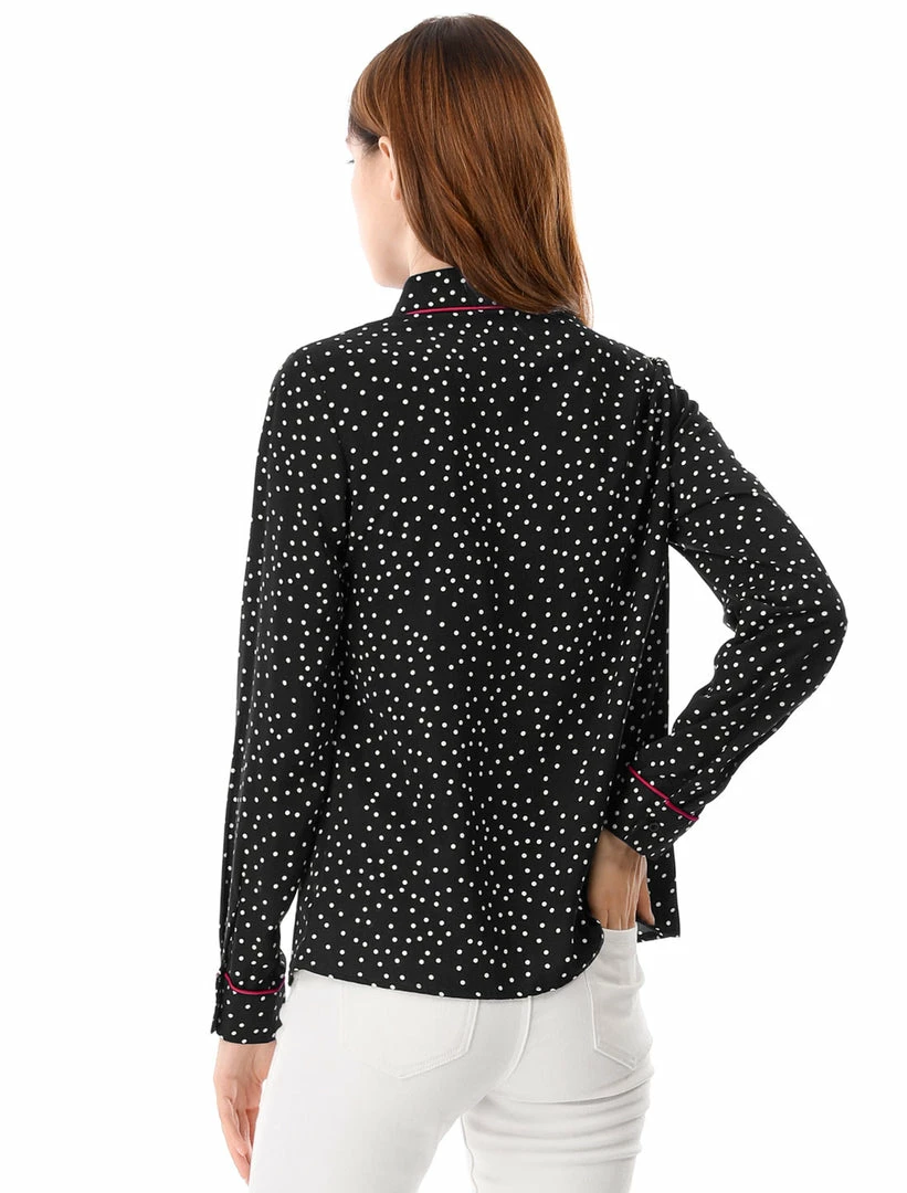 - Point Collar, Contrast Piped, Polka Dot Pattern