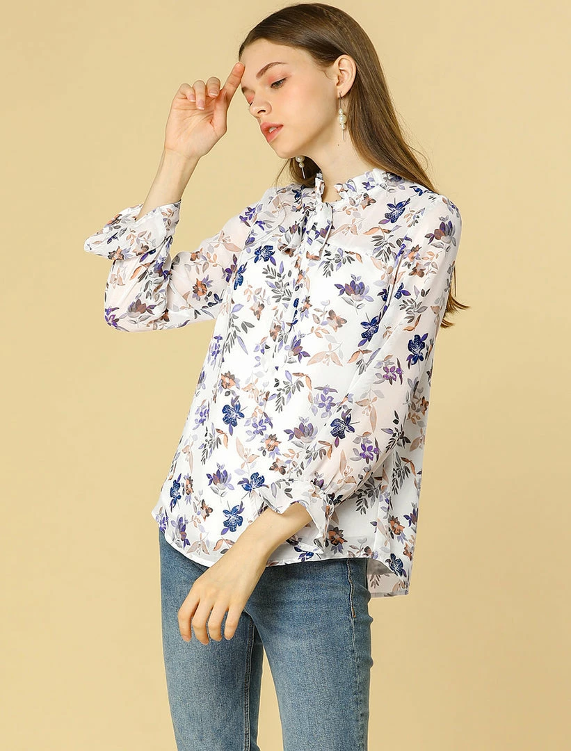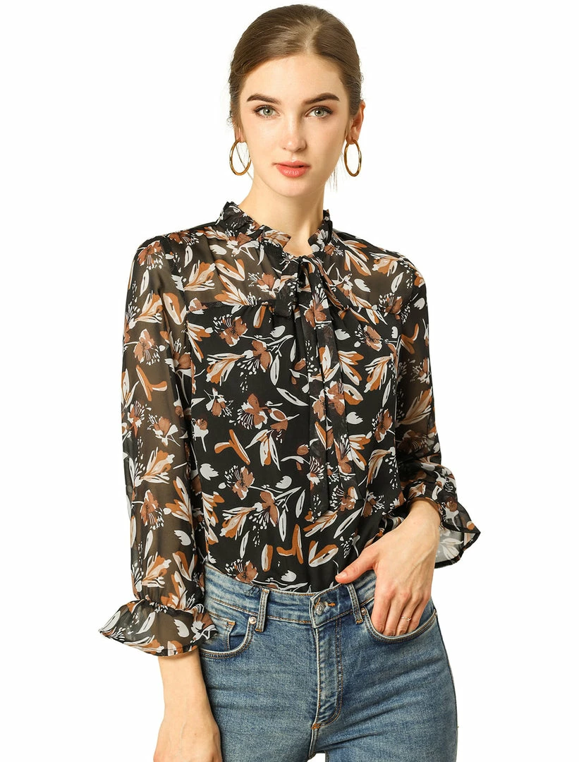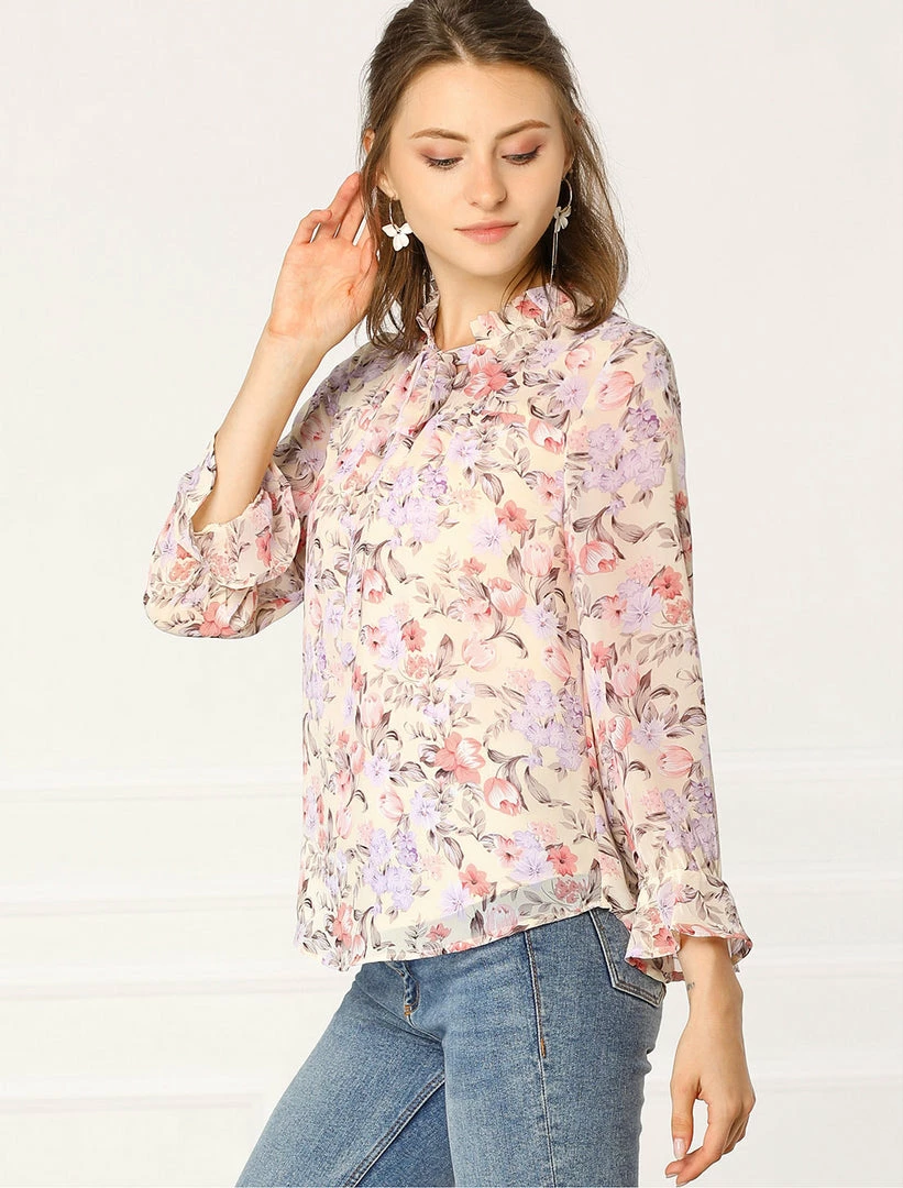 - Tie Ruffle Stand Collar