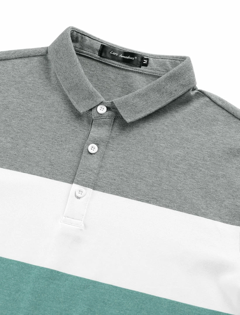 Allegra K Men Casual Summer Contrast Color Striped Slim Fit Polo Shirt