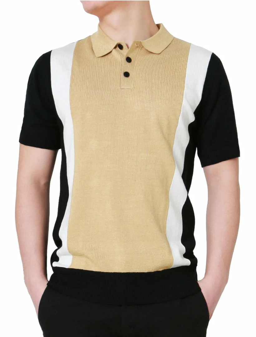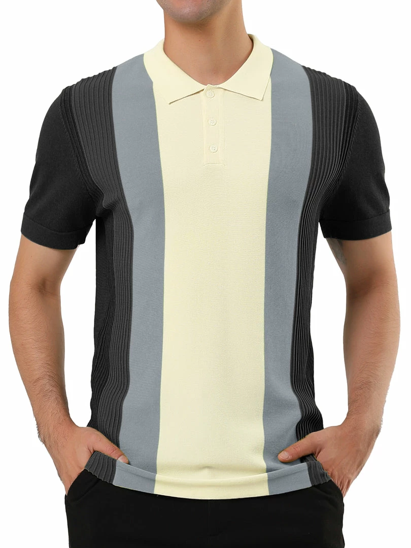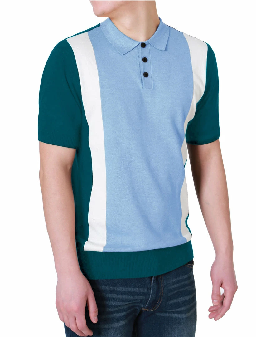 Mens knitted color block design point collar three-button placket short sleeves polo shirt. Front Color block design with ribbed hem and cuff makes it fashionable and lively. Soft, moisture-wicking and breathable fine knitted yarn which is comfortable to wear. This is a great choice for various occasions, such as business, date, college and everyday dressing. Easy styling as it is, you will look smart just by matching it with casual pants or jeans.