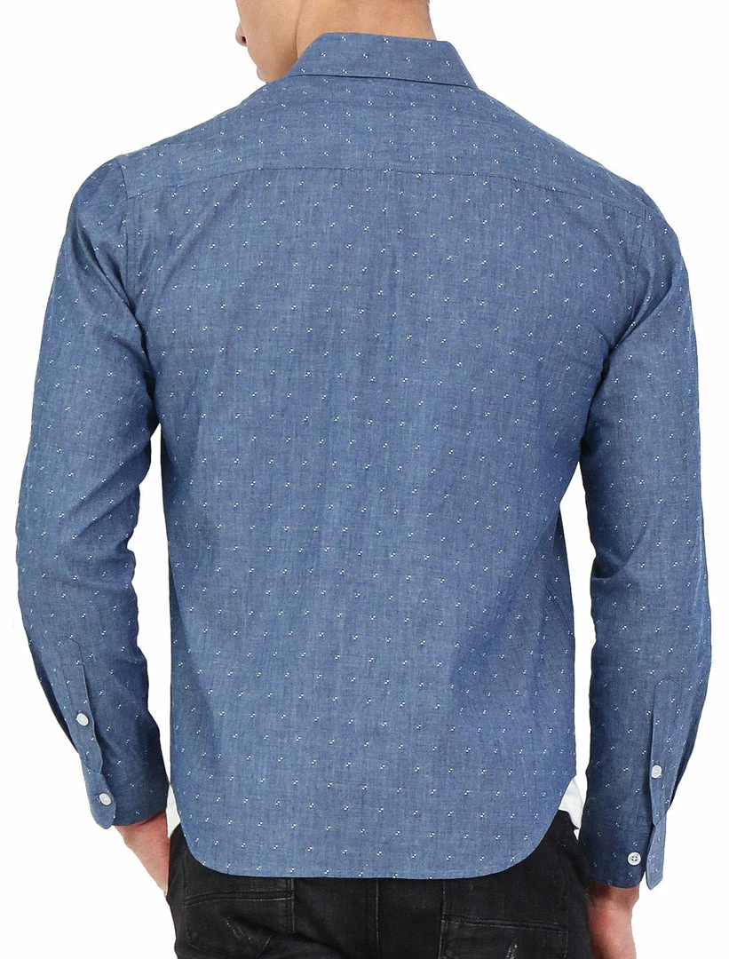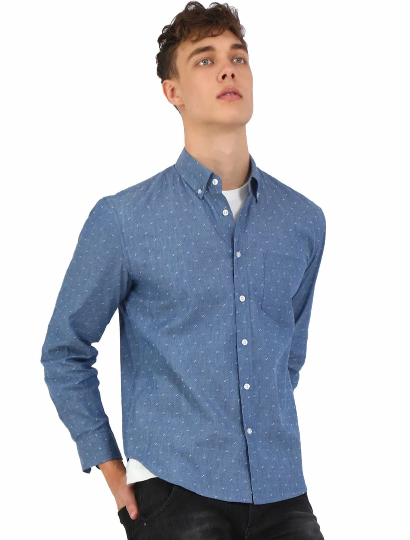 Get the casual appeal of denim and elegant look of square weave all in one which heighten vibrant and lively vibe of a light color shirt. Team it with dark pants and sneakers for a chic casual look.