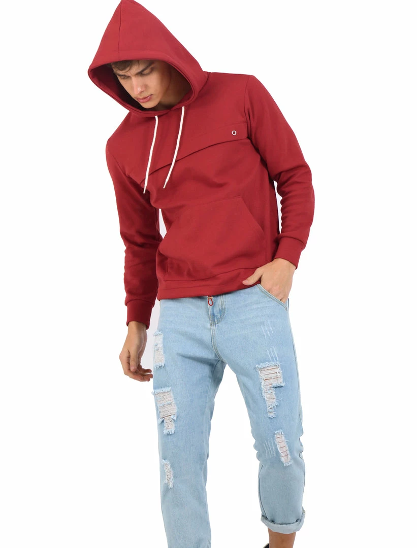 Bring a lively feeling to your casual sportswear look with this hoodie sweatshirt which finished adjustable hood and front kanganroo pocket. The design of featured chest storm flap is out of the ordinary. Wear with a simple t-shirt layering, jeans and sneakers for a casual outfit.