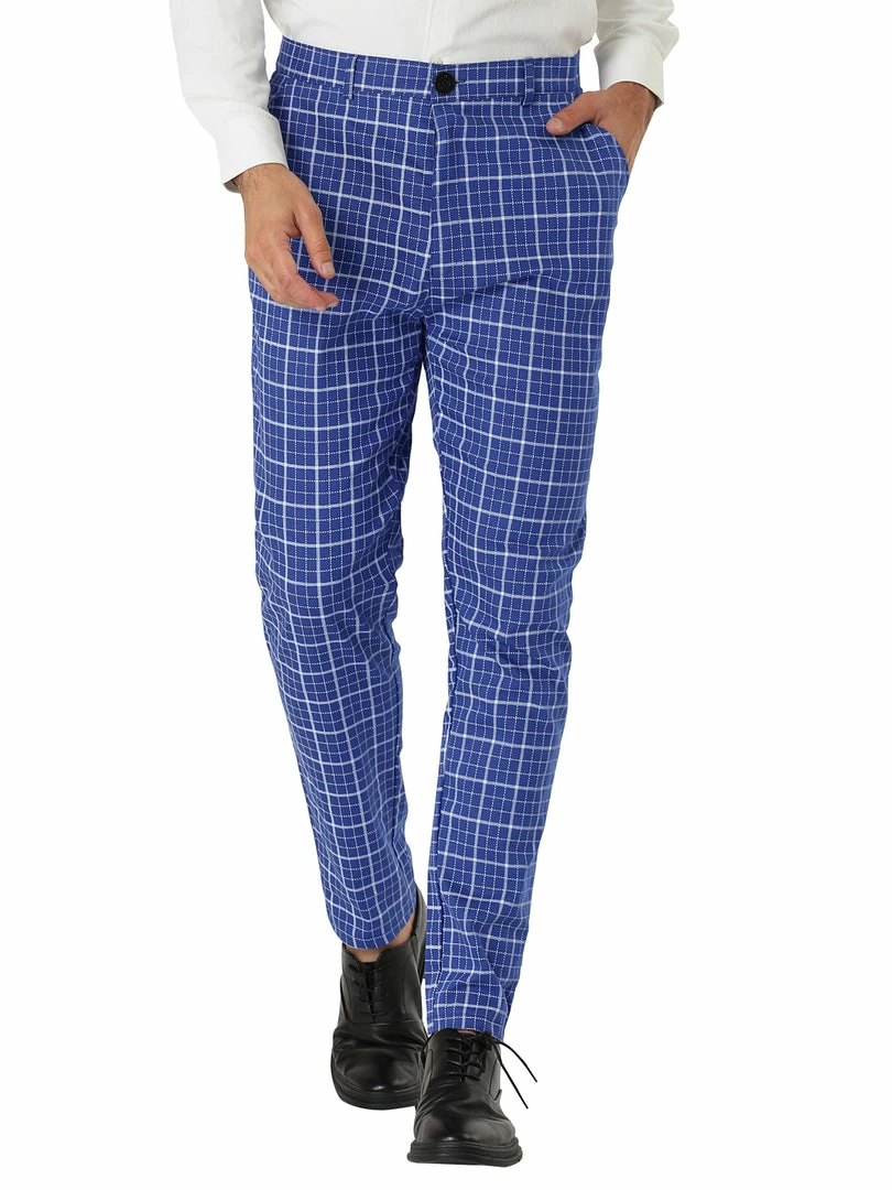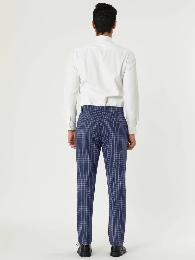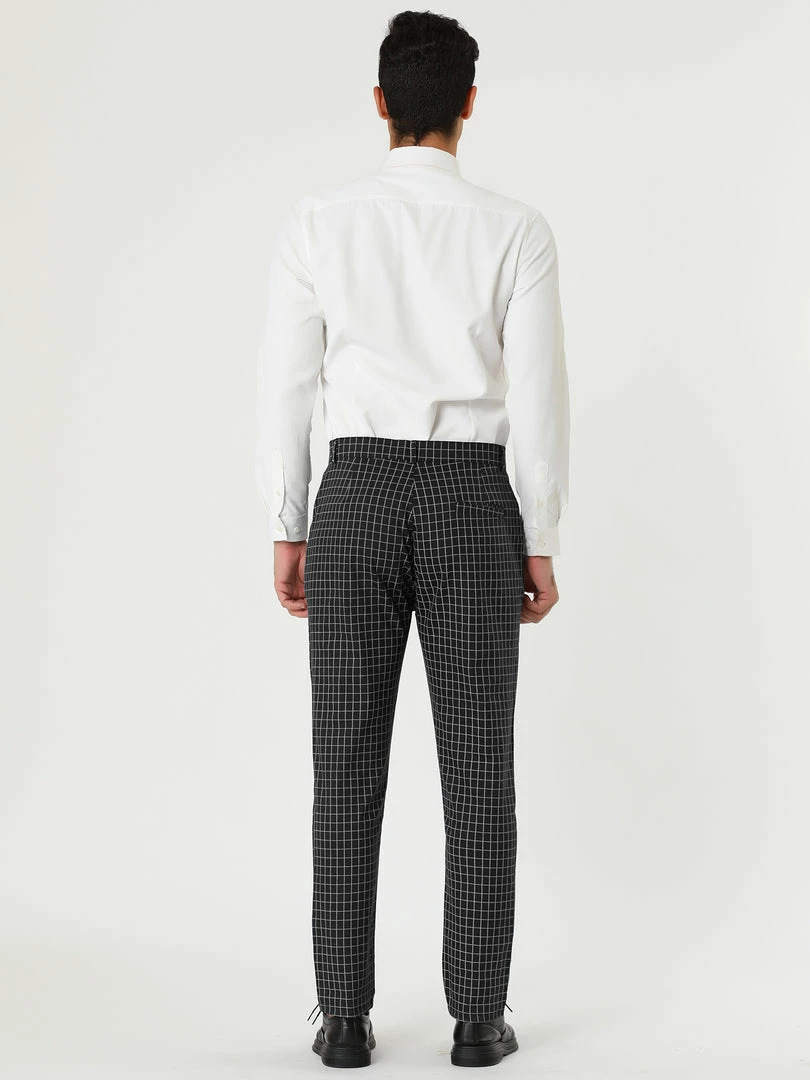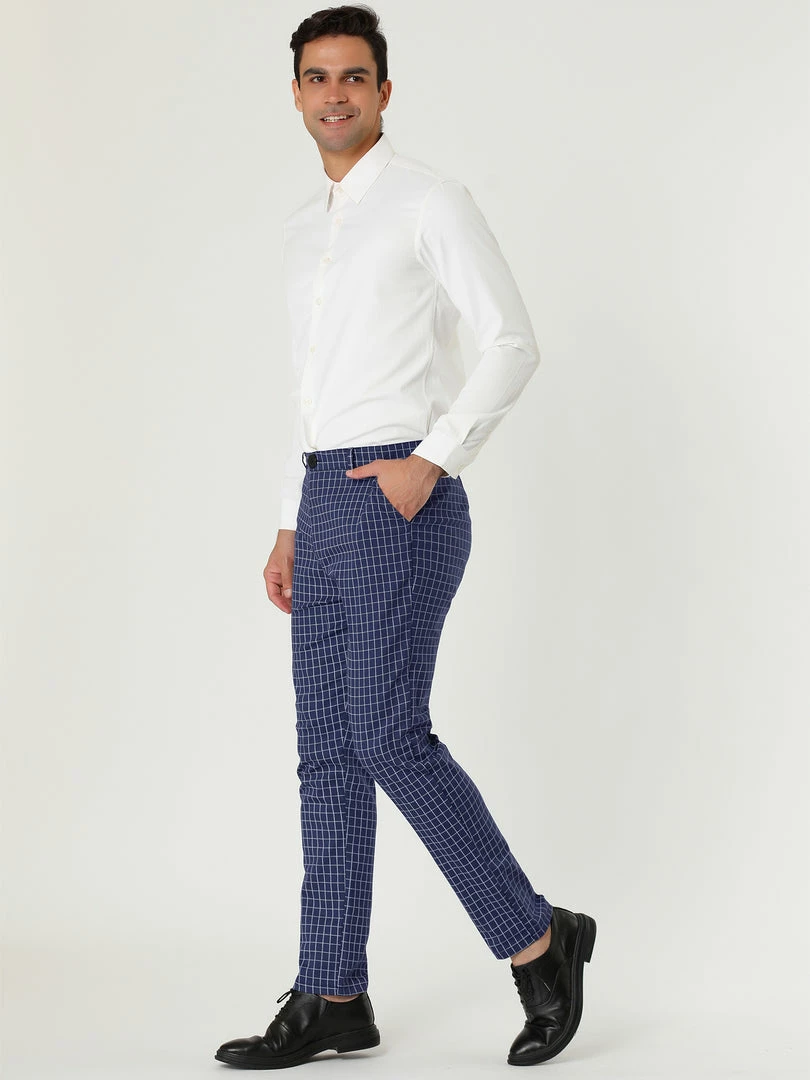 Allegra K Men’s Business Pants Checked Printed Slim Fit Flat Front Plaid Dress Trousers