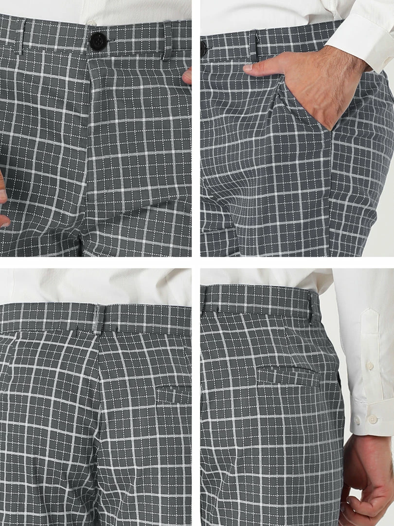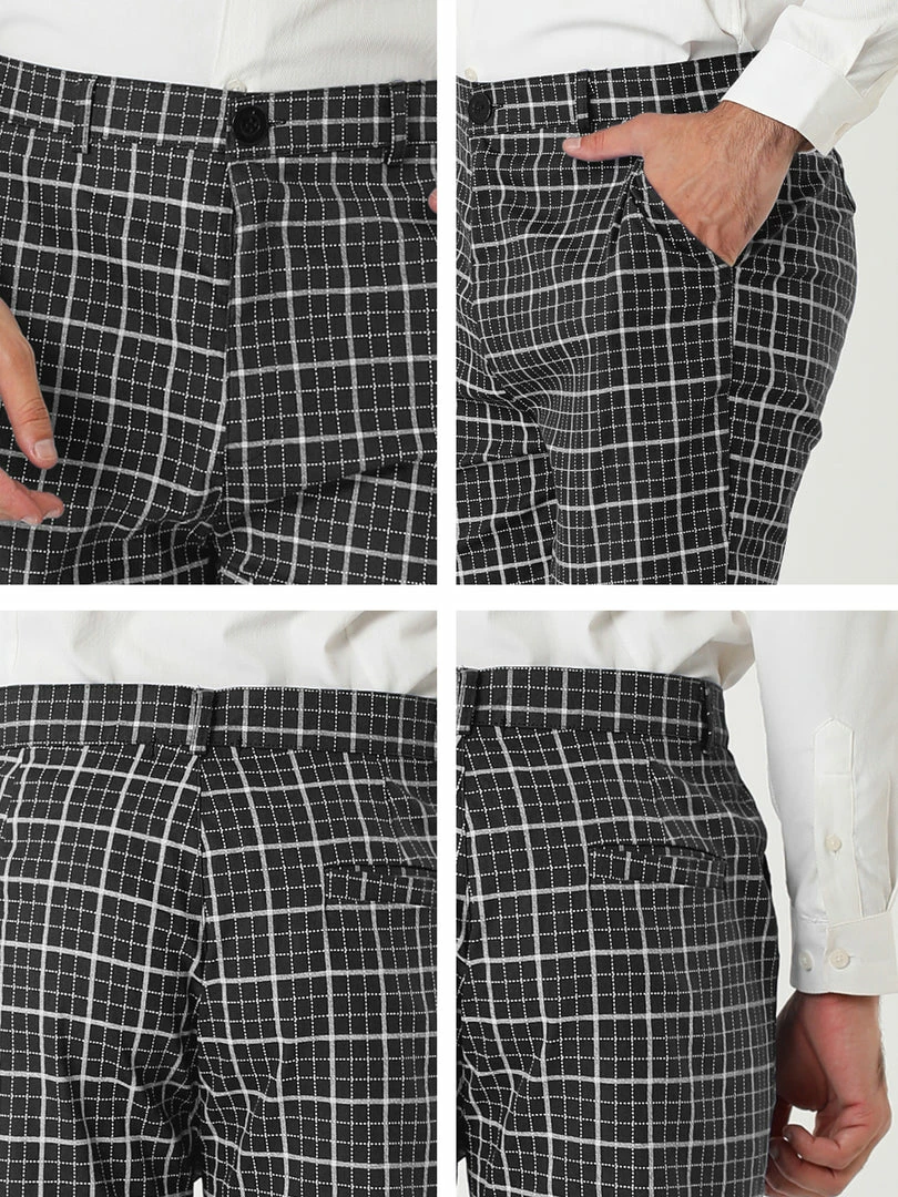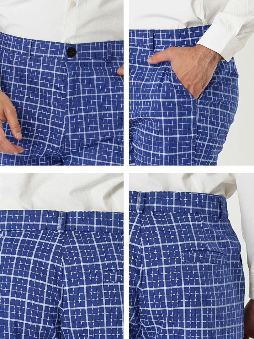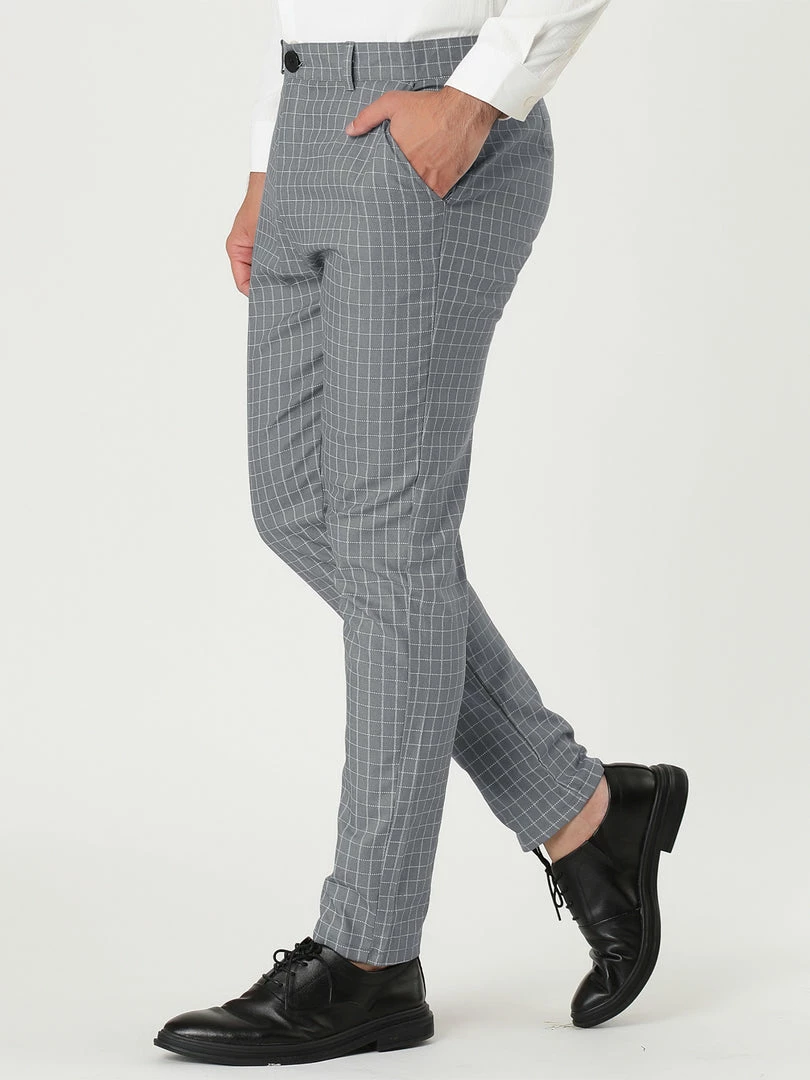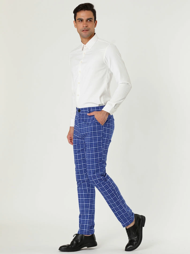 Allegra K Men’s Business Pants Checked Printed Slim Fit Flat Front Plaid Dress Trousers