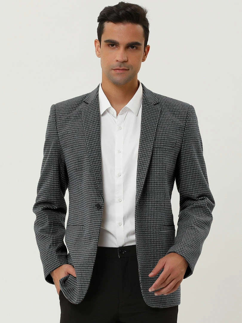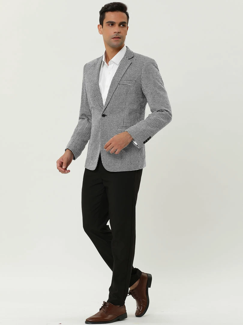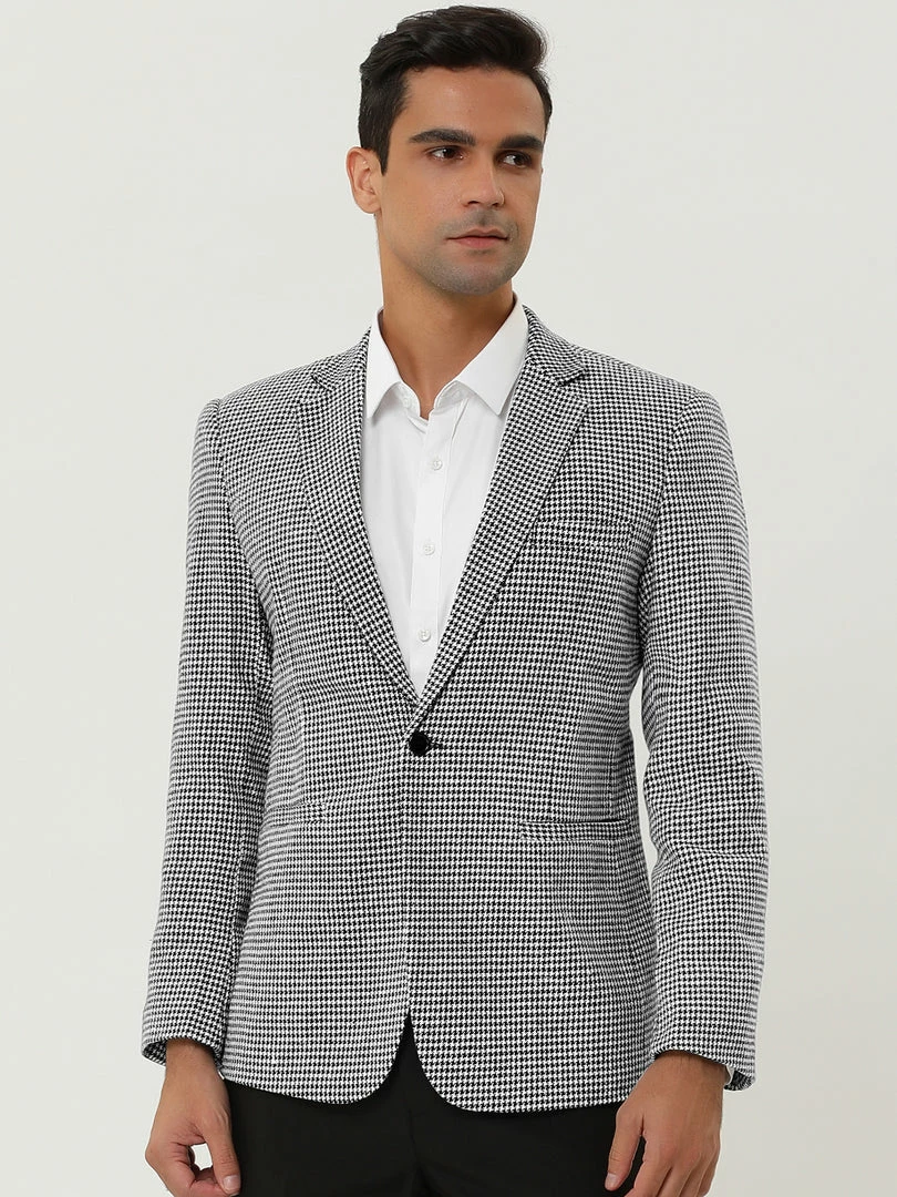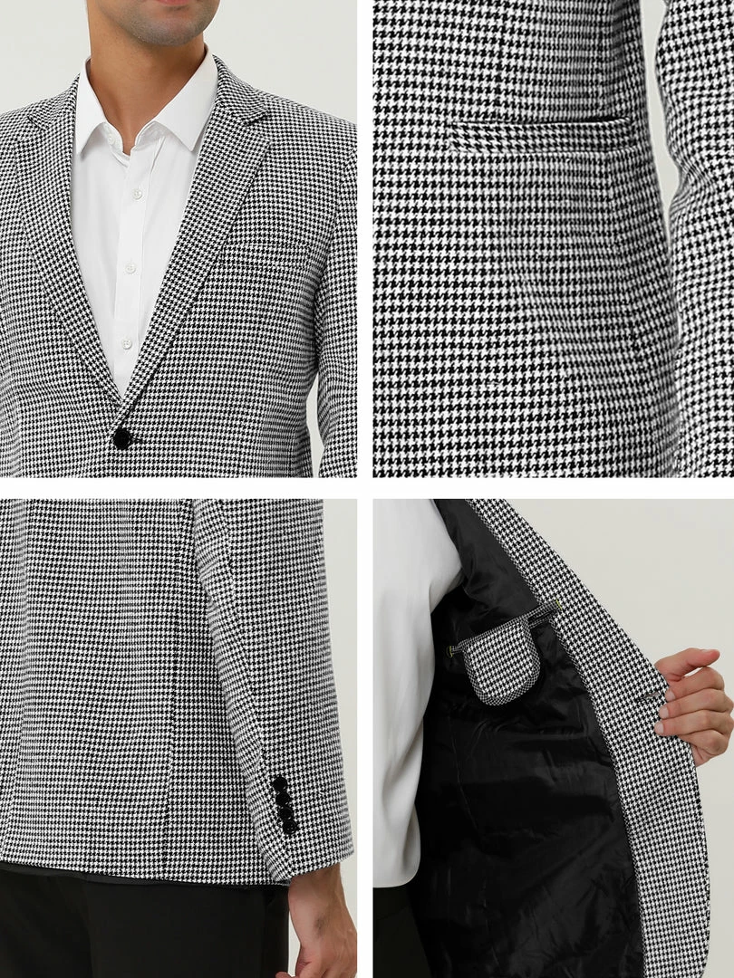 Allegra K Men’s Casual Plaid Sports Coat Notched Lapel One Button Houndstooth Blazer