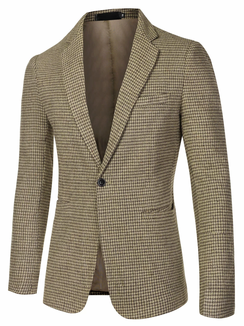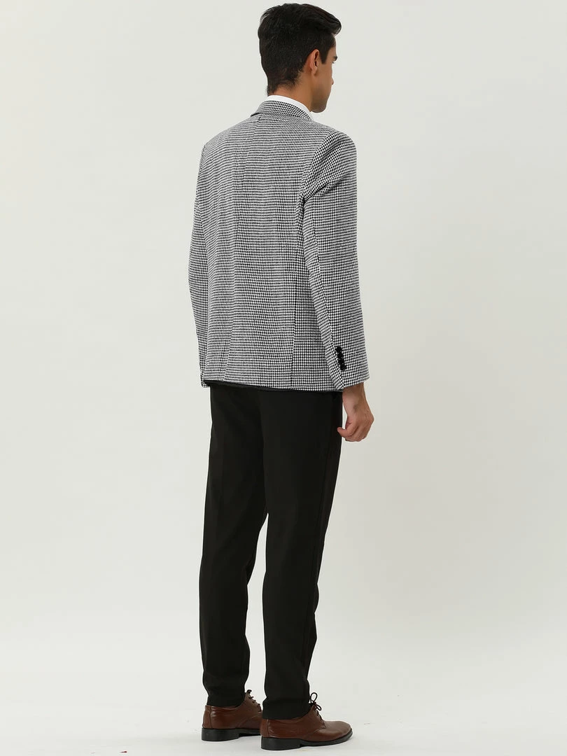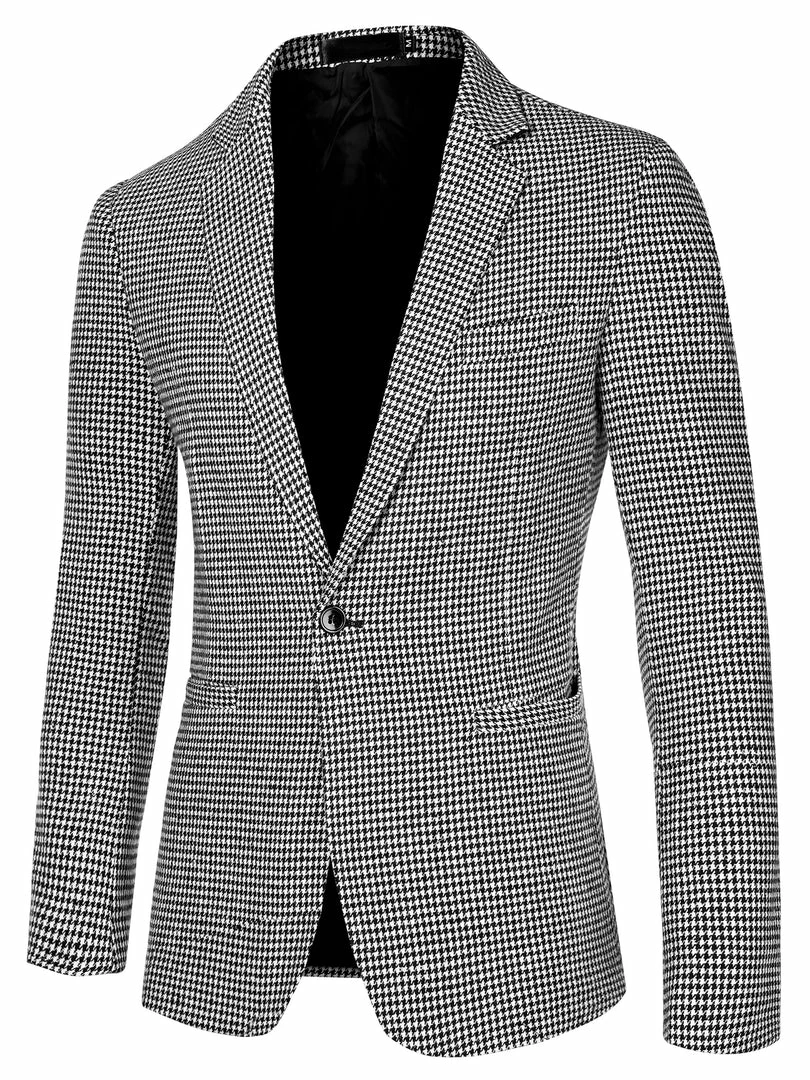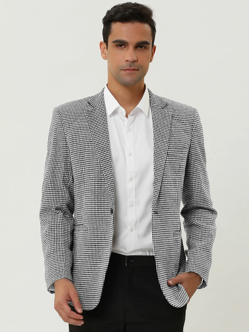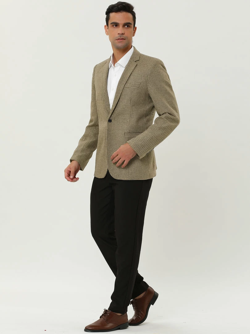 Allegra K Men’s Casual Plaid Sports Coat Notched Lapel One Button Houndstooth Blazer