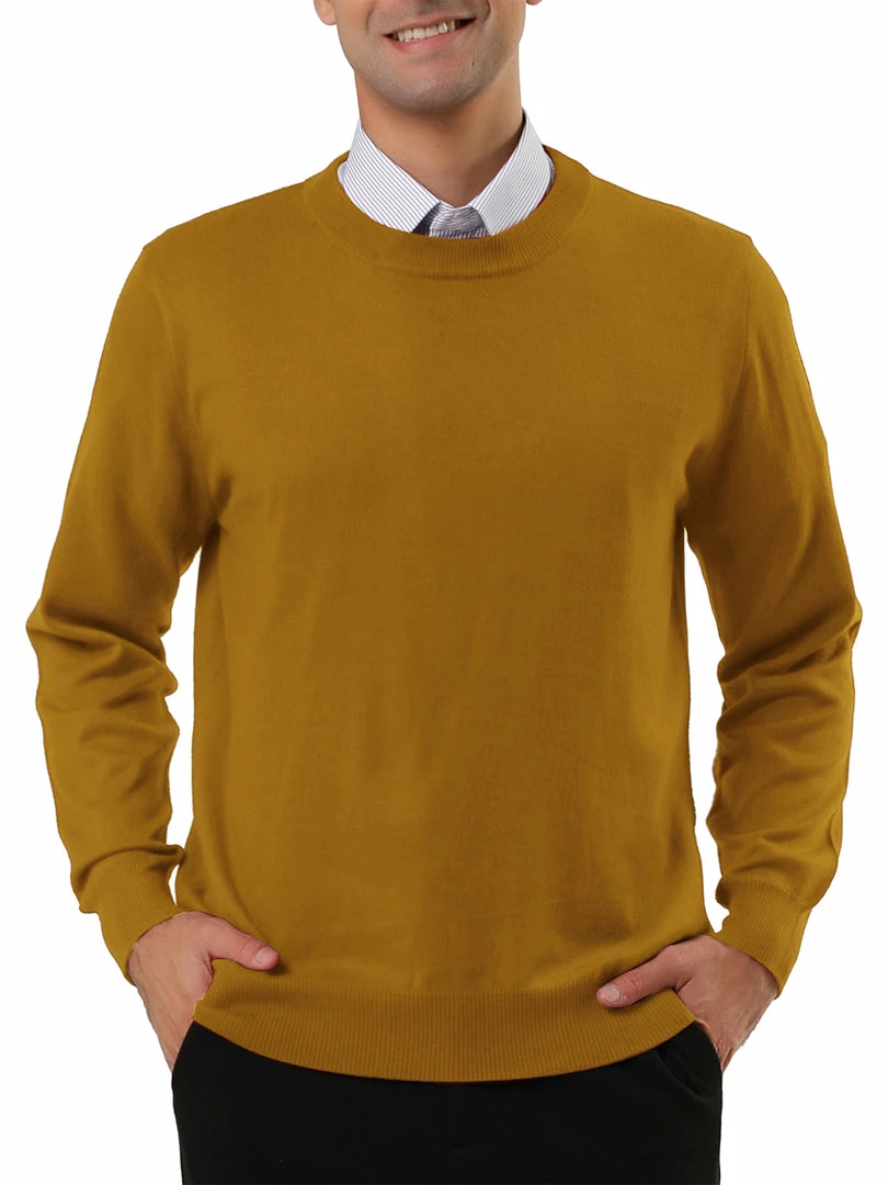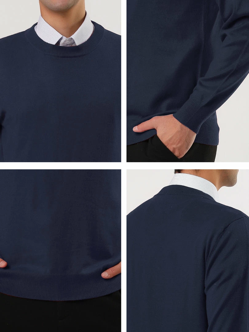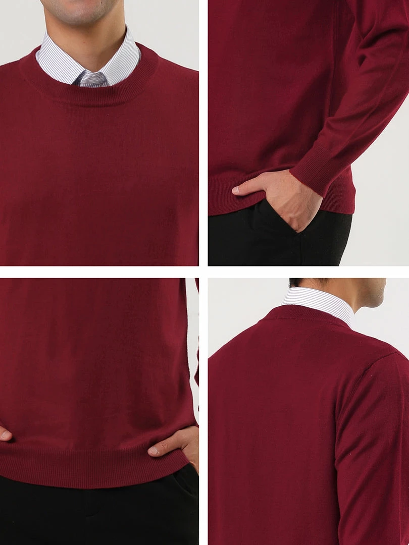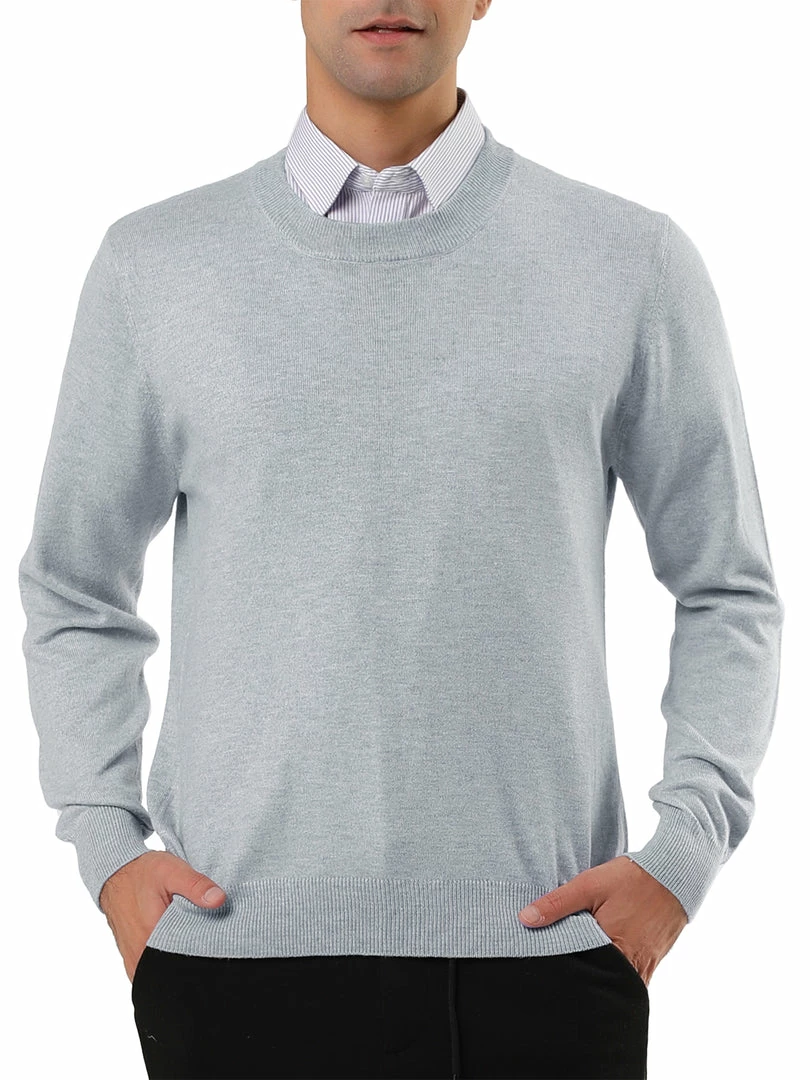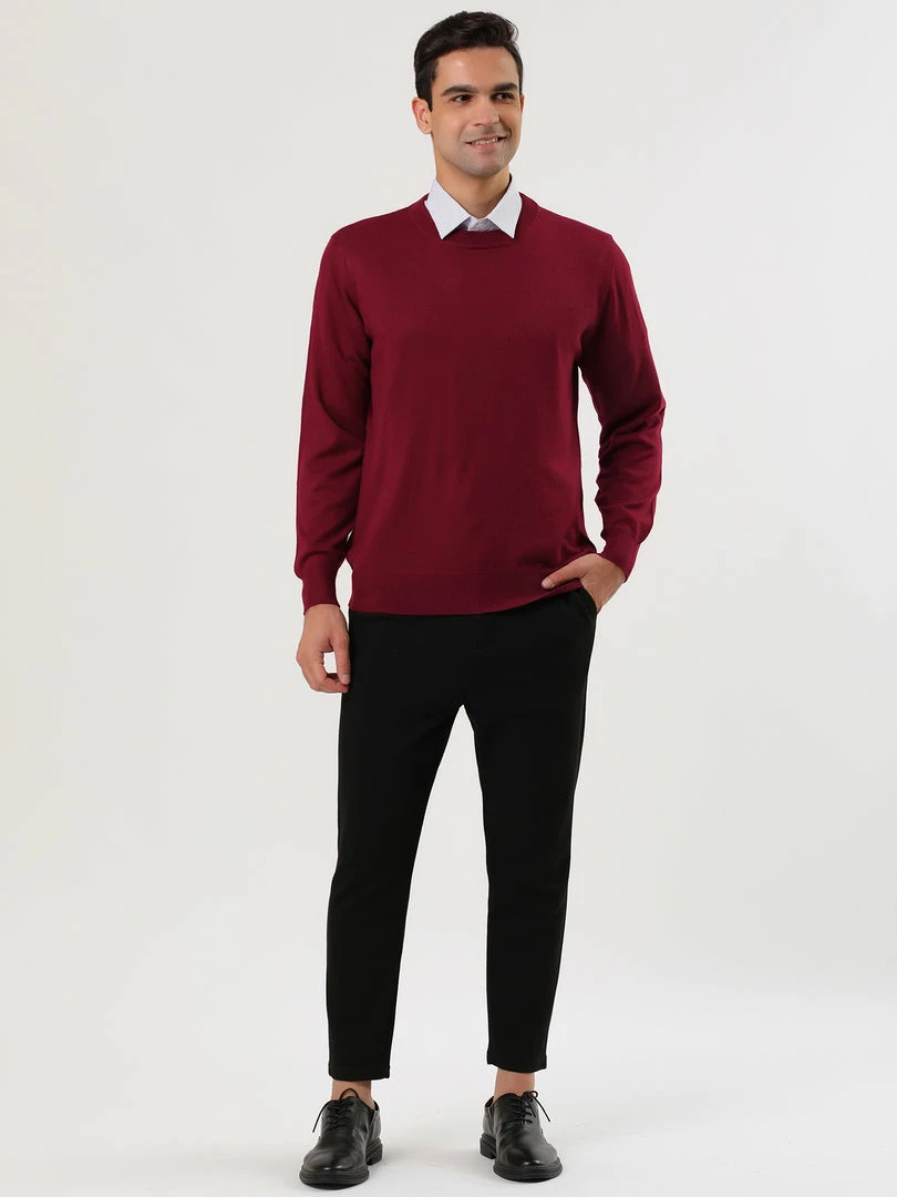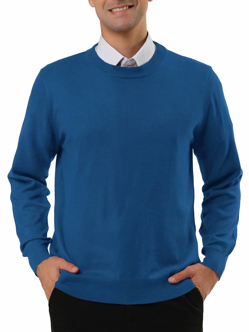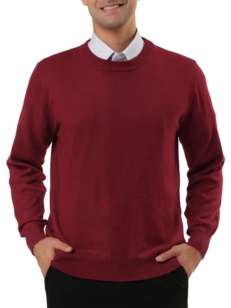 Allegra K Men’s Casual Round Neck Long Sleeves Solid Color Knitted Pullover Sweater