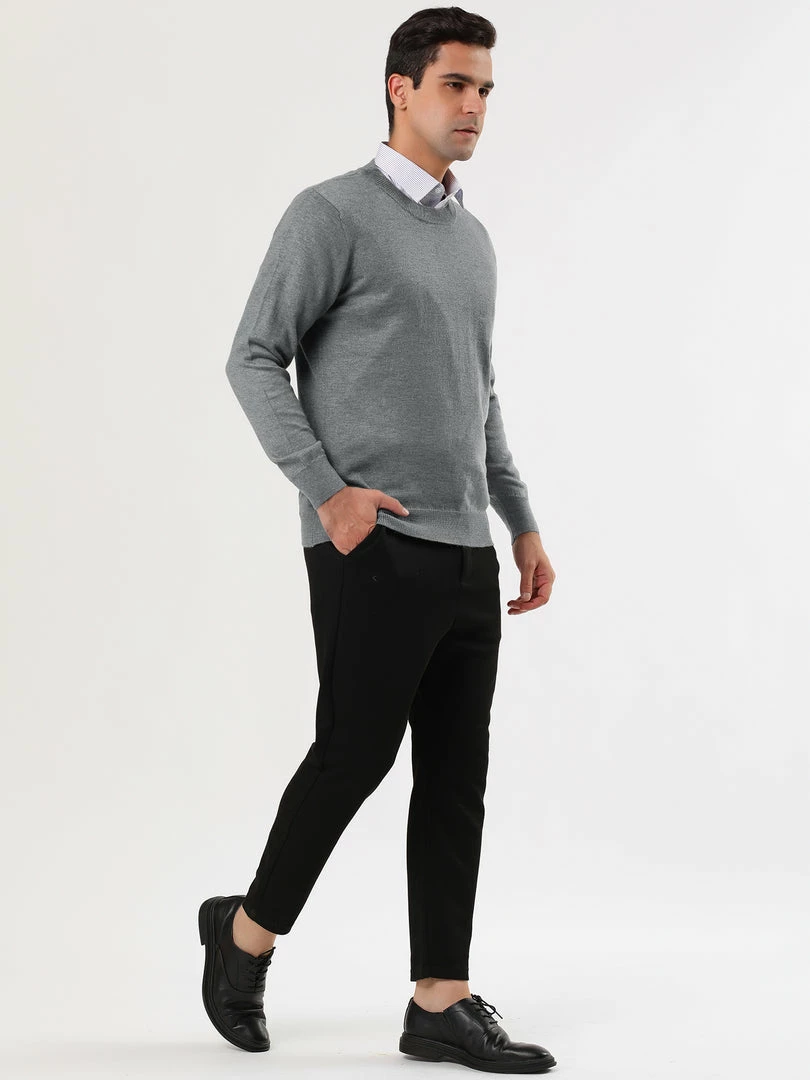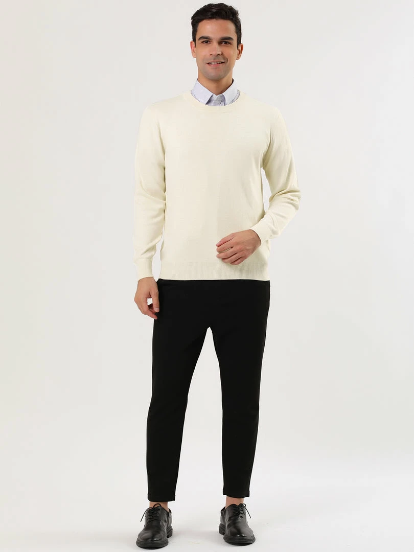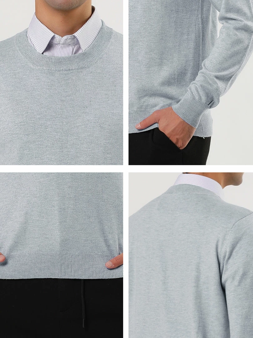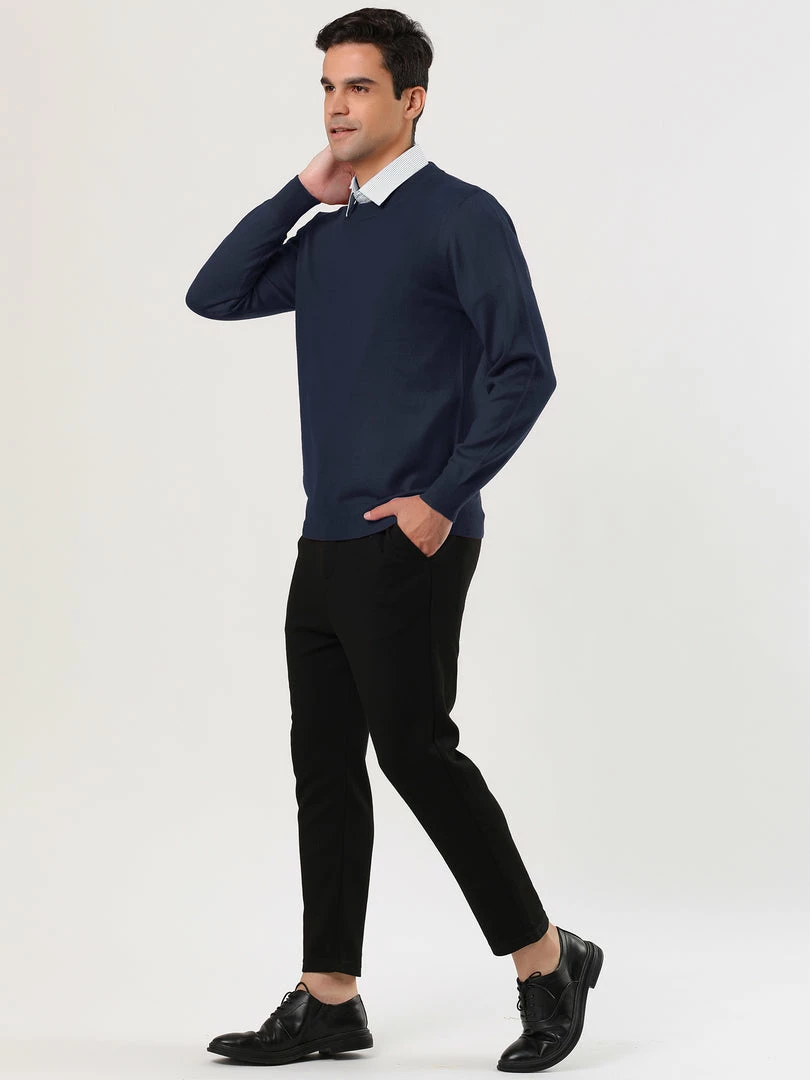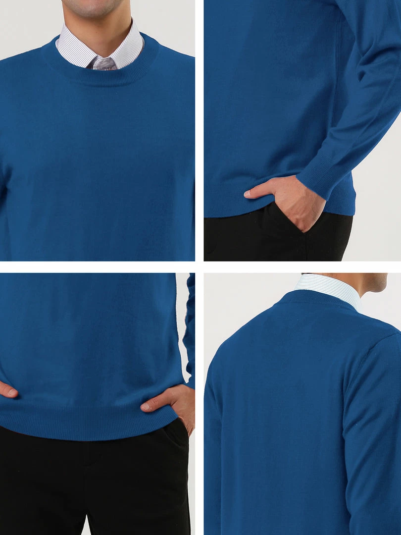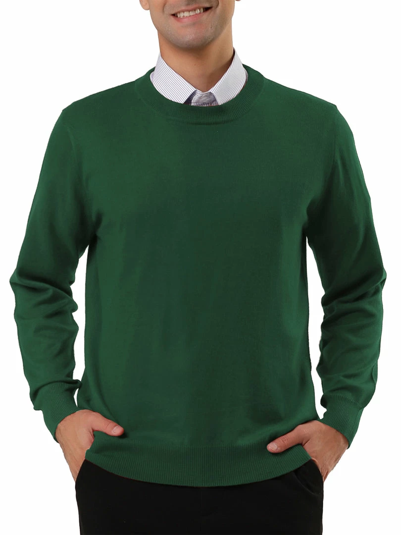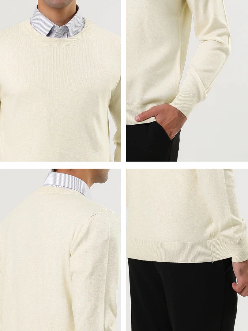 Allegra K Men’s Casual Round Neck Long Sleeves Solid Color Knitted Pullover Sweater