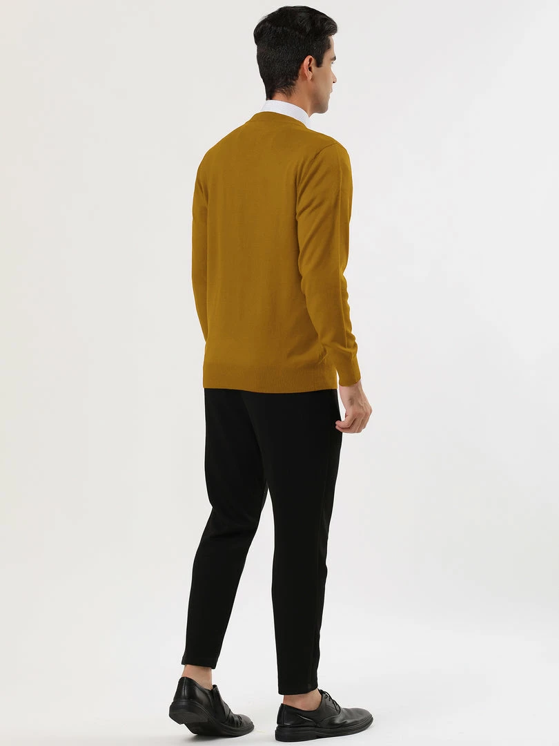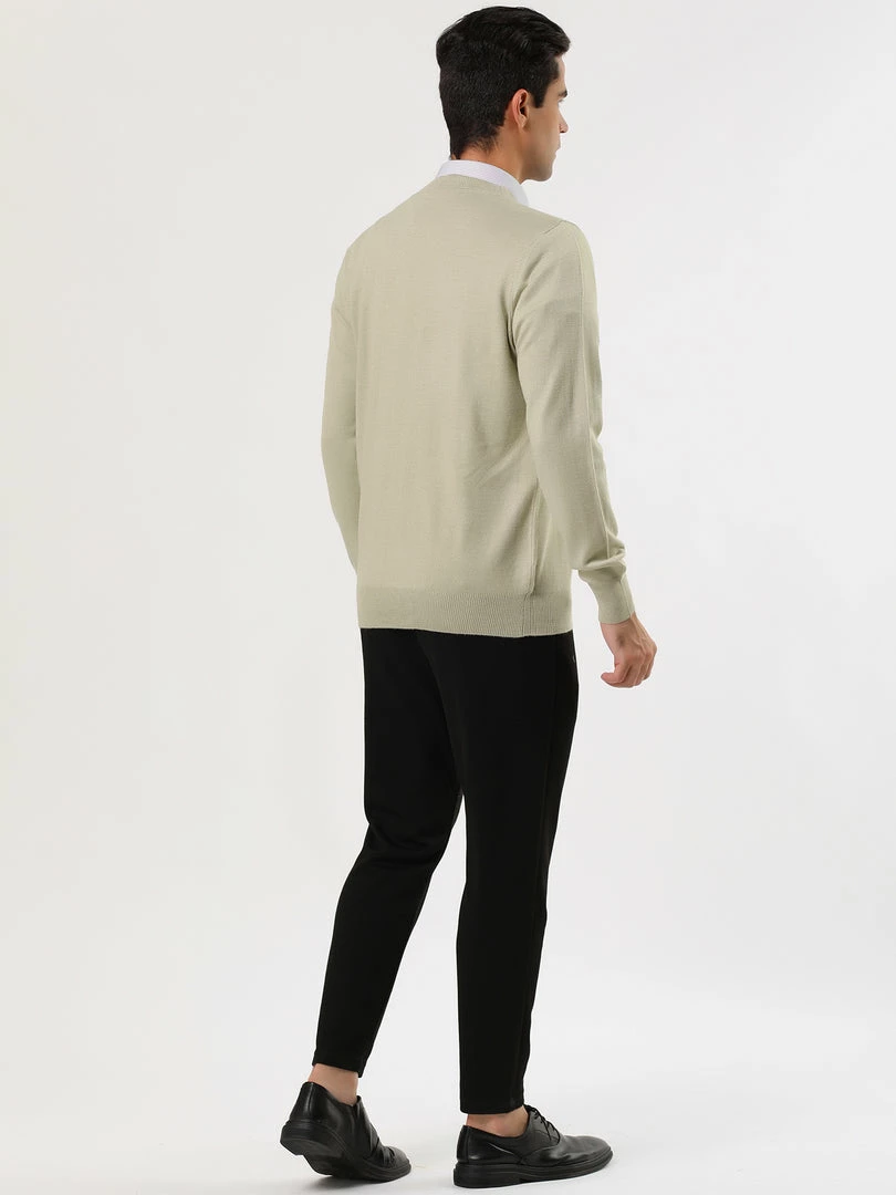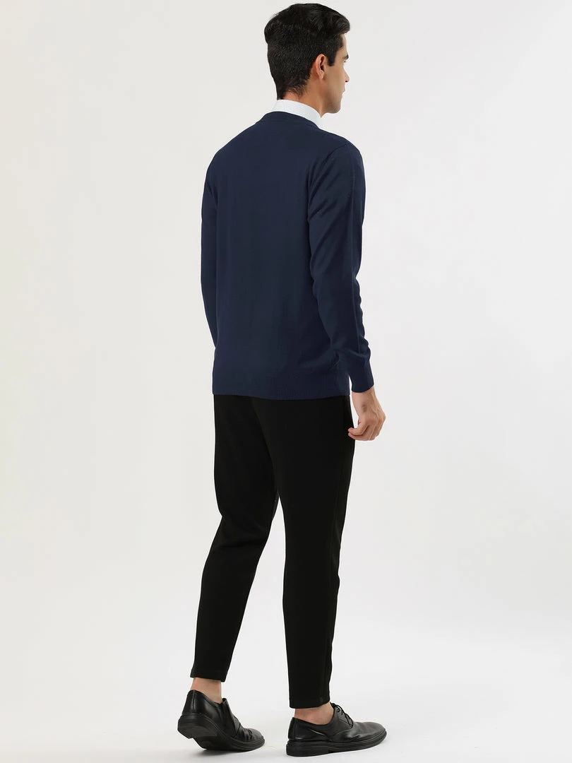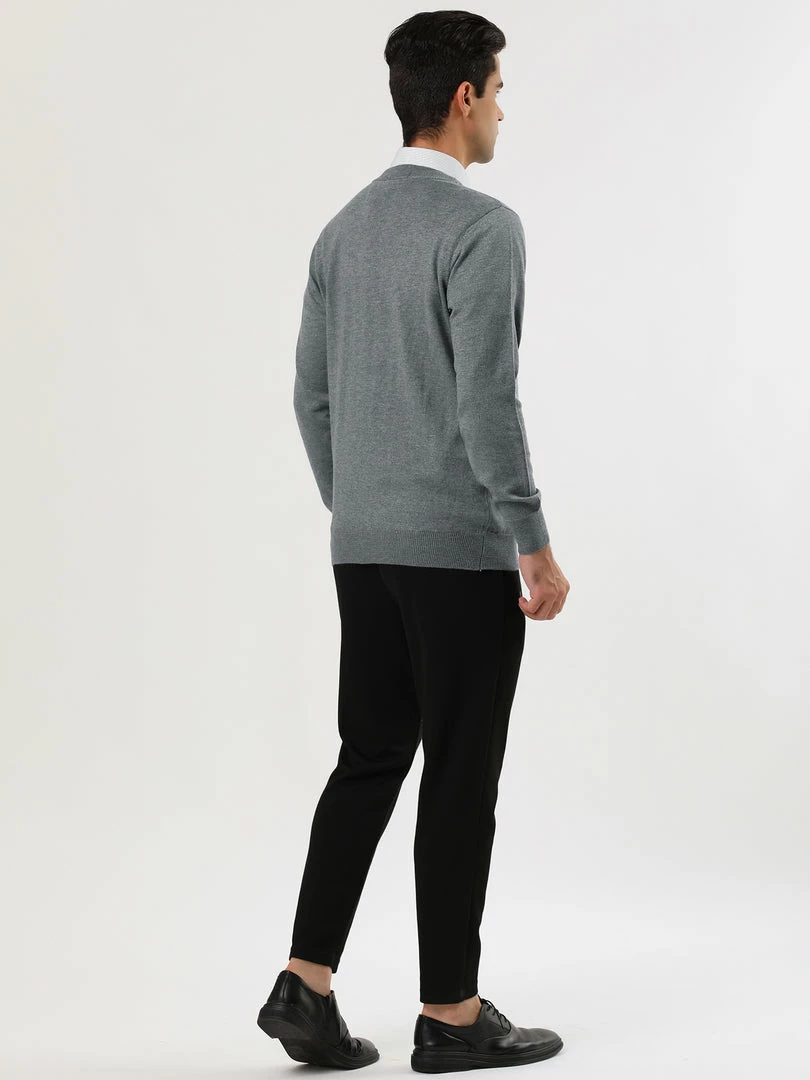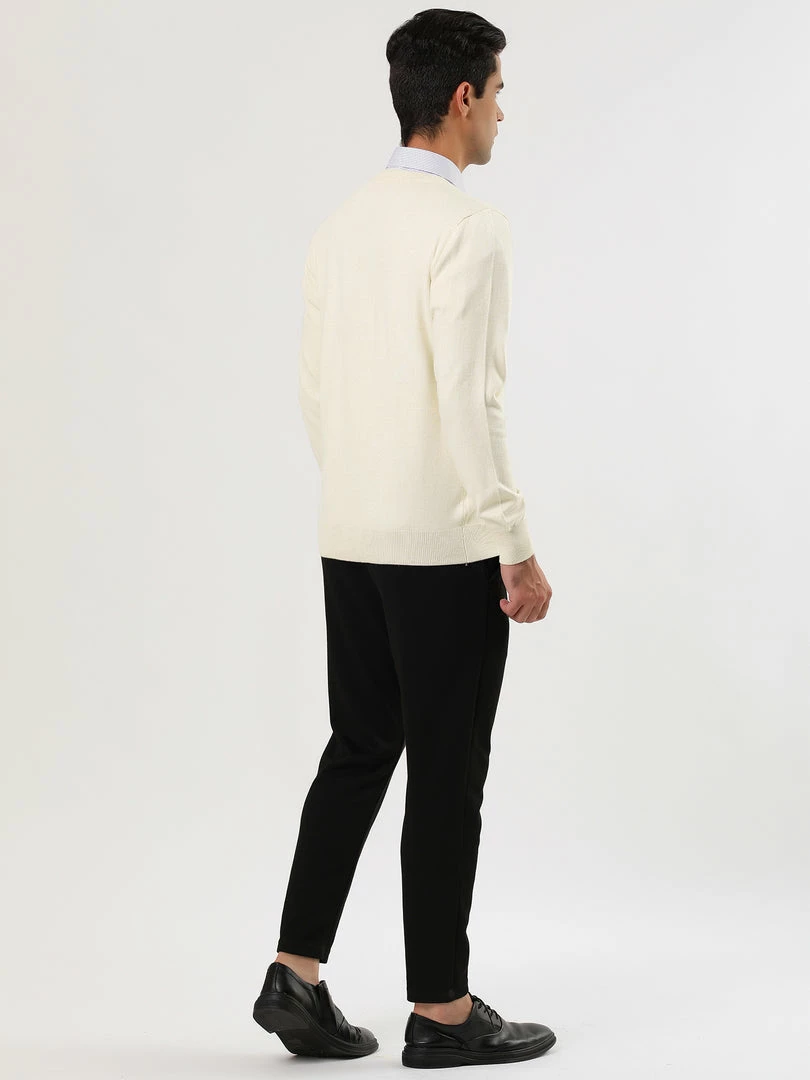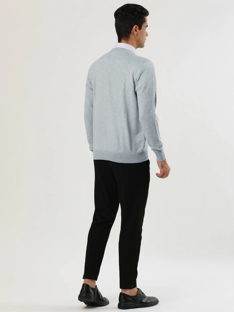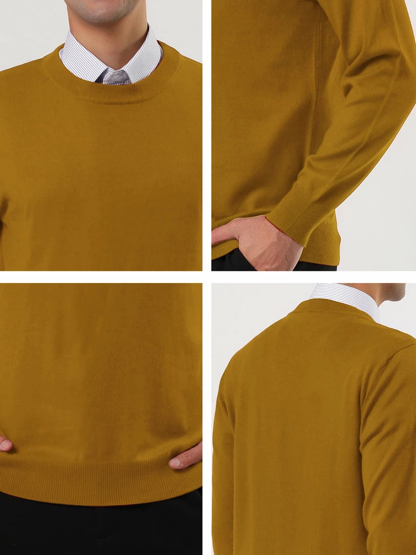 Allegra K Men’s Casual Round Neck Long Sleeves Solid Color Knitted Pullover Sweater