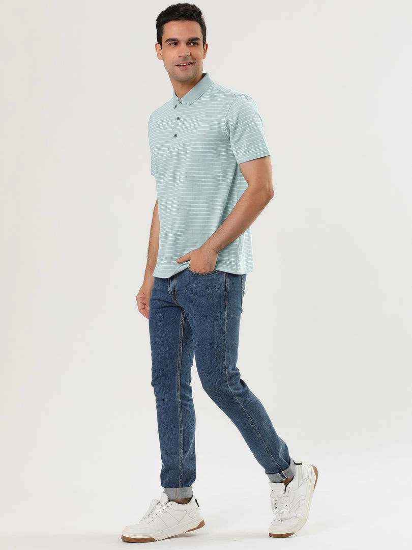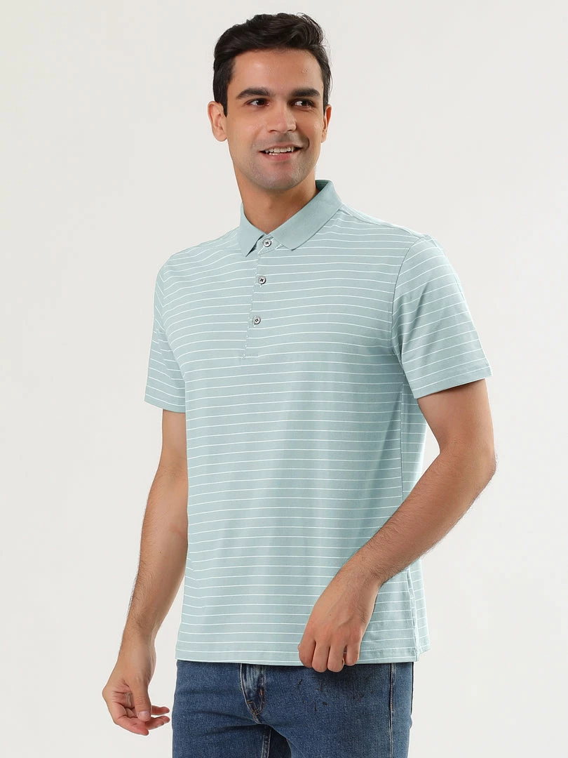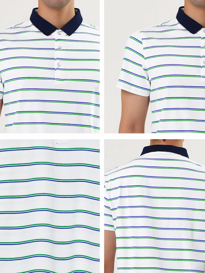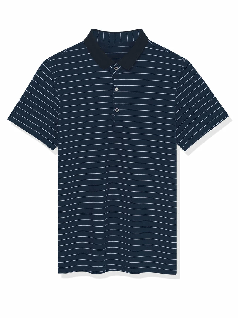 - The Polo boasts a lightweight, breathable, moisture-wicking stretch performance fabrication with a stripe pattern throughout.