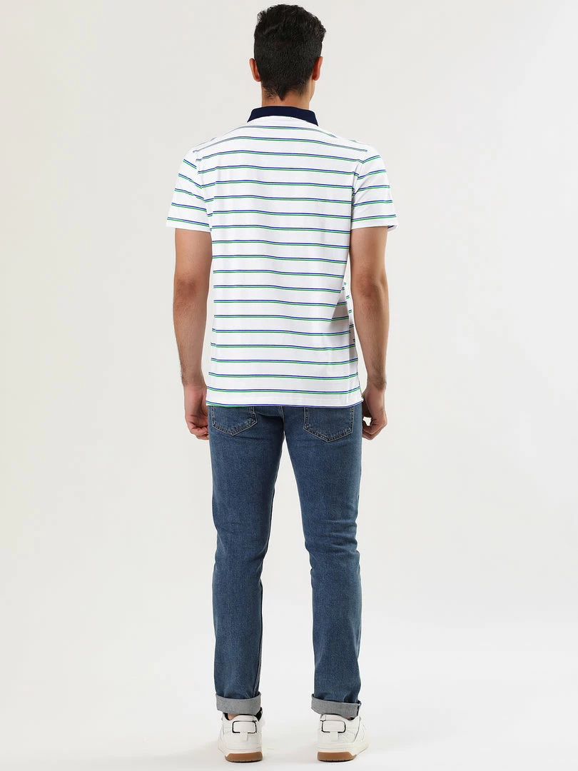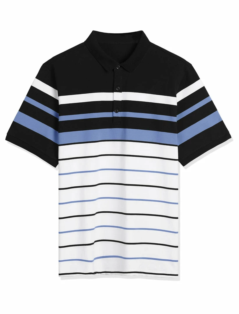 Allegra K Men’s Casual Striped Polo Golf Short Sleeves Color Block Polo Shirt