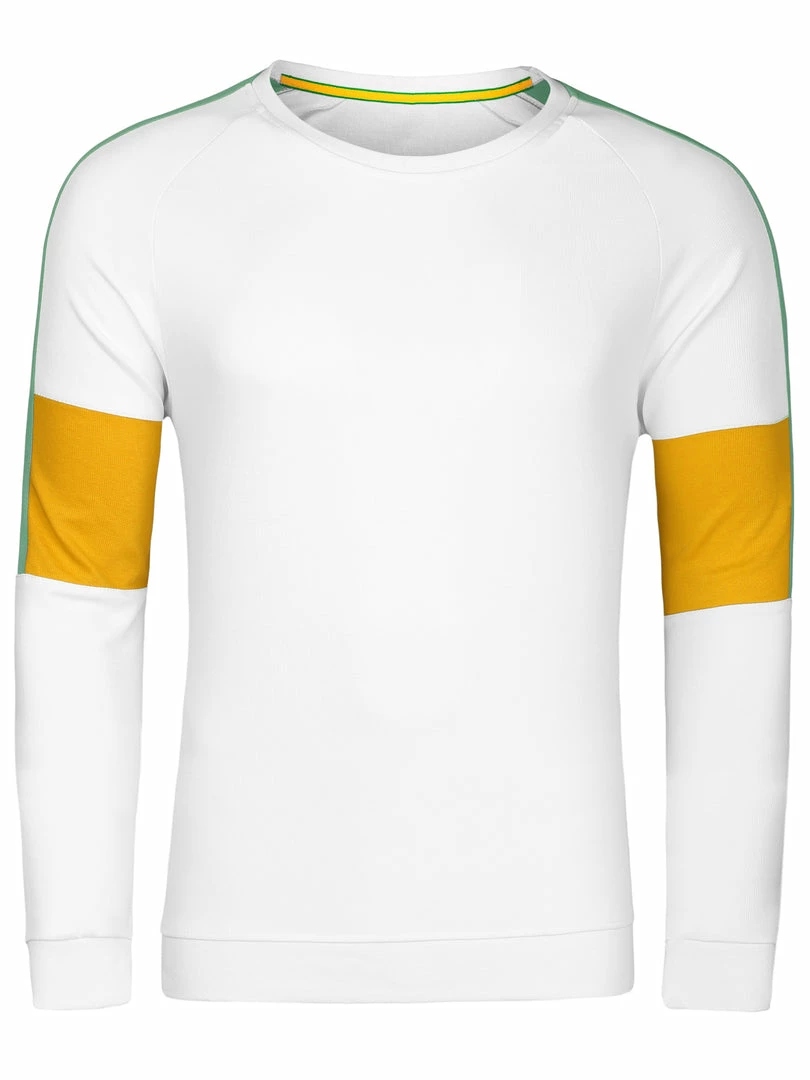 - Long sleeves, elastic ribbing at the cuffs.