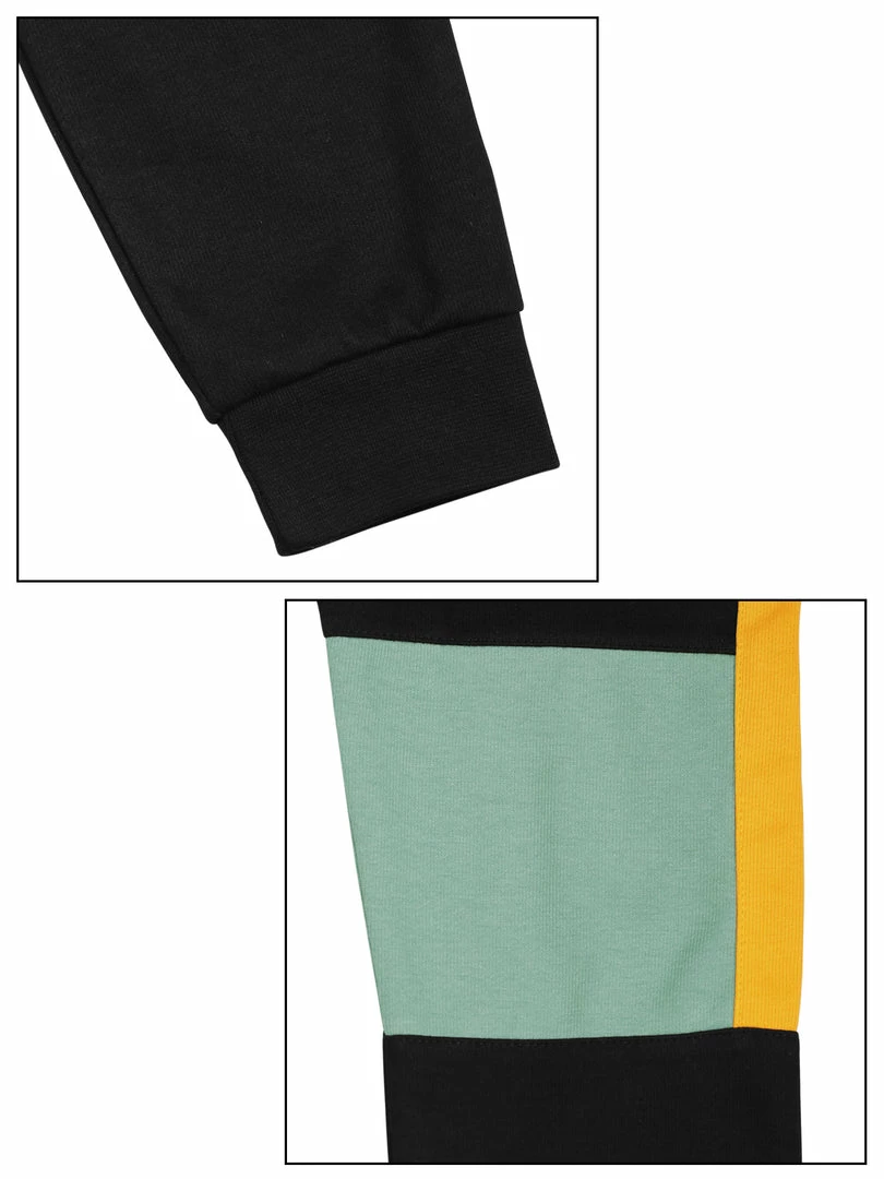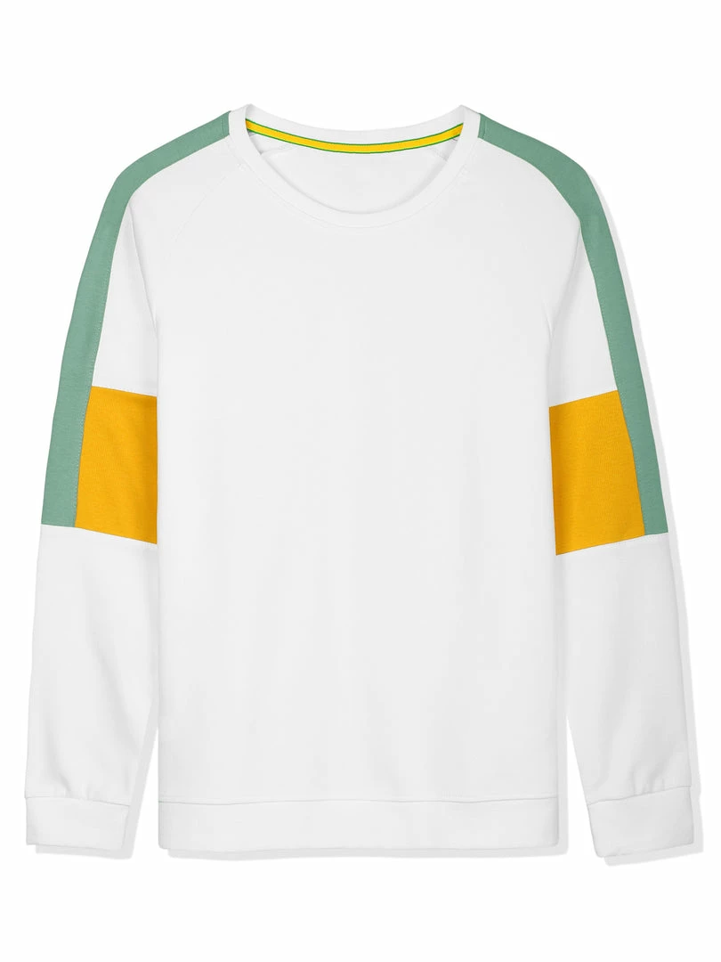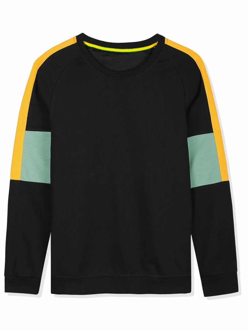 - Long sleeves, round neck, color block design, ribbed hem.