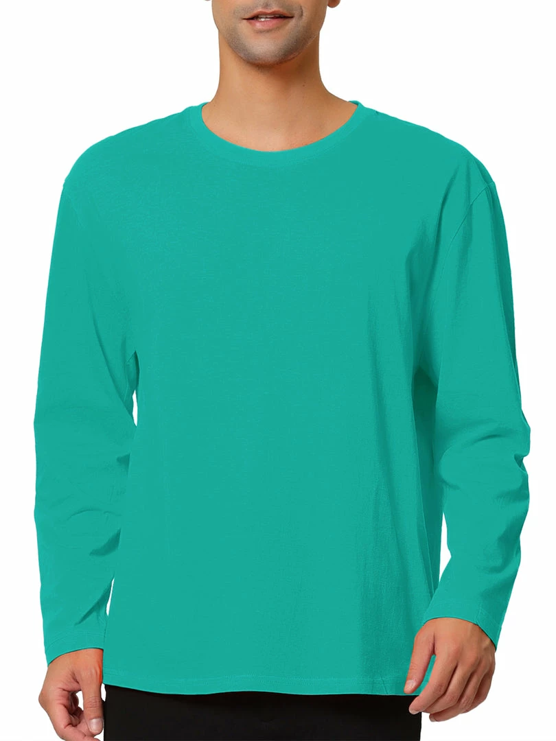 Allegra K Men’s Cotton Long Sleeves T-Shirt Casual Crew Neck Soft Basic Tee Tops