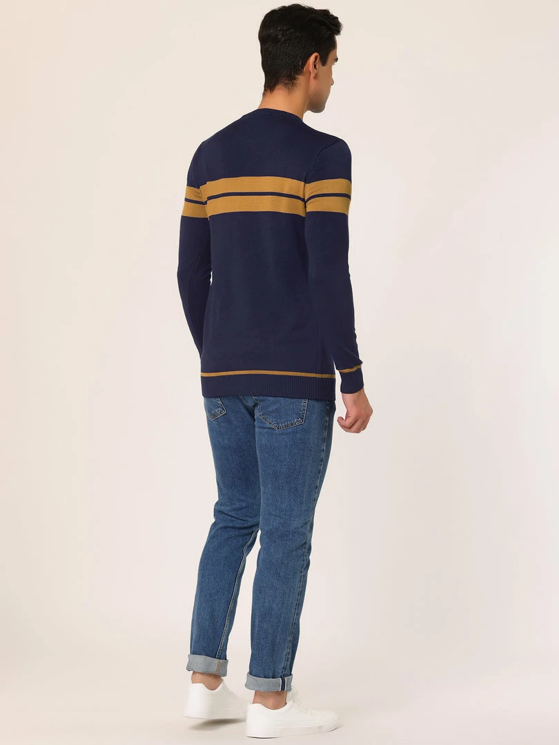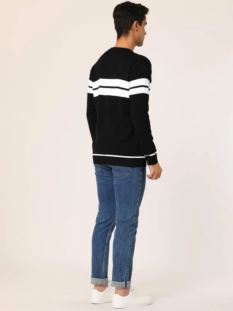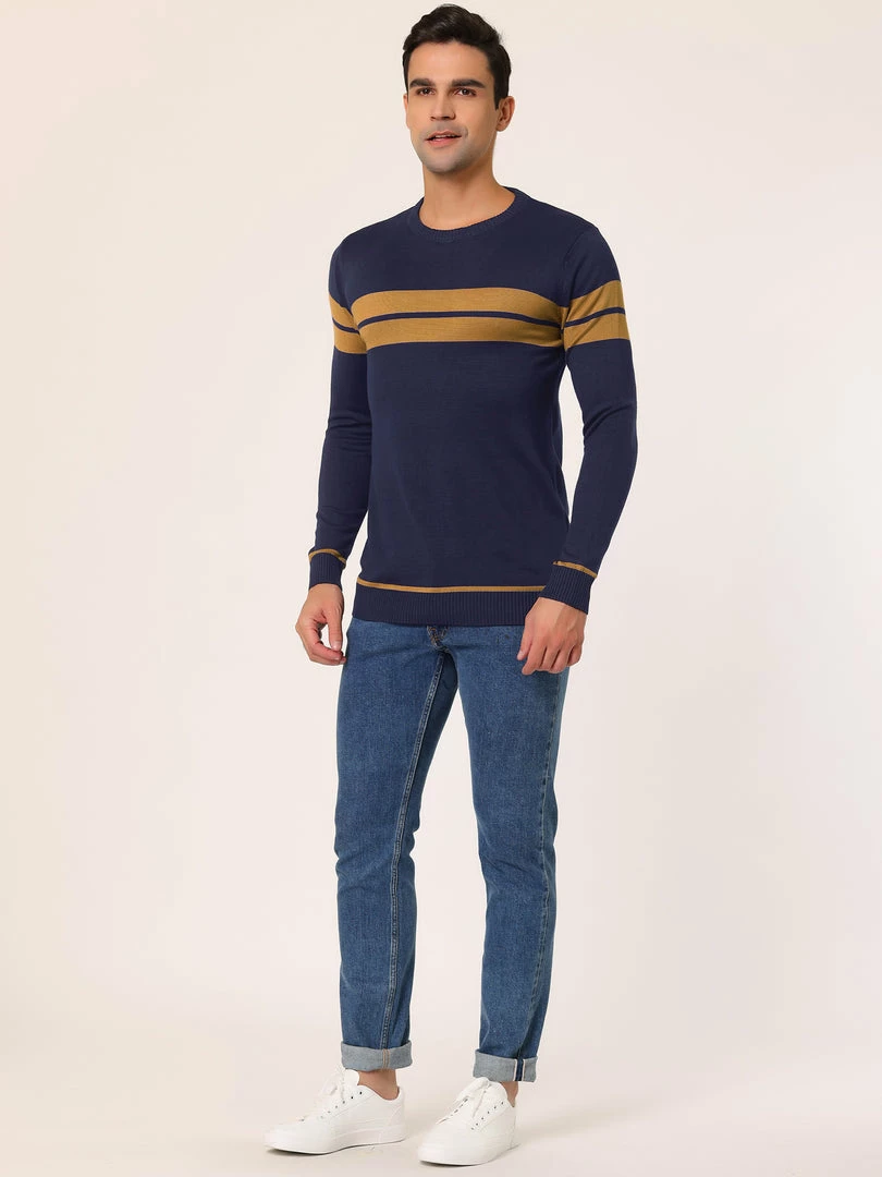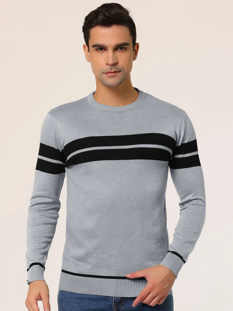 Allegra K Men’s Crew Neck Sweater Casual Long Sleeves Color Block Knitted Pullover Sweaters