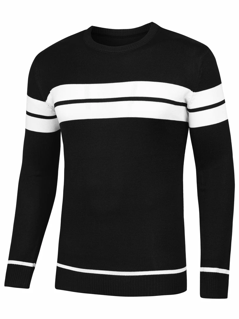 The classic color block sweater is a good choice to create a stylish outfit, making your confidence visible.
