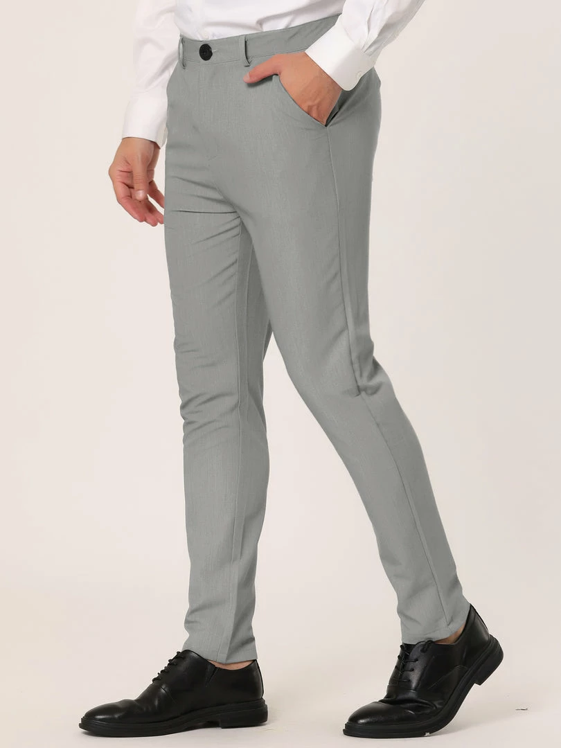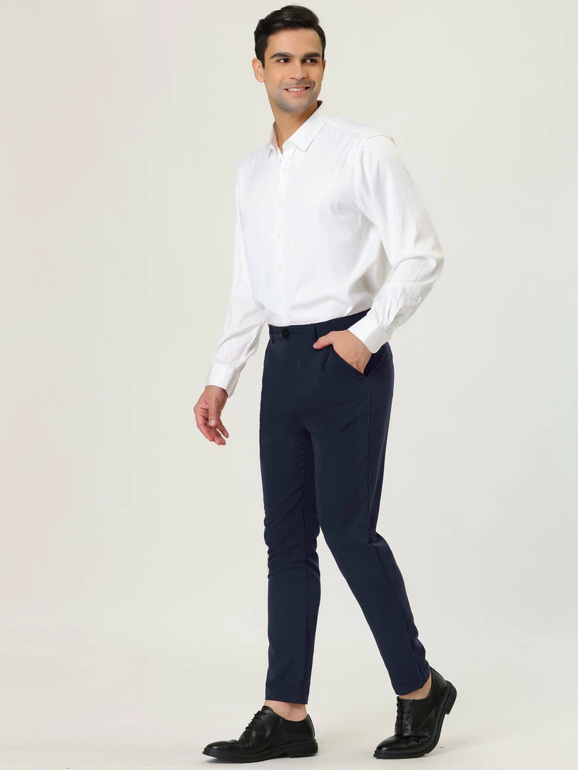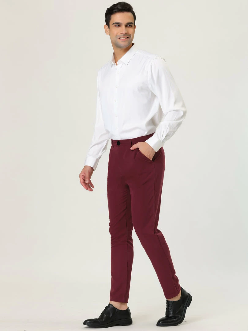 Allegra K Men’s Dress Chino Slim Fit Stretch Flat Front Solid Color Business Pants