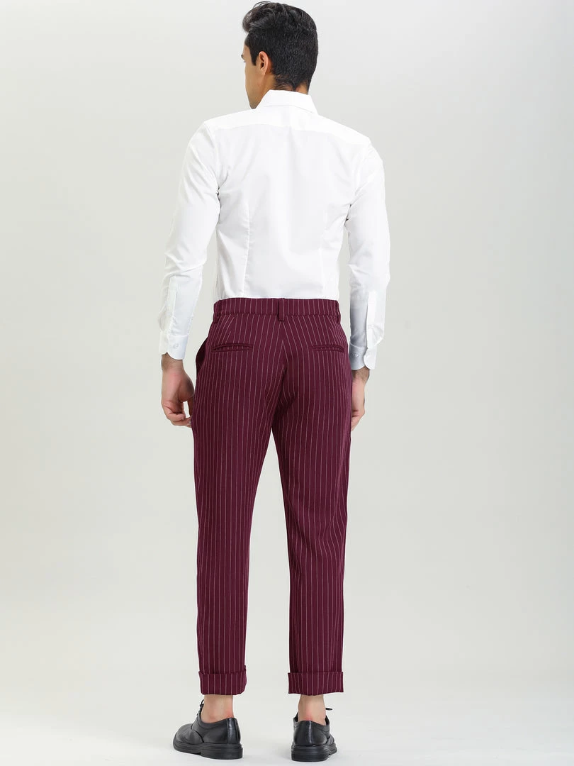 Allegra K Men’s Dress Pants Slim Fit Vertical Stripes Flat Front Chino Pants Trousers
