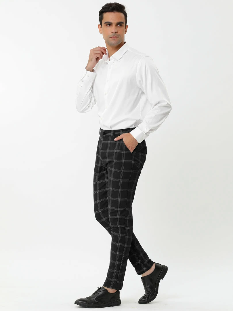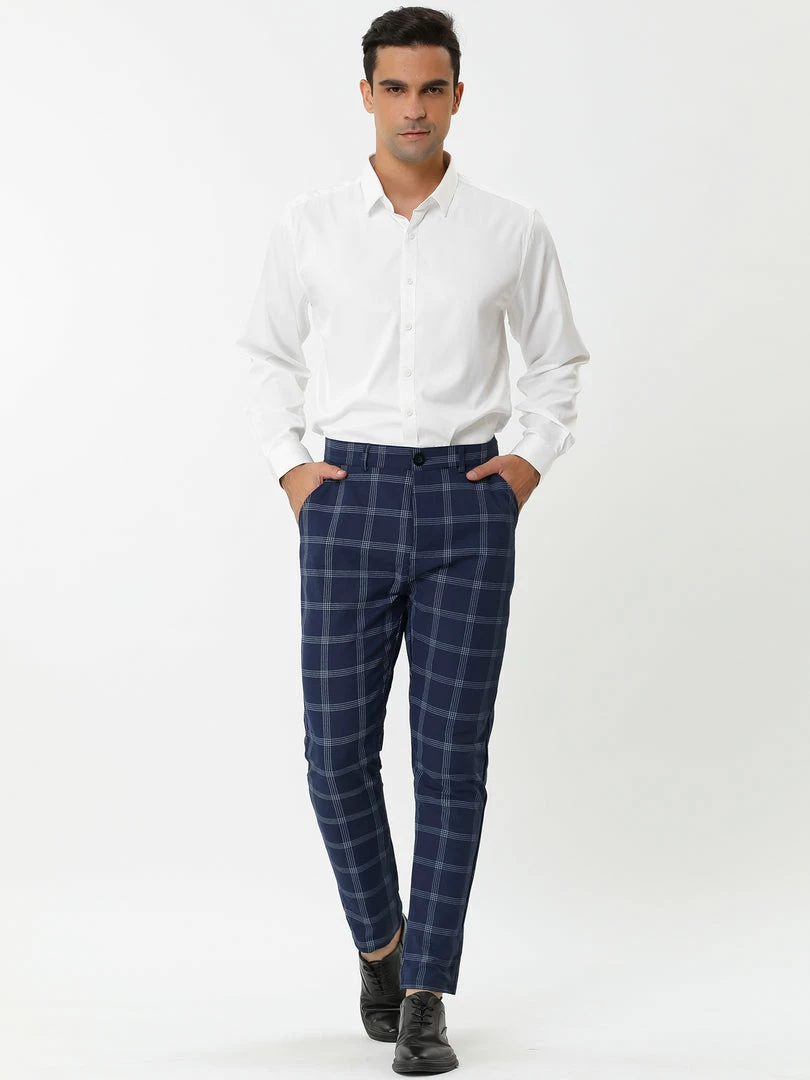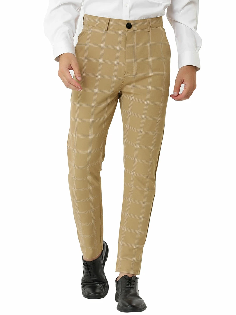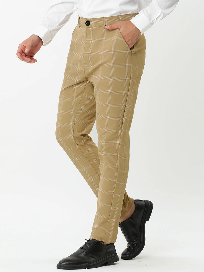Allegra K Men’s Dress Plaid Slim Fit Flat Front Business Pencil Pants With Pockets