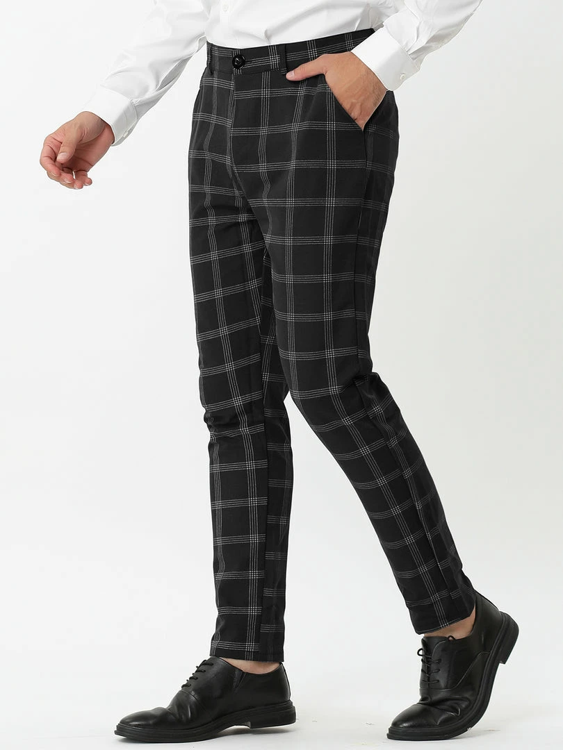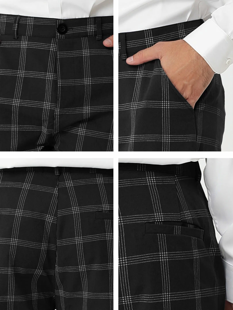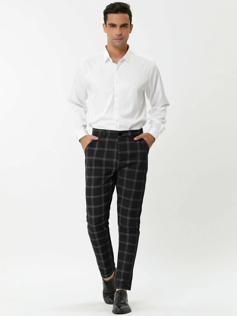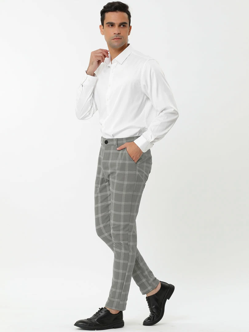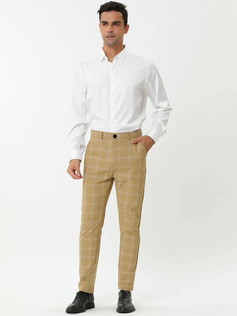Allegra K Men’s Dress Plaid Slim Fit Flat Front Business Pencil Pants With Pockets