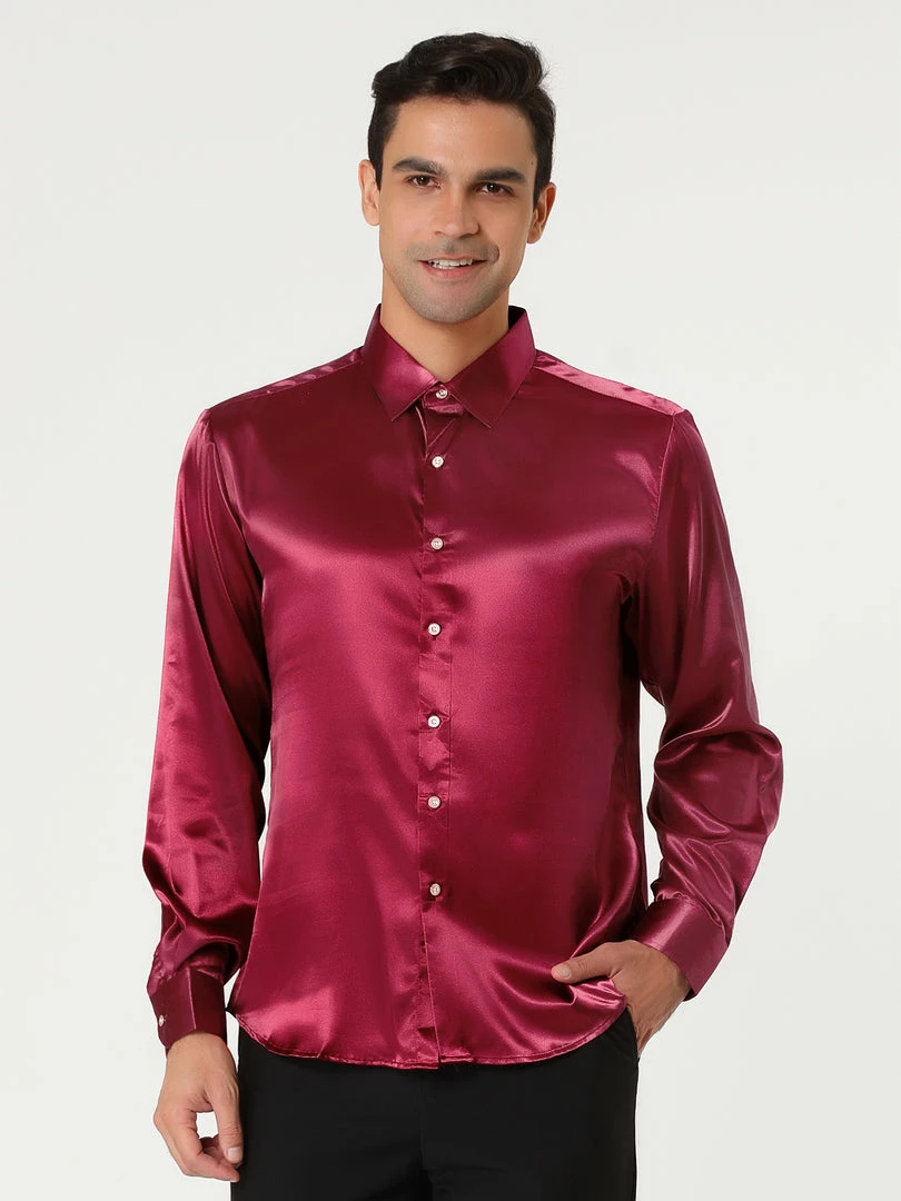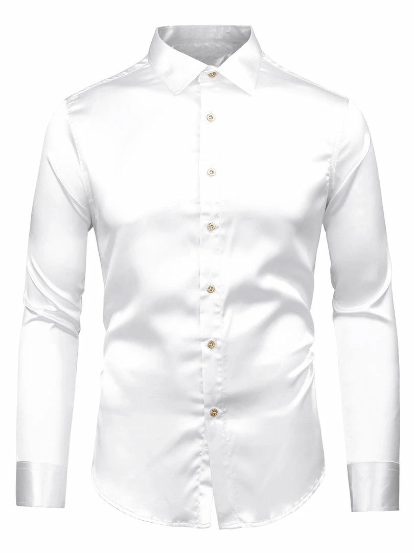 Solid color satin dress shirts with point collar and button down, classic and elegant.