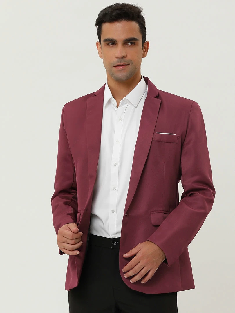 Allegra K Men’s Dress Slim Fit Blazer Single Breasted One Button Business Suit Sports Coat