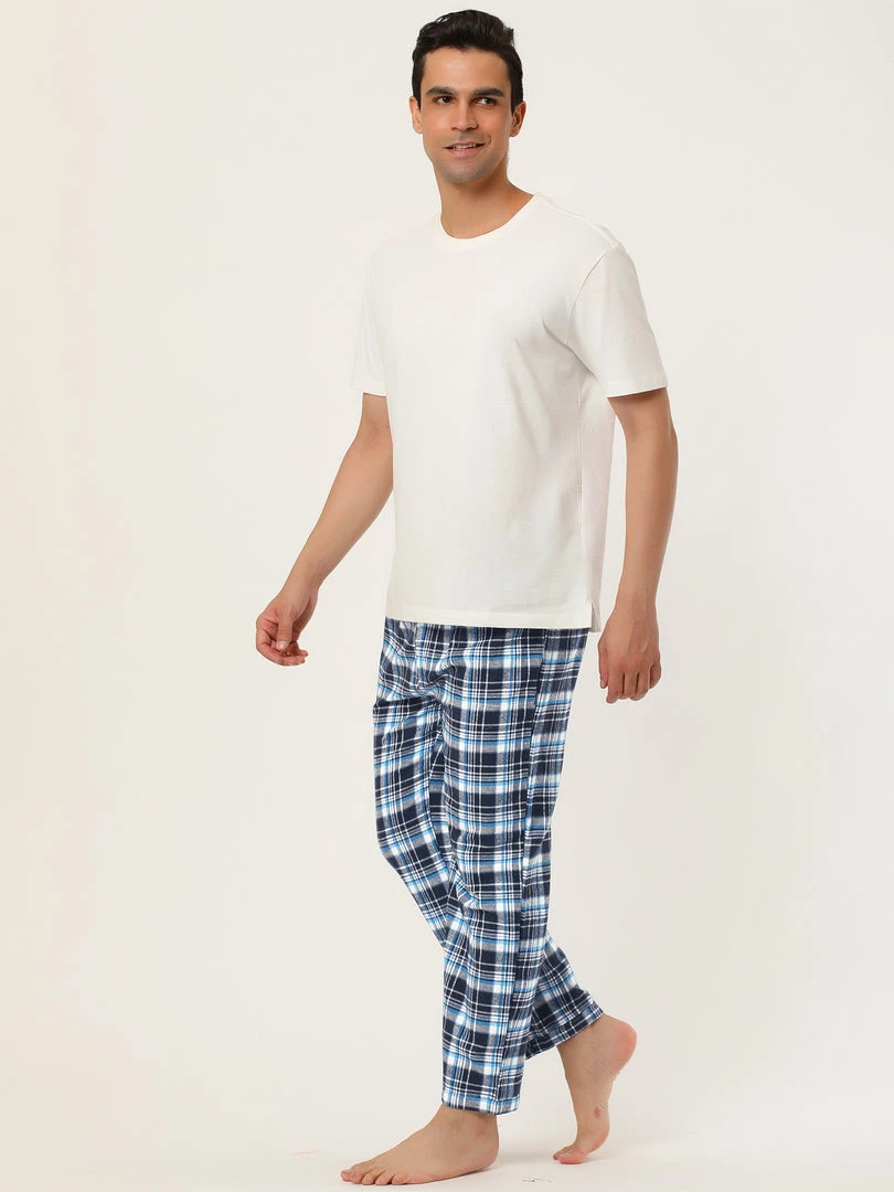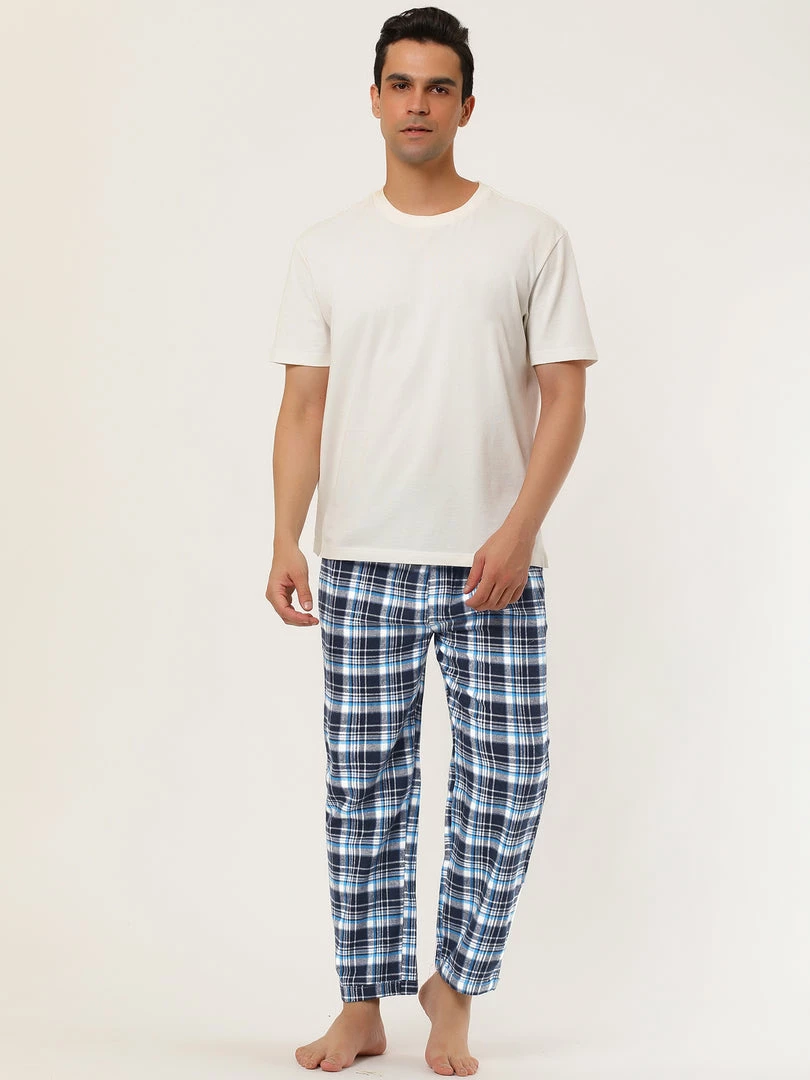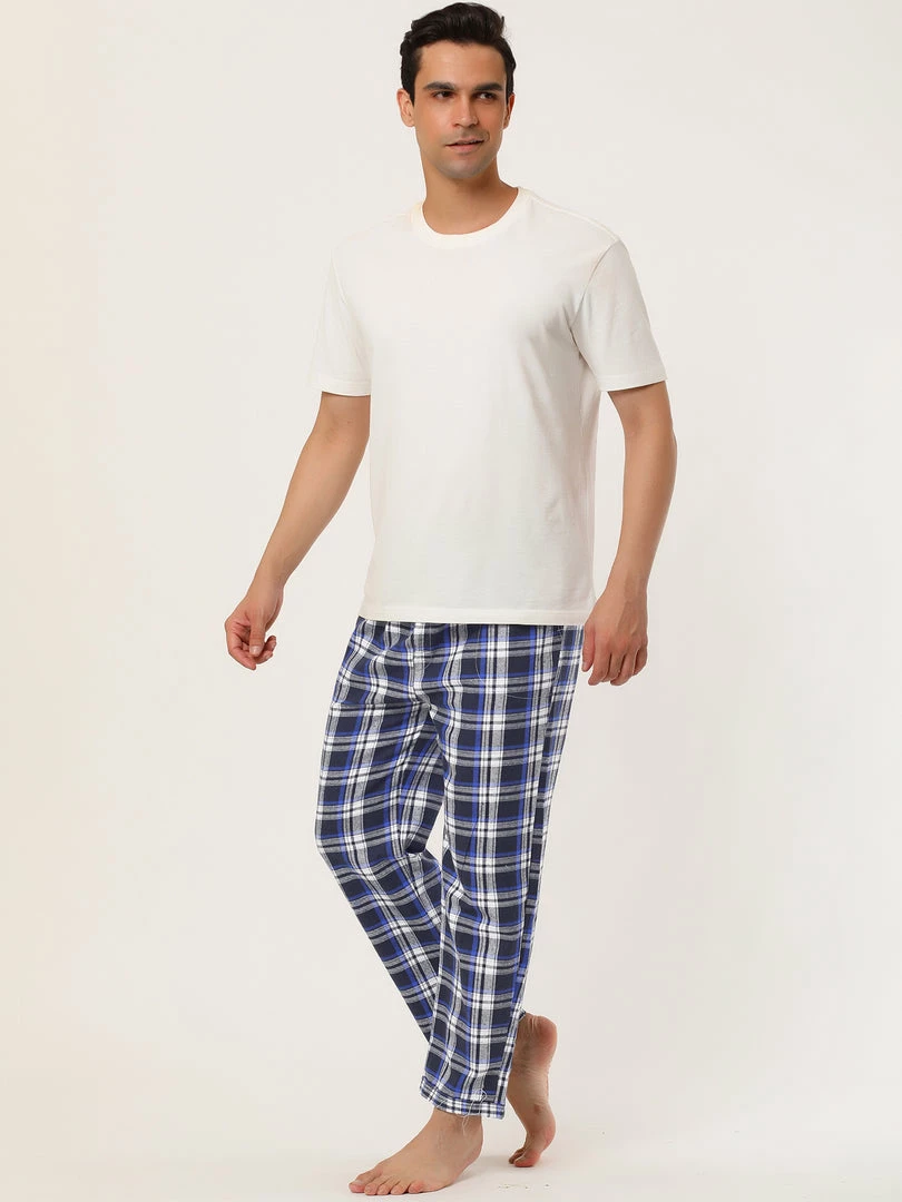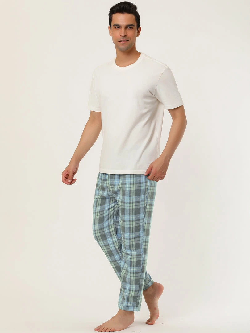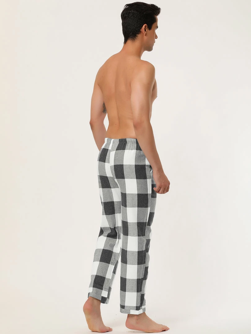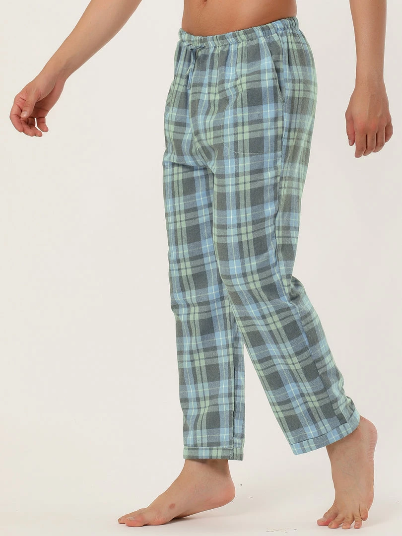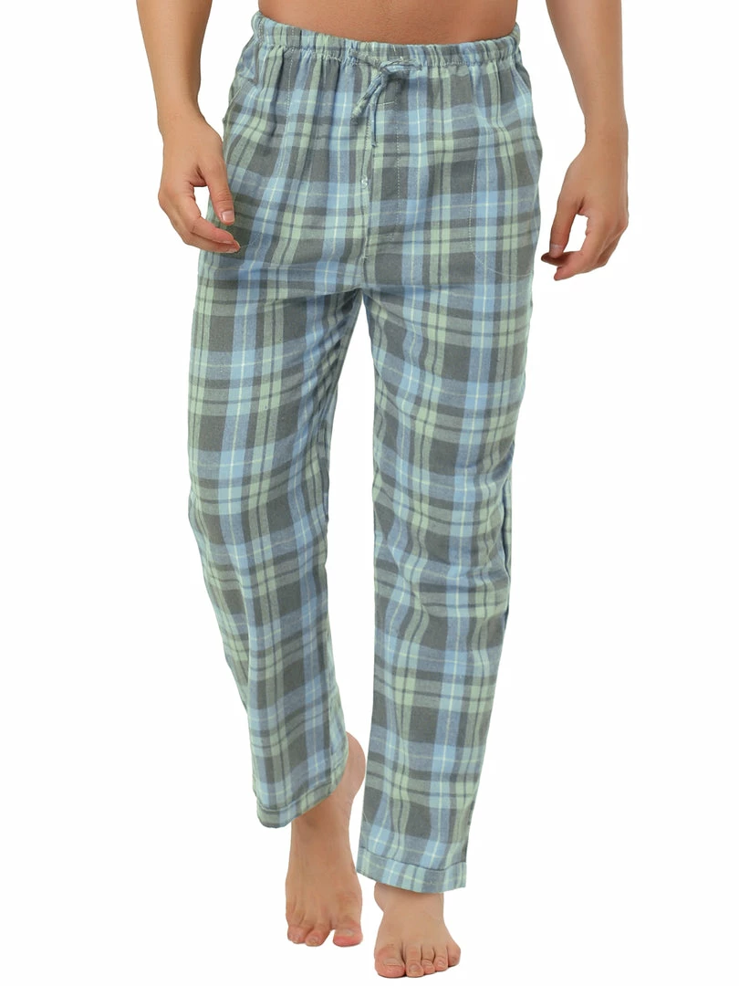 Allegra K Men’s Flannel Plaids Pajamas Pants Drawstring Sleepwear Pjs Pants With Pockets