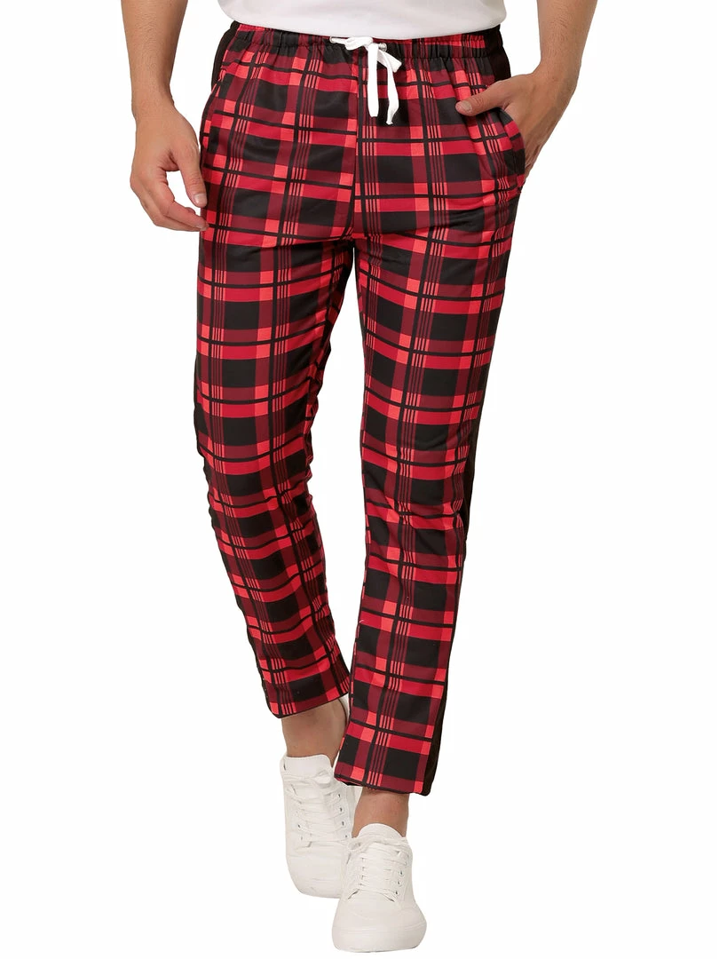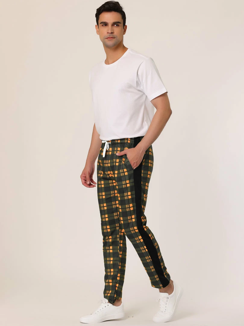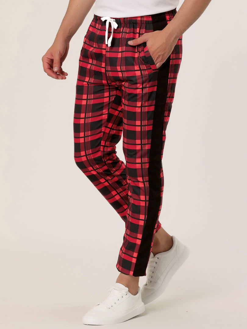 Allegra K Men’s Hip Hop Slim Fit Plaid Track Pants Contrast Color Athletic Jogger Sweatpants