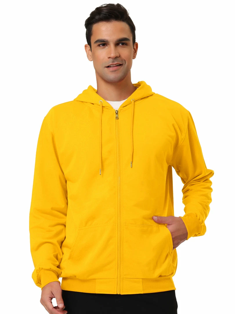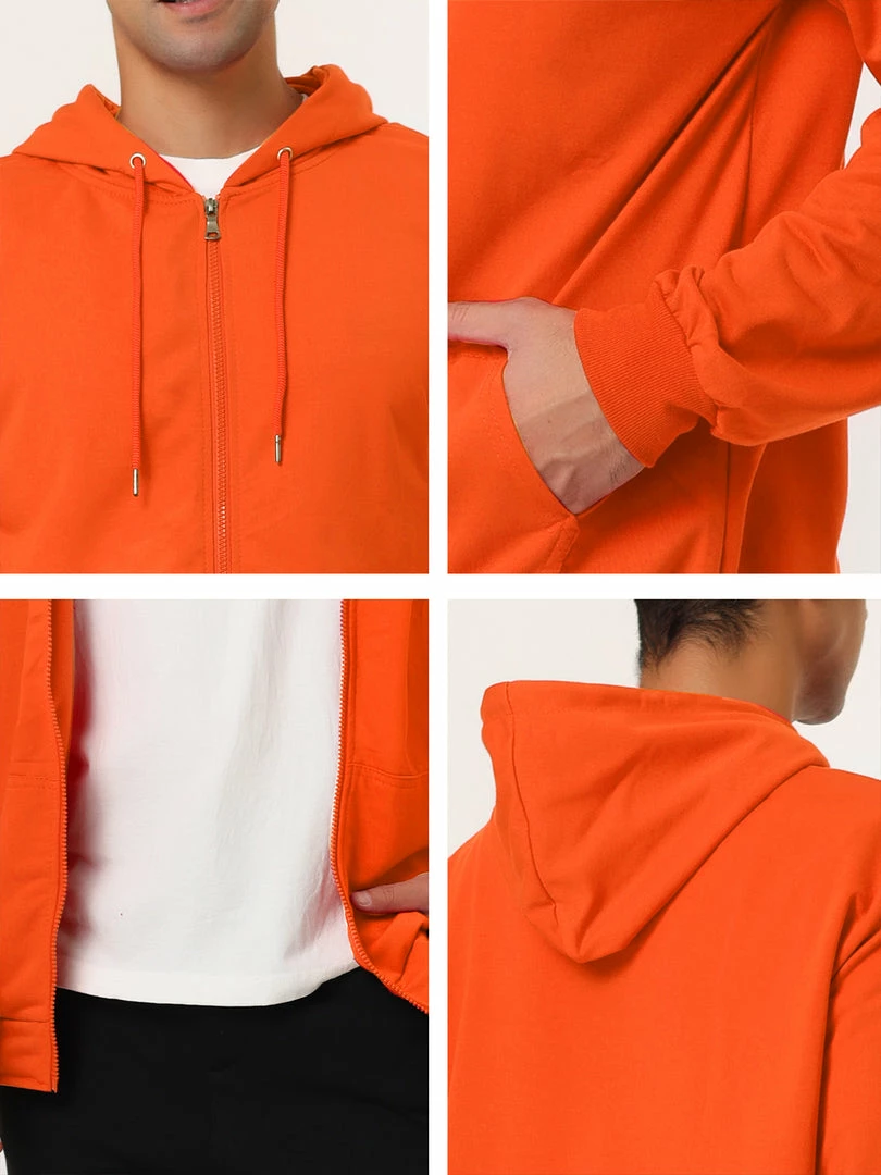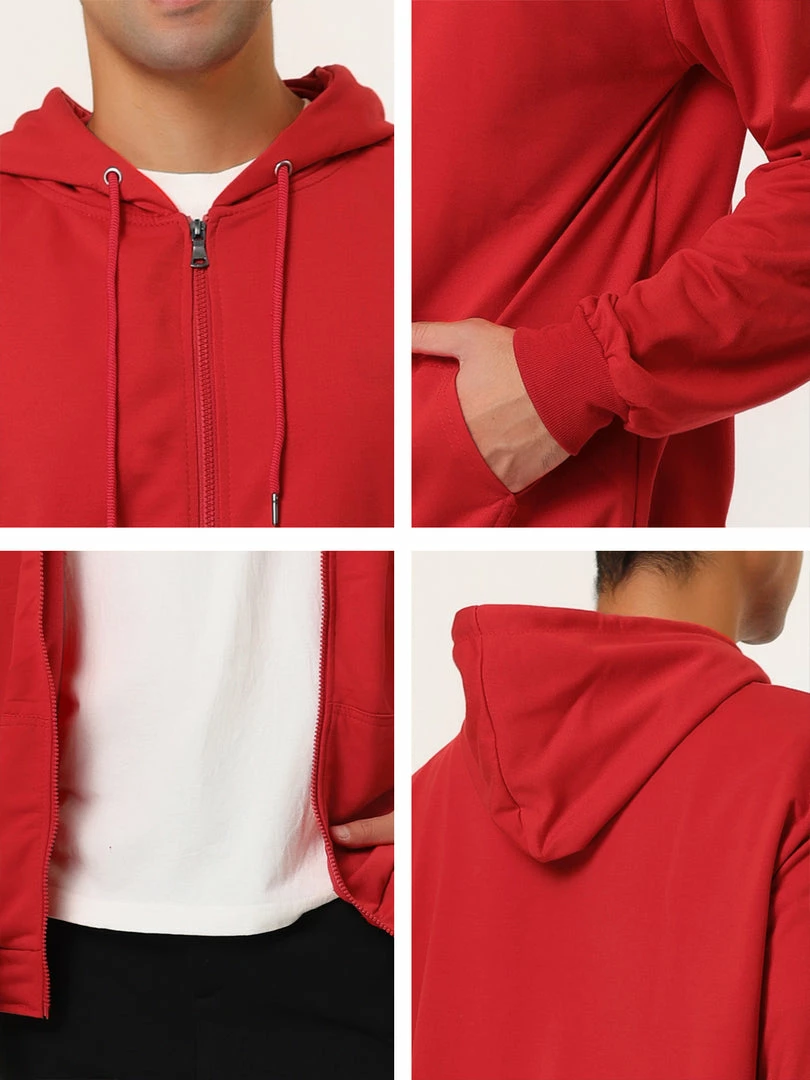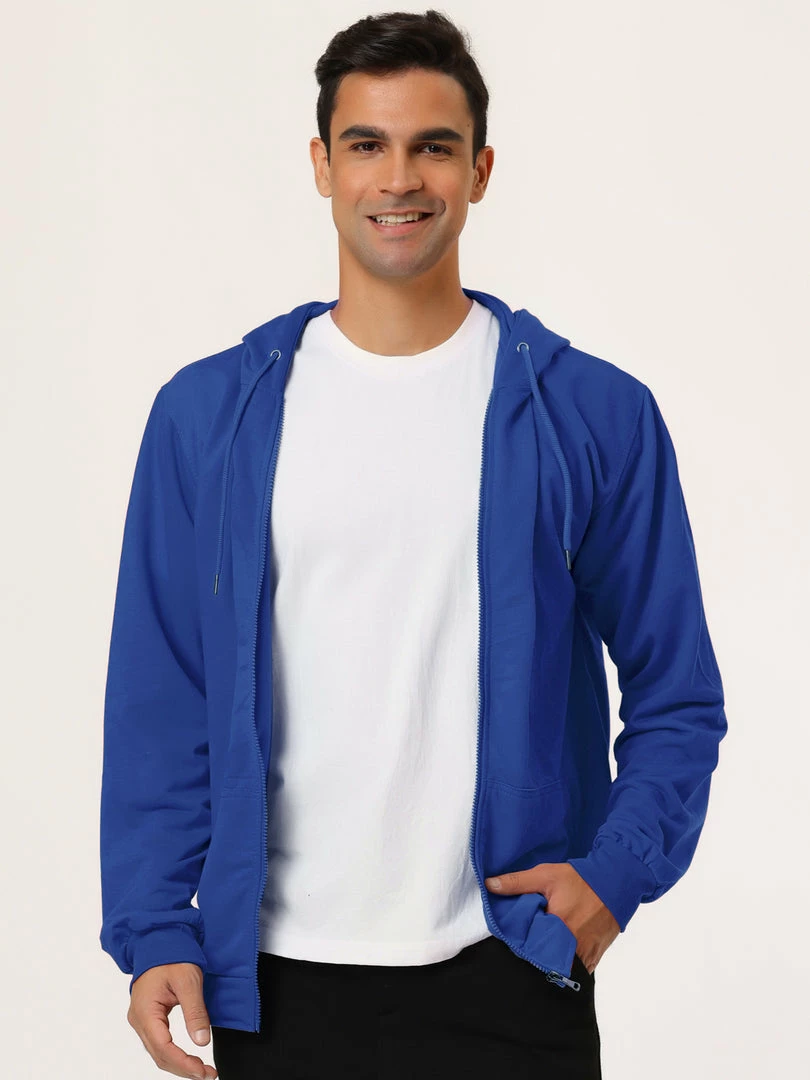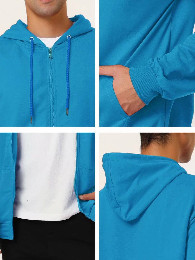 Allegra K Men’s Hoodie Sweatshirt Full Zip Long Sleeves Lightweight Solid Sports Hooded Jacket