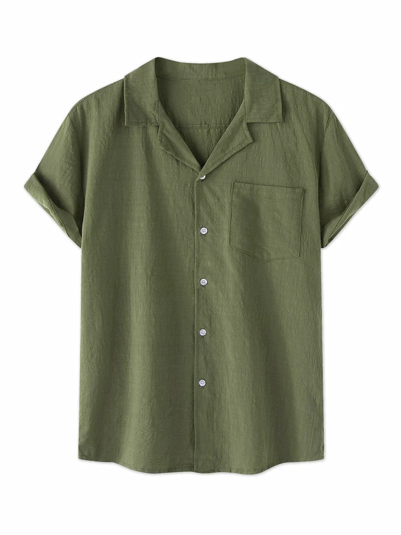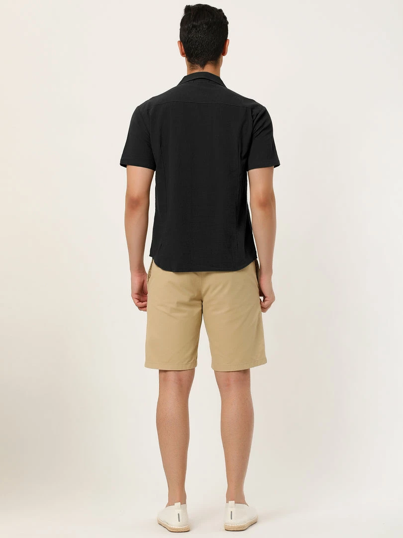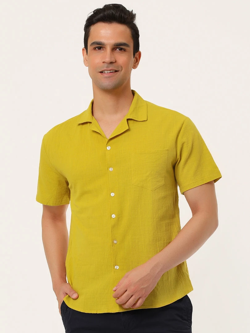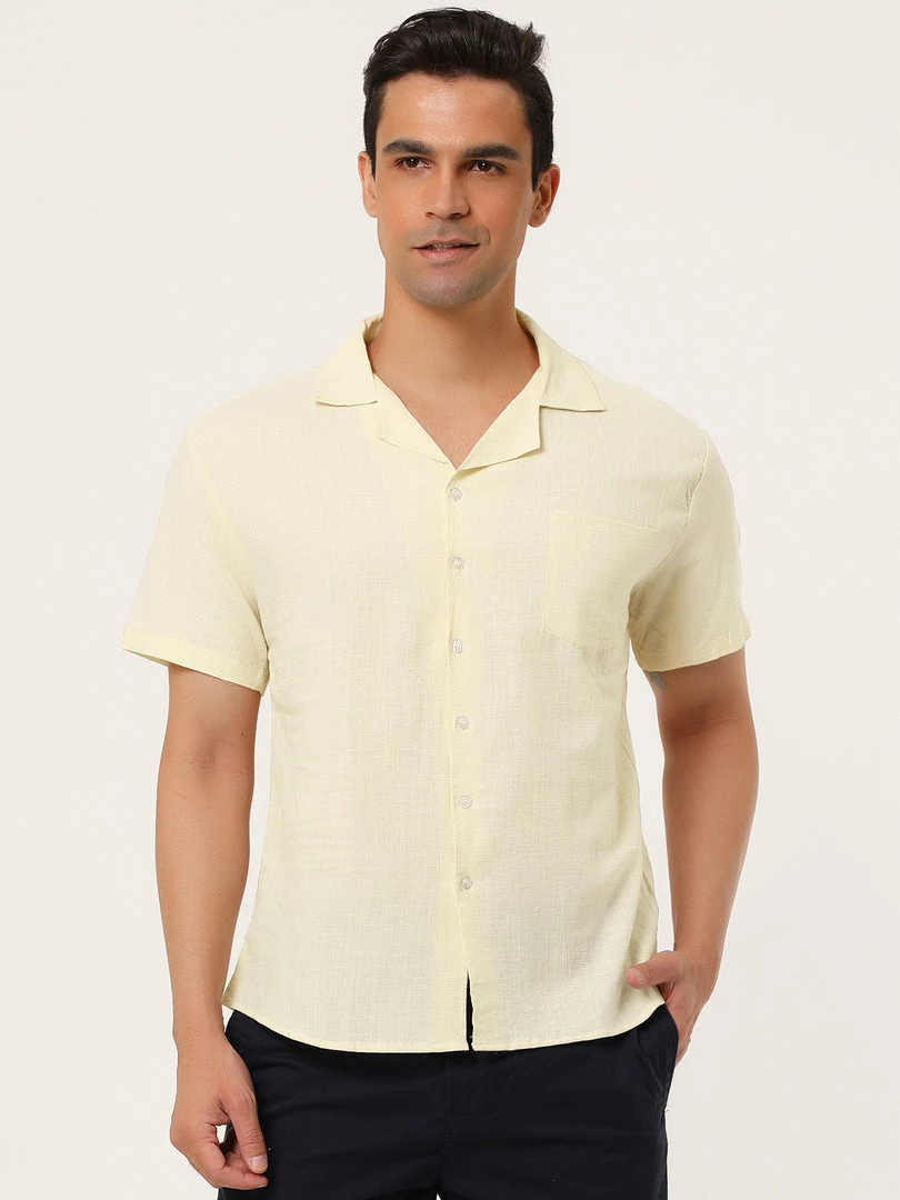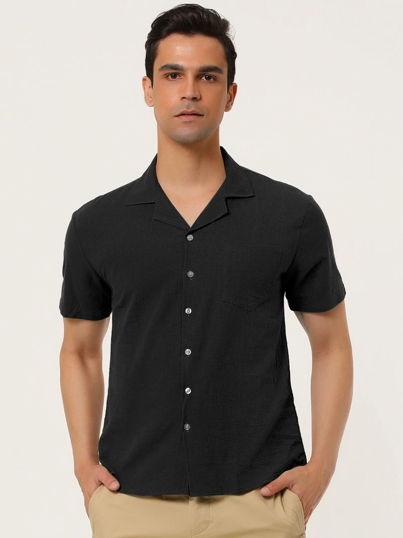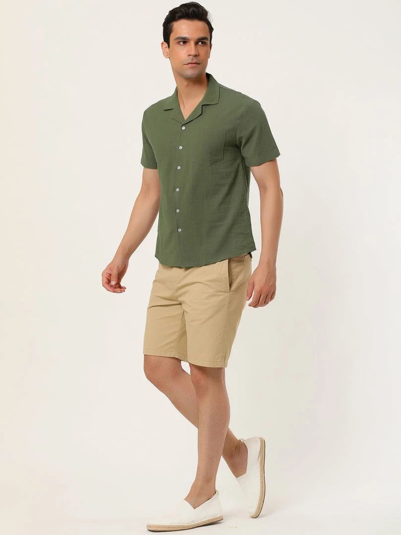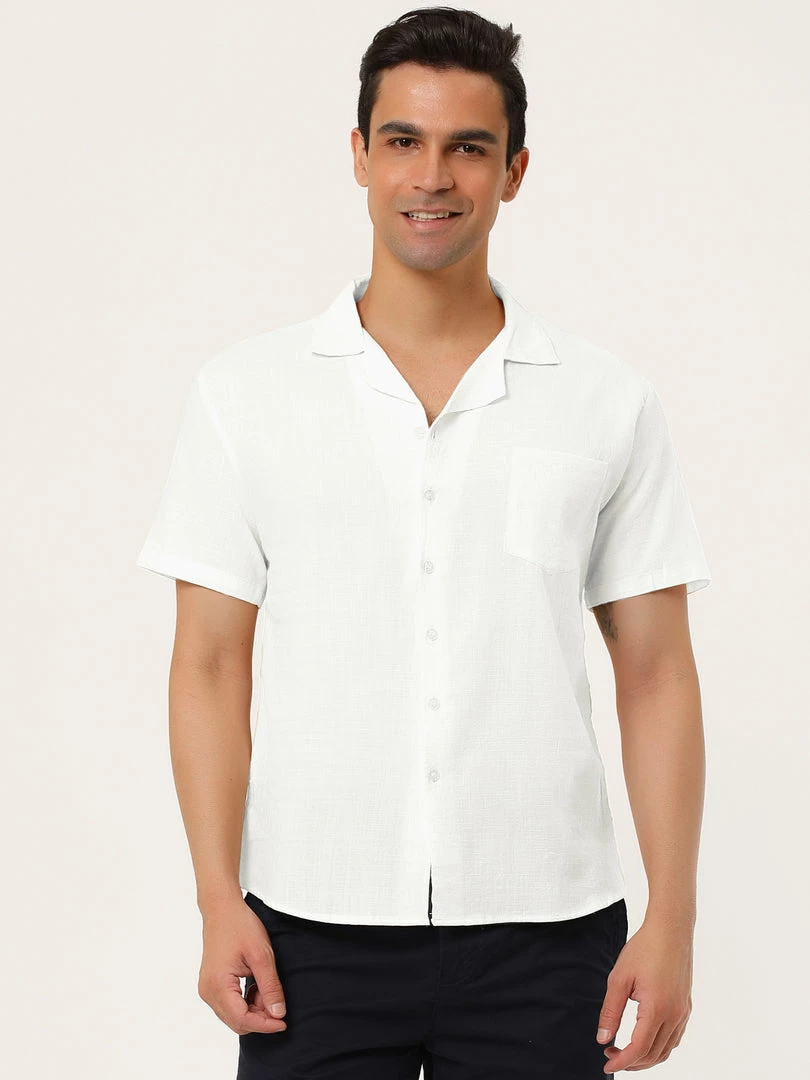 Allegra K Men’s Linen Shirt Summer Casual Camp Collar Short Sleeve Button Down Beach Shirts