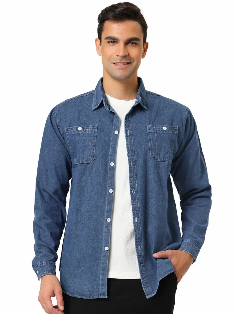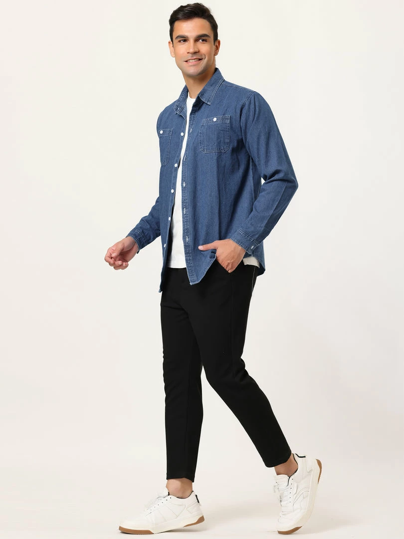 Allegra K Men’s Long Sleeve Casual Standard Fit Button Front Denim Shirt