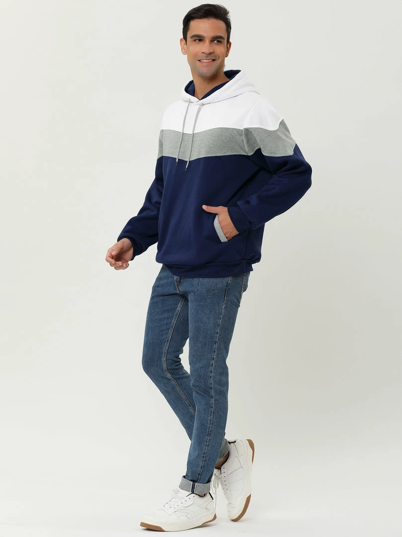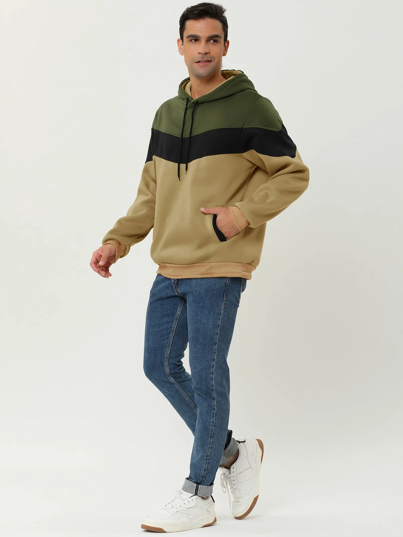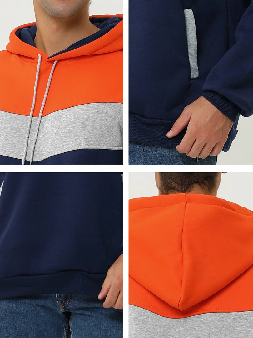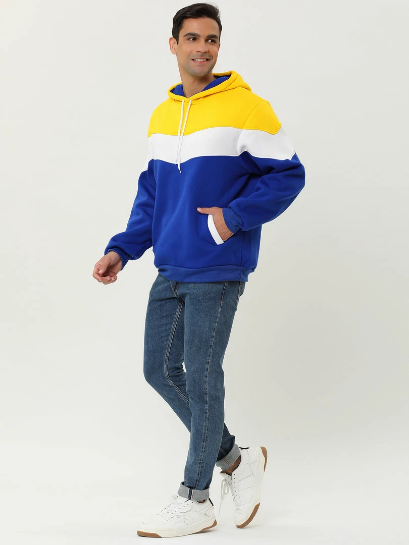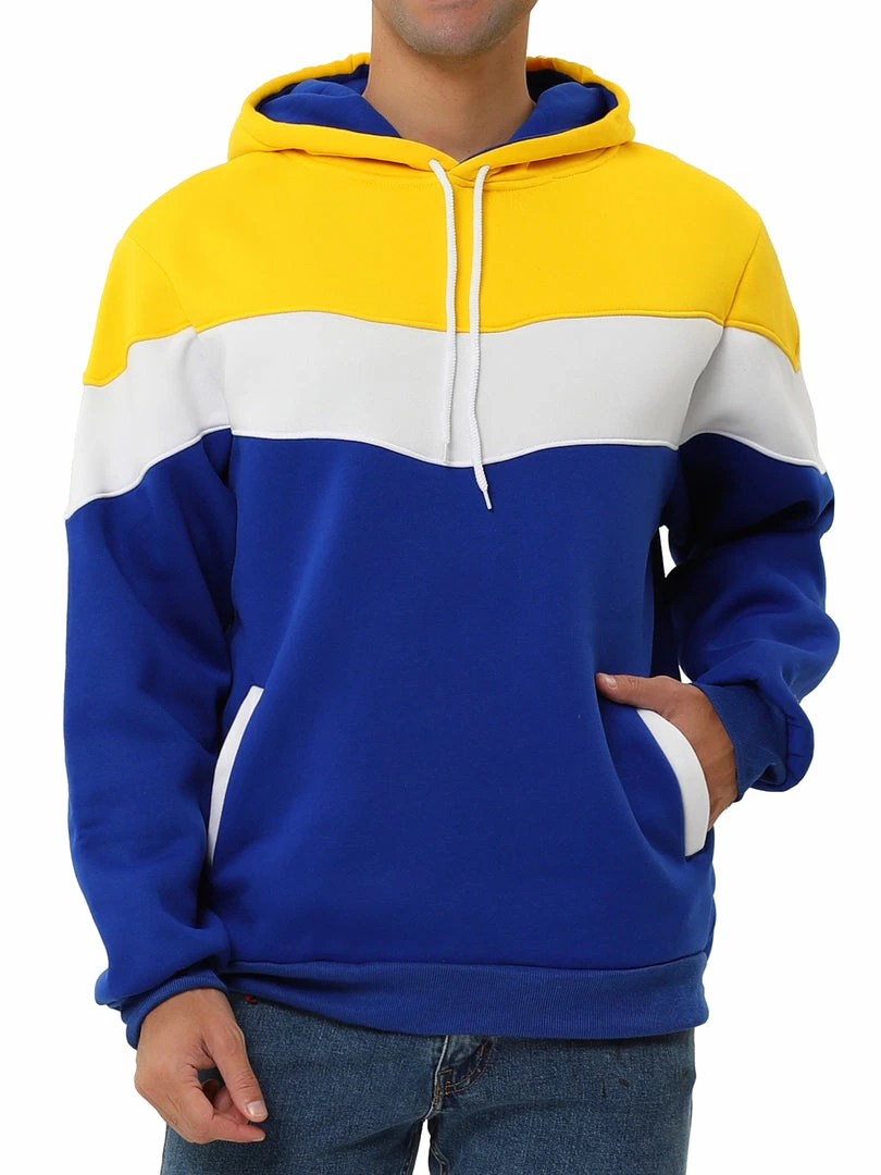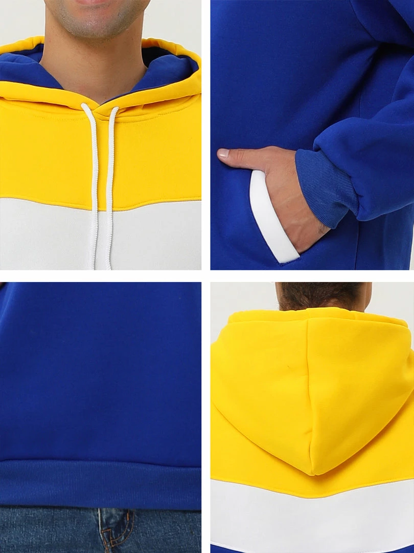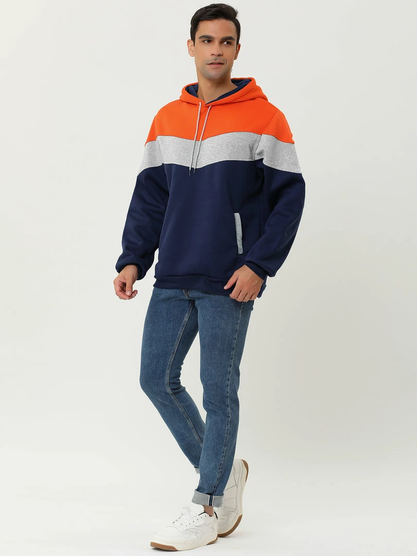 Allegra K Men’s Novelty Color Block Hoodies Casual Plush Lined Pullover Sweatshirt With Pocket