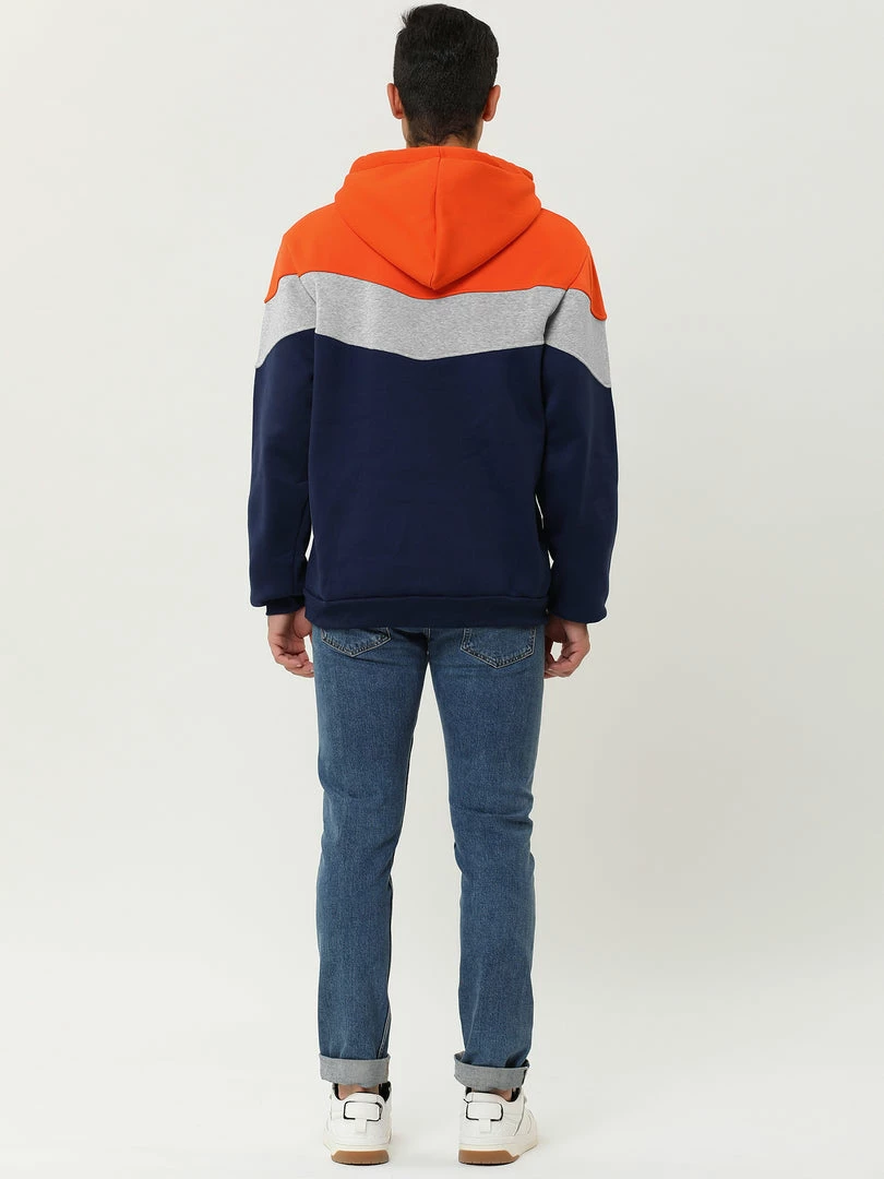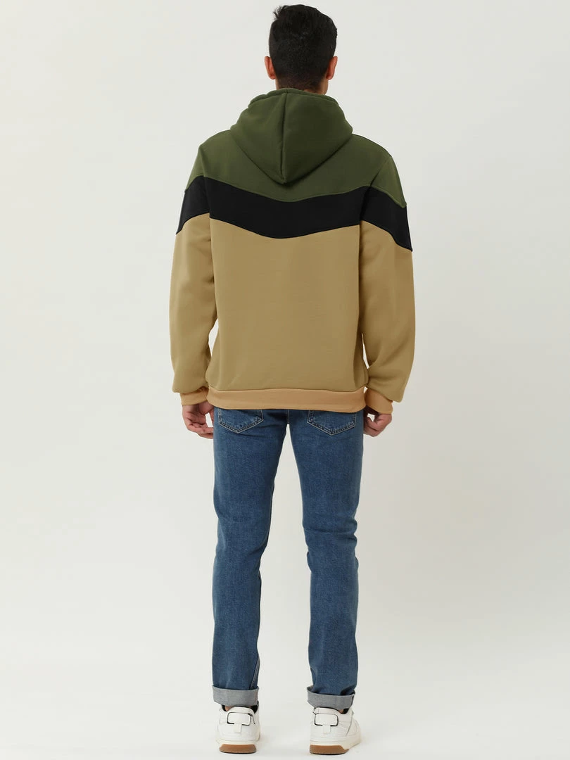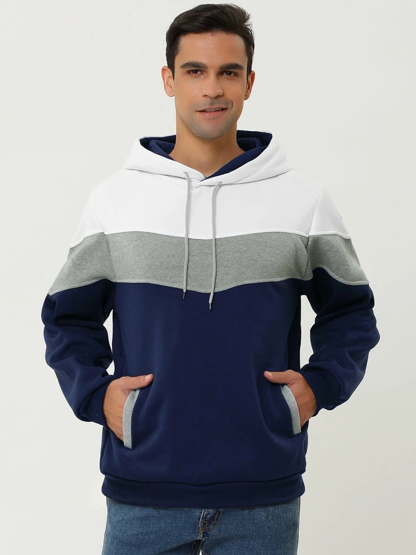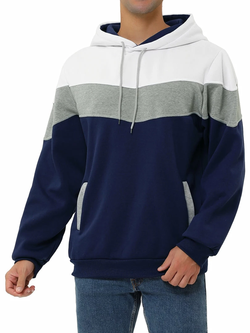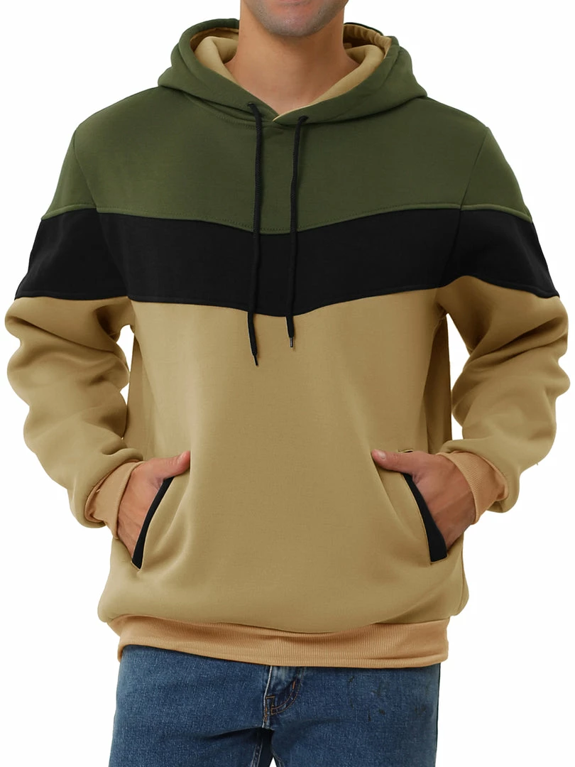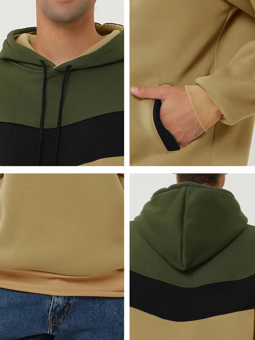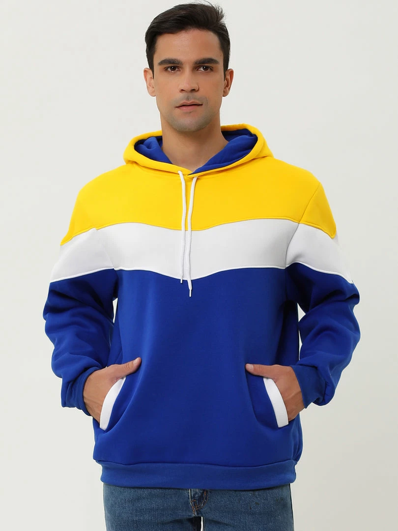 Allegra K Men’s Novelty Color Block Hoodies Casual Plush Lined Pullover Sweatshirt With Pocket