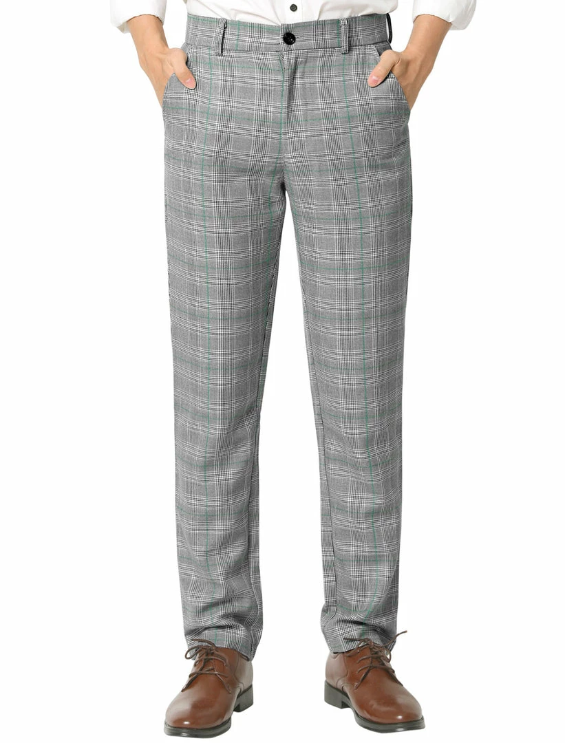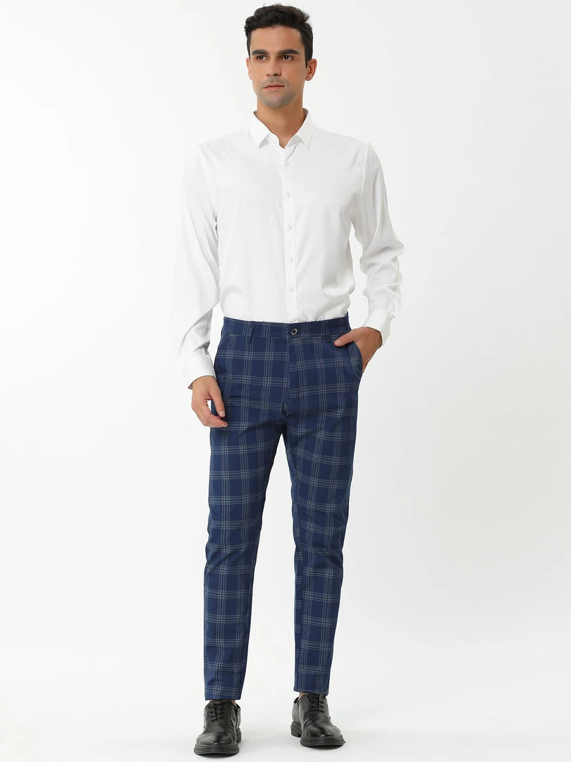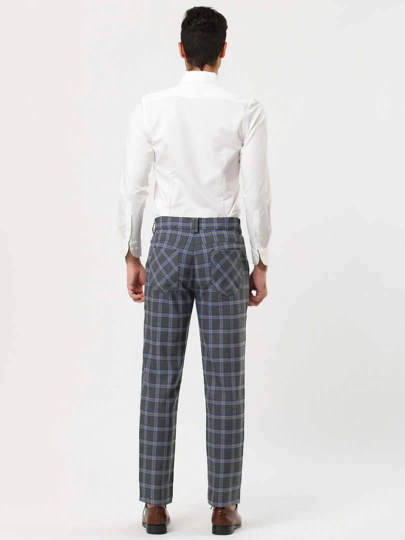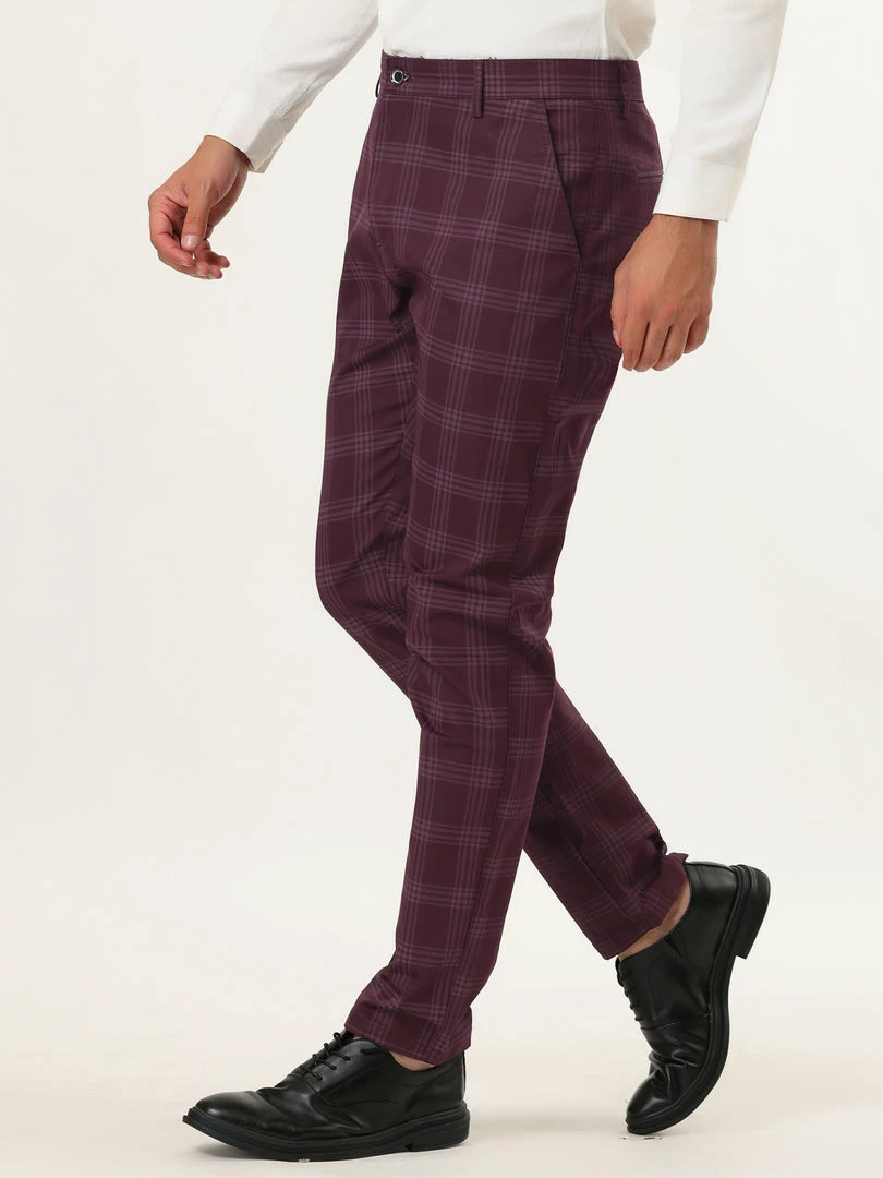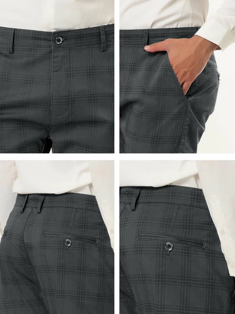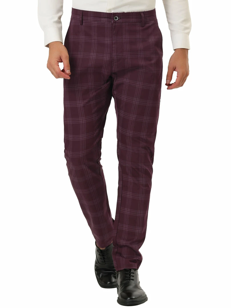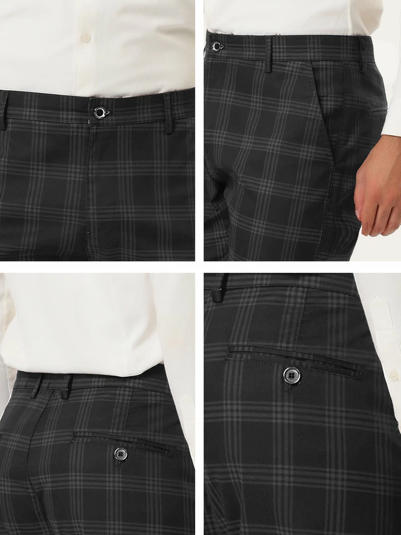 Featuring button and concealed zip fastening at front, Allegra K tailored pants are cut with a versatile straight-leg silhouette. This checks patterned piece with front slant pockets and hip pockets show more relaxed fit and casual look. Style yours with shirt and casual shoes.