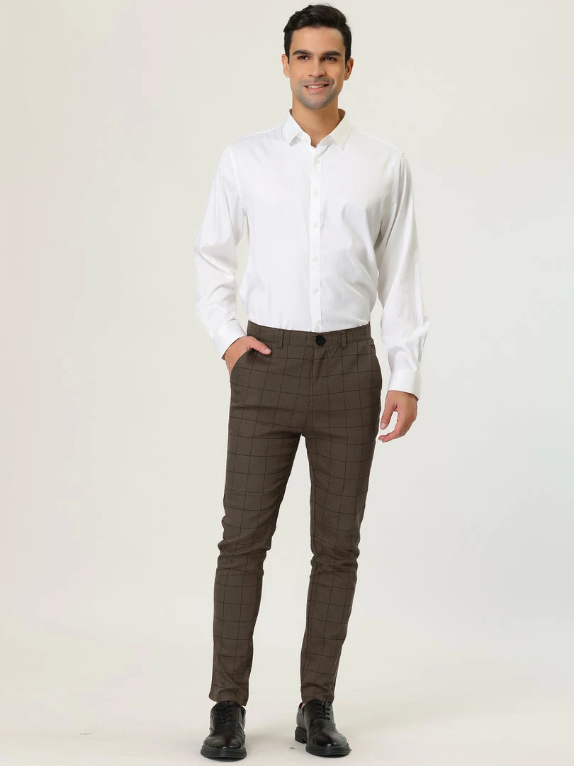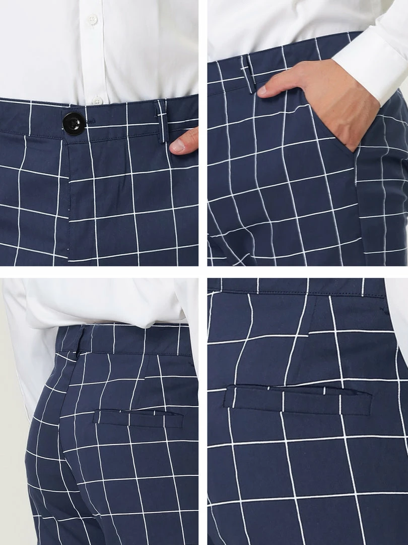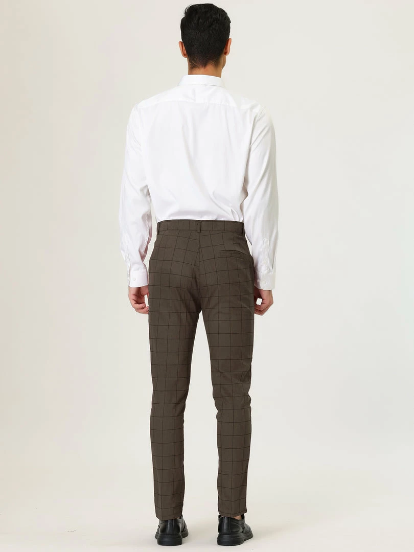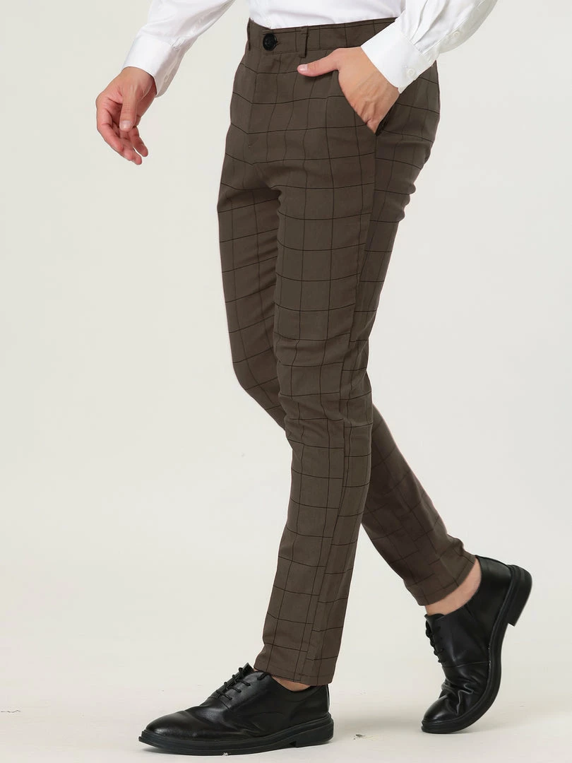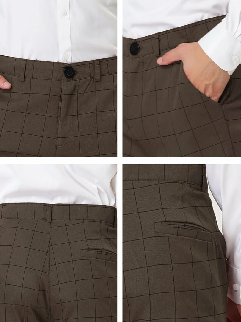 Allegra K Men’s Plaid Dress Slim Fit Checked Business Pants With Pockets